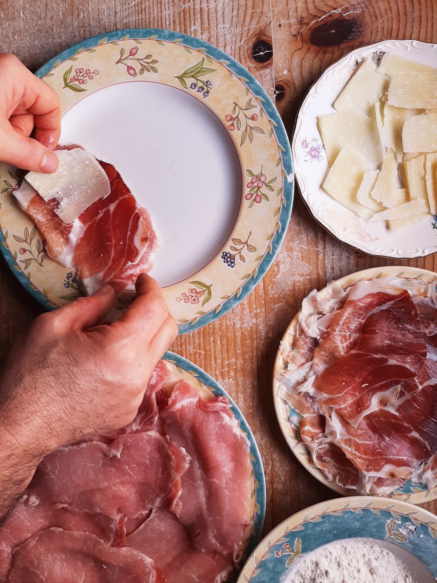 - Potete sostituire il prosciutto con culatello, culatta (come abbiamo fatto noi) o se preferite anche con prosciutto cotto.