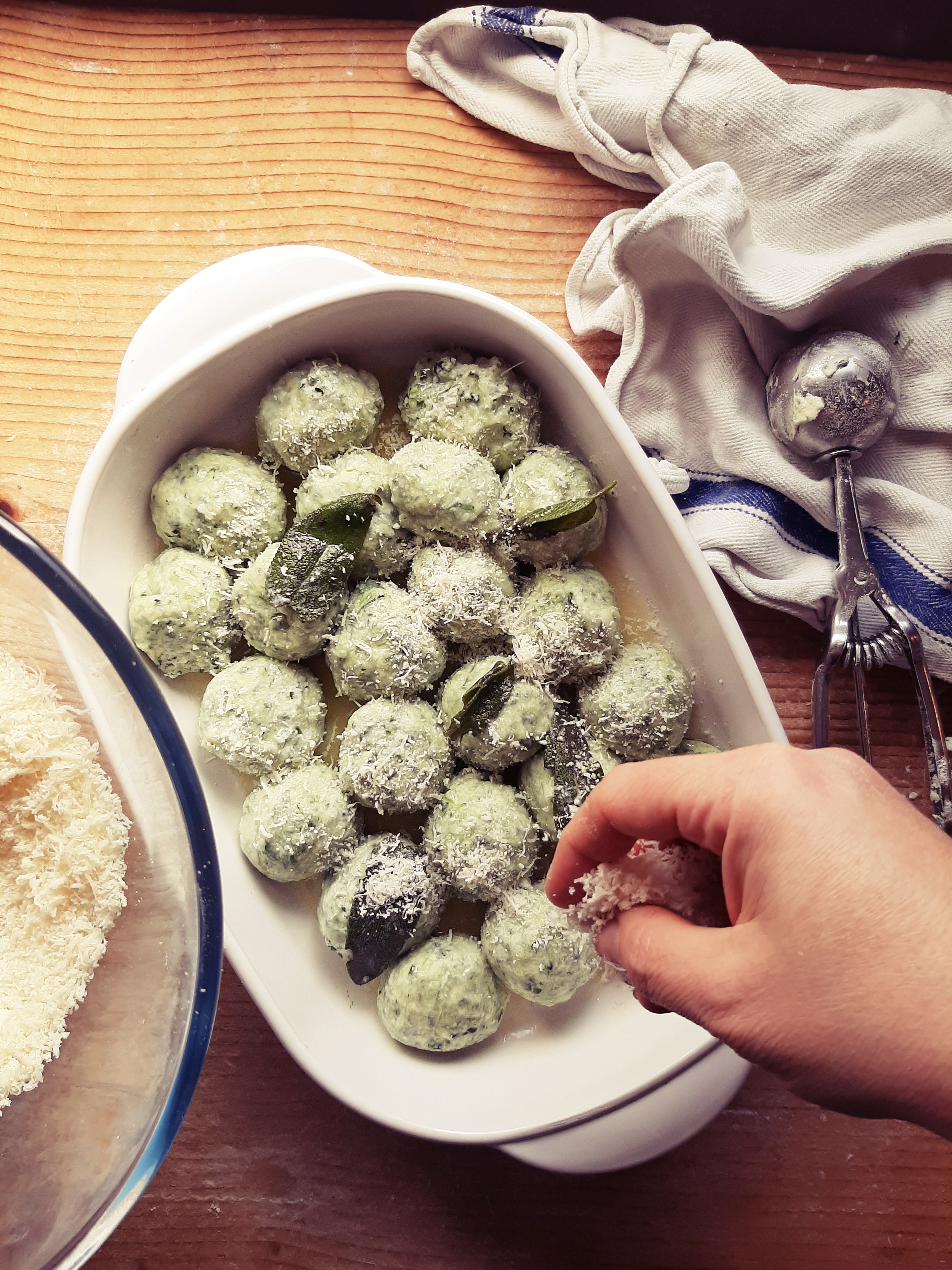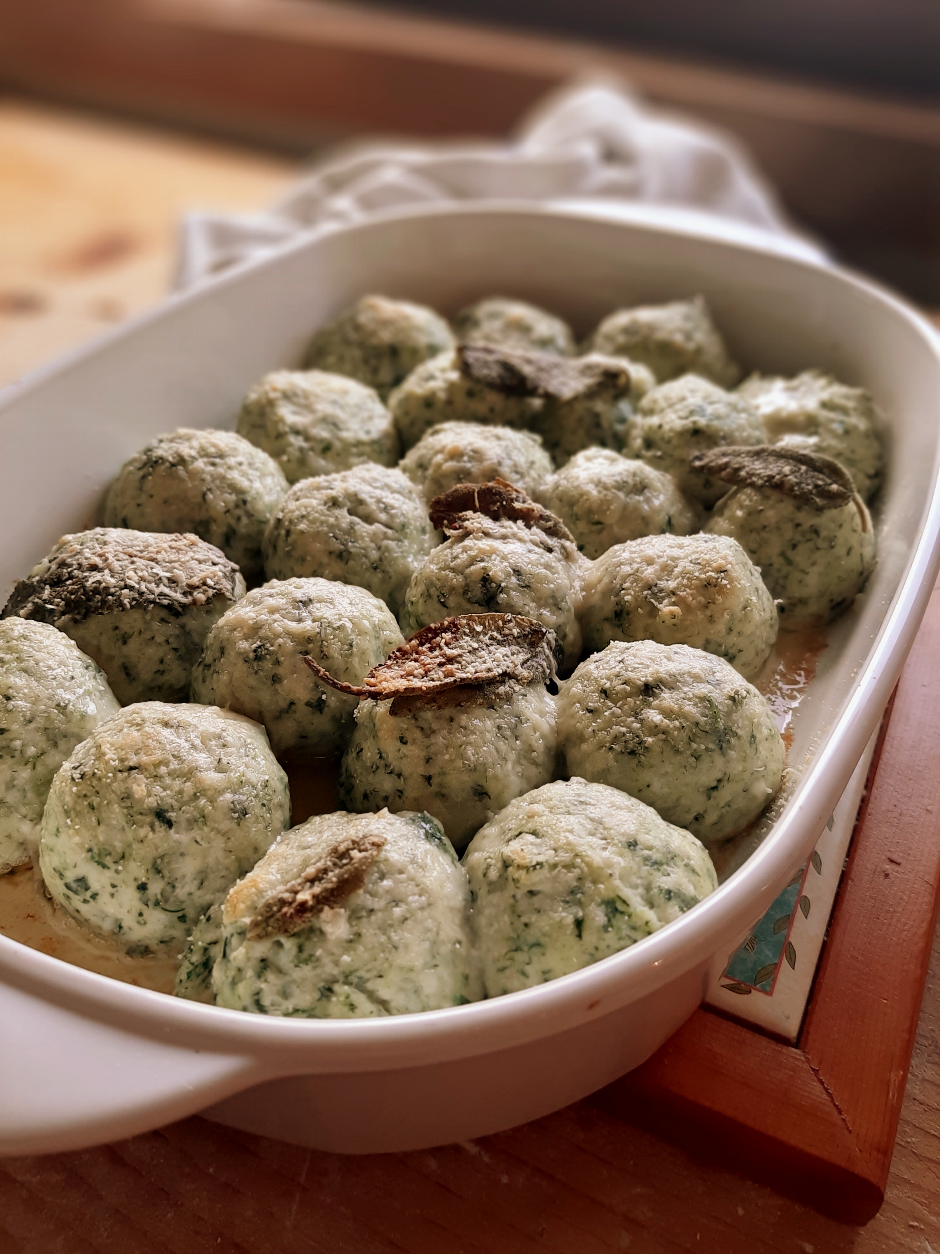 - Cuocete in abbondante acqua bollente e salata gli gnudi, pochi alla volta, e una volta venuti a galla, scolateli e adagiateli in una pirofila.