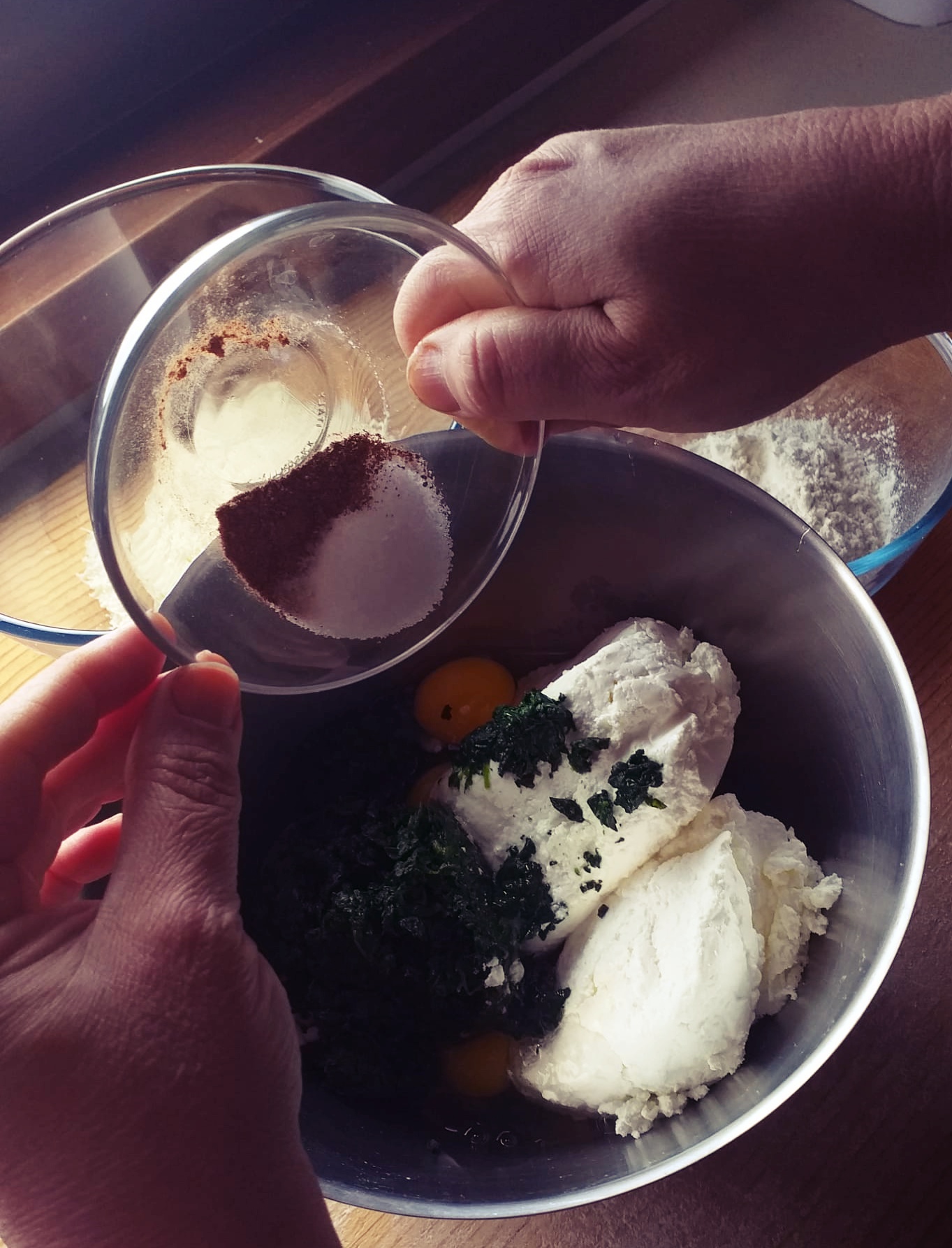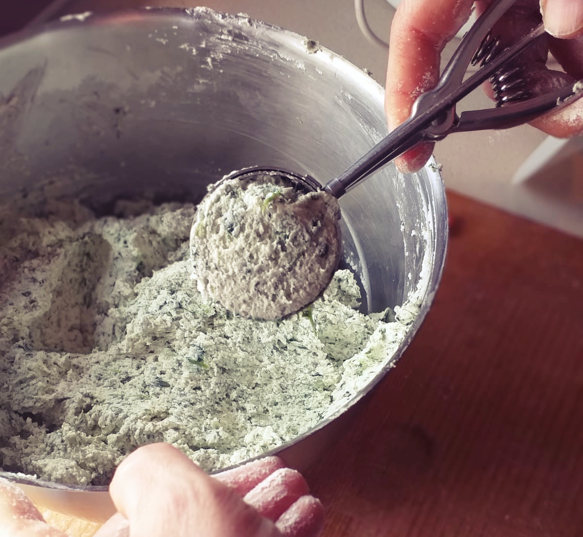 - Lavorate il composto fino a renderlo omogeneo; come sempre quando si lavora con spinaci e ricotta, bisogna considerare l’acqua in eccesso e quindi la quantità di farina in ricetta potrebbe essere variabile.
