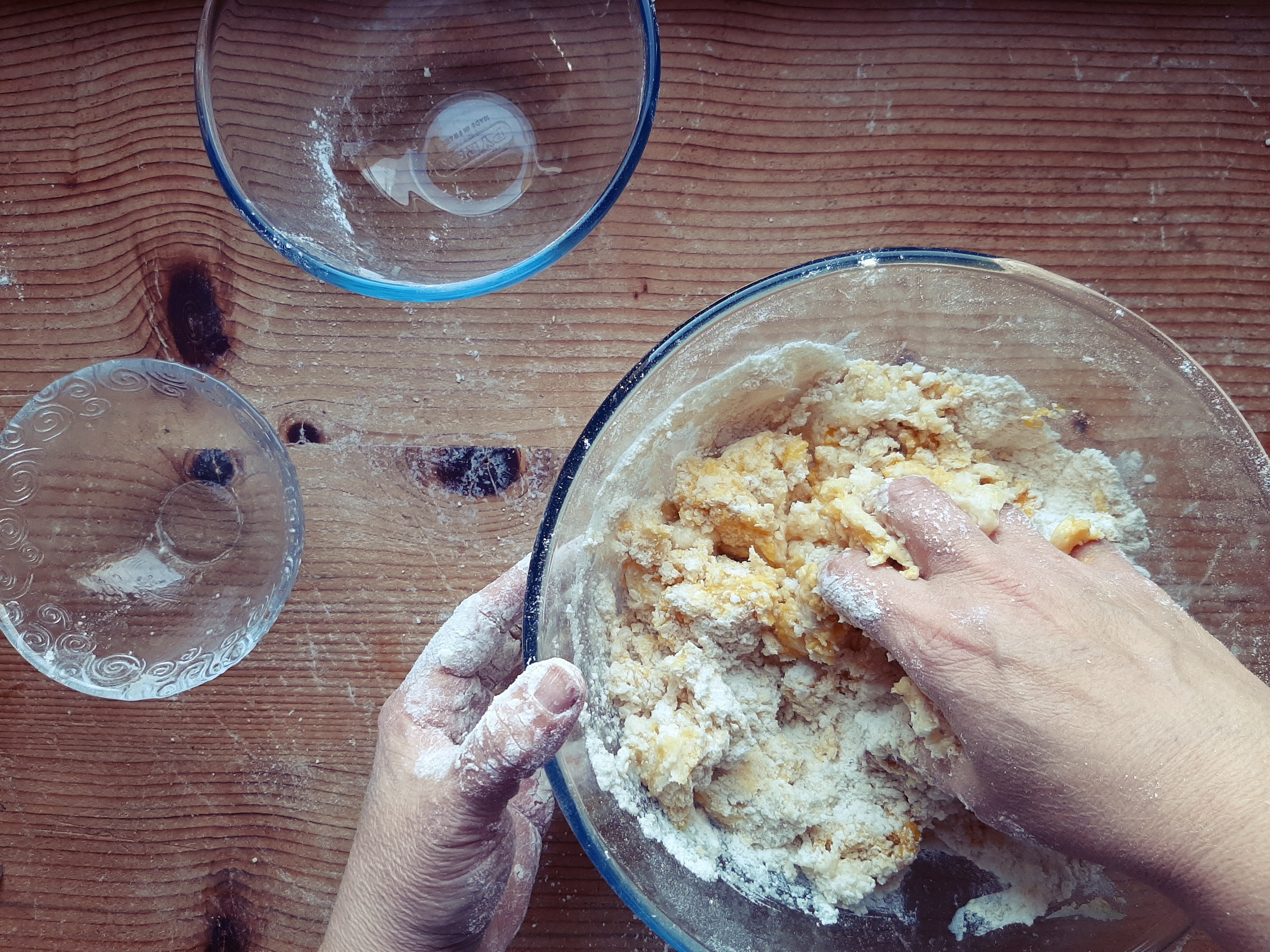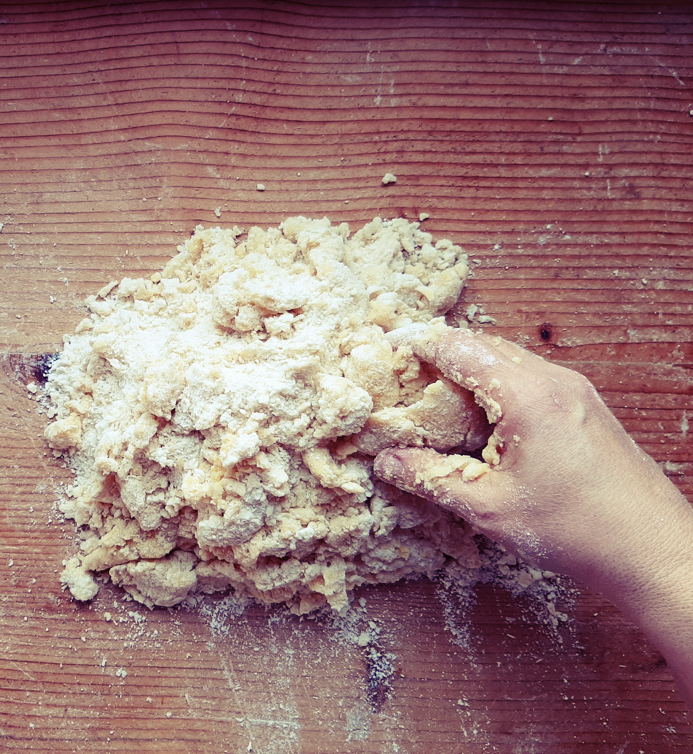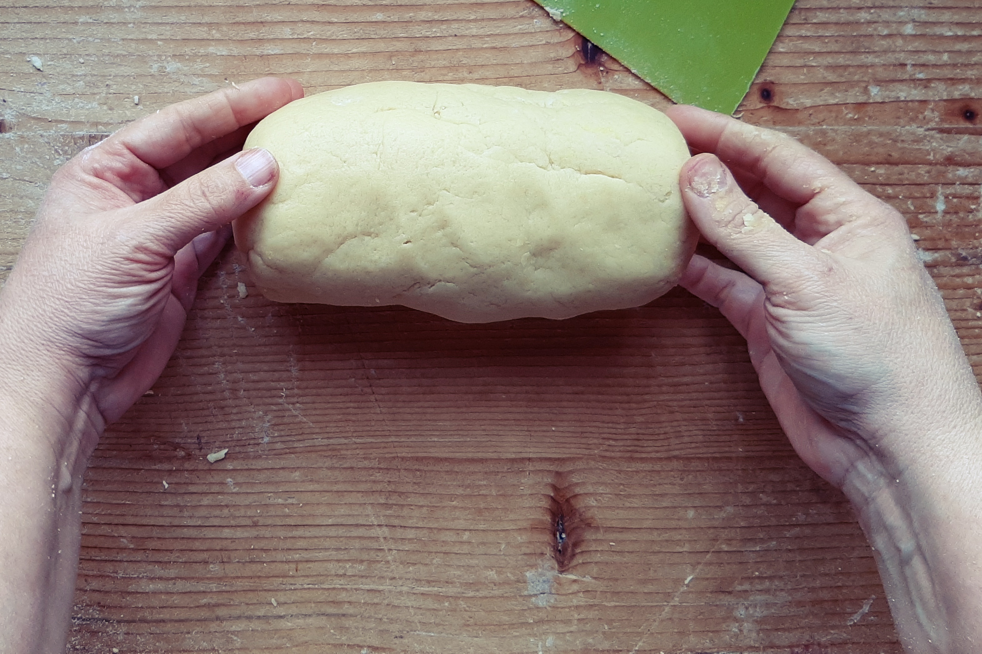 - Per ultimo le uova e i tuorli; lavoriamo velocemente l’impasto per non farlo scaldare troppo, fino a fare un panetto compatto.