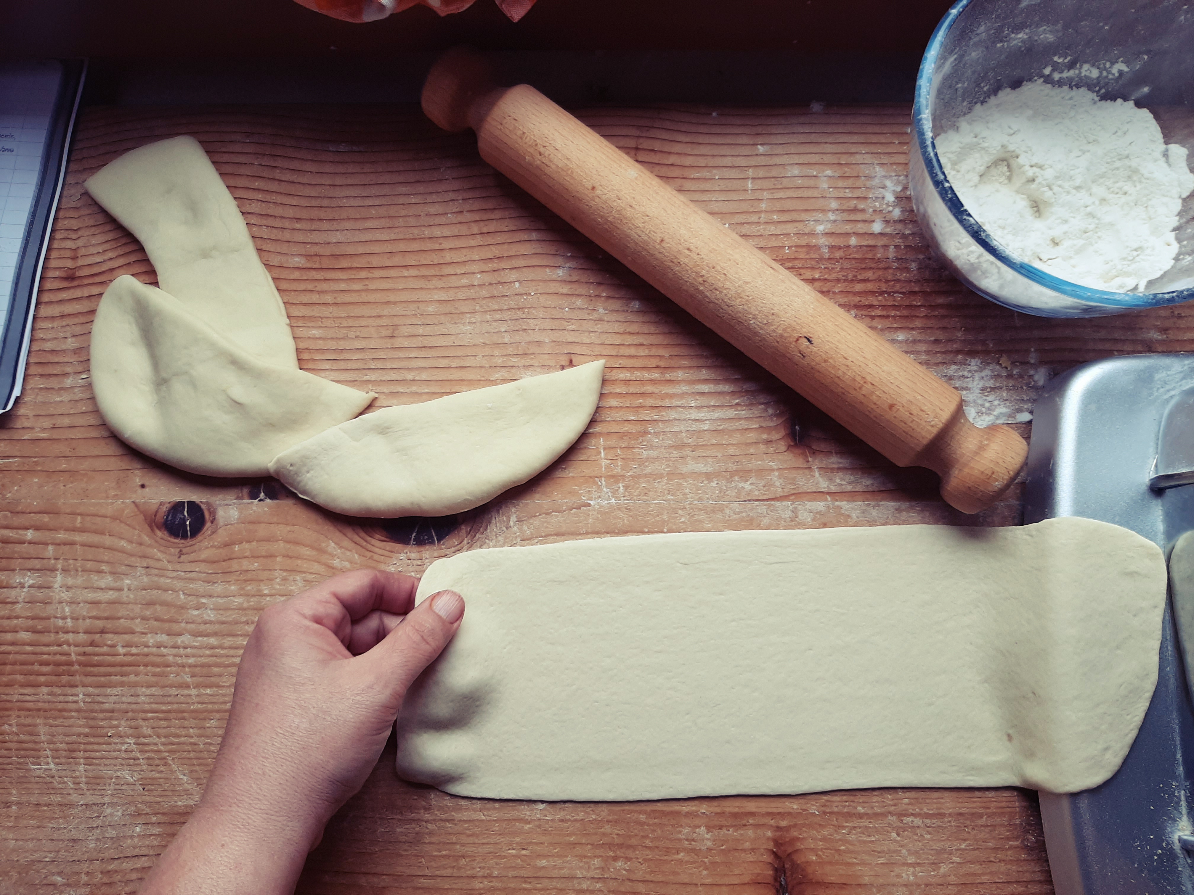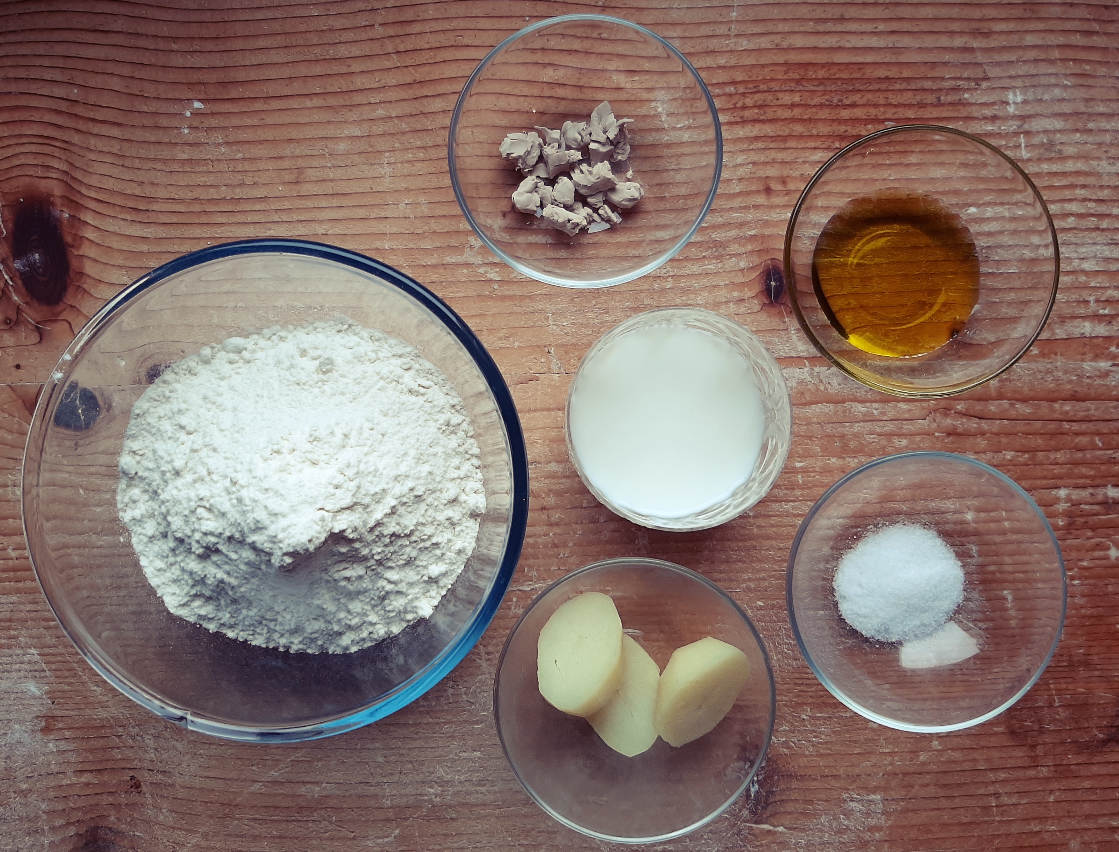 - Impastare tutti gli ingredienti fino a formare un impasto liscio e omogeneo; formare una palla e farla lievitare un paio di ore coperta.