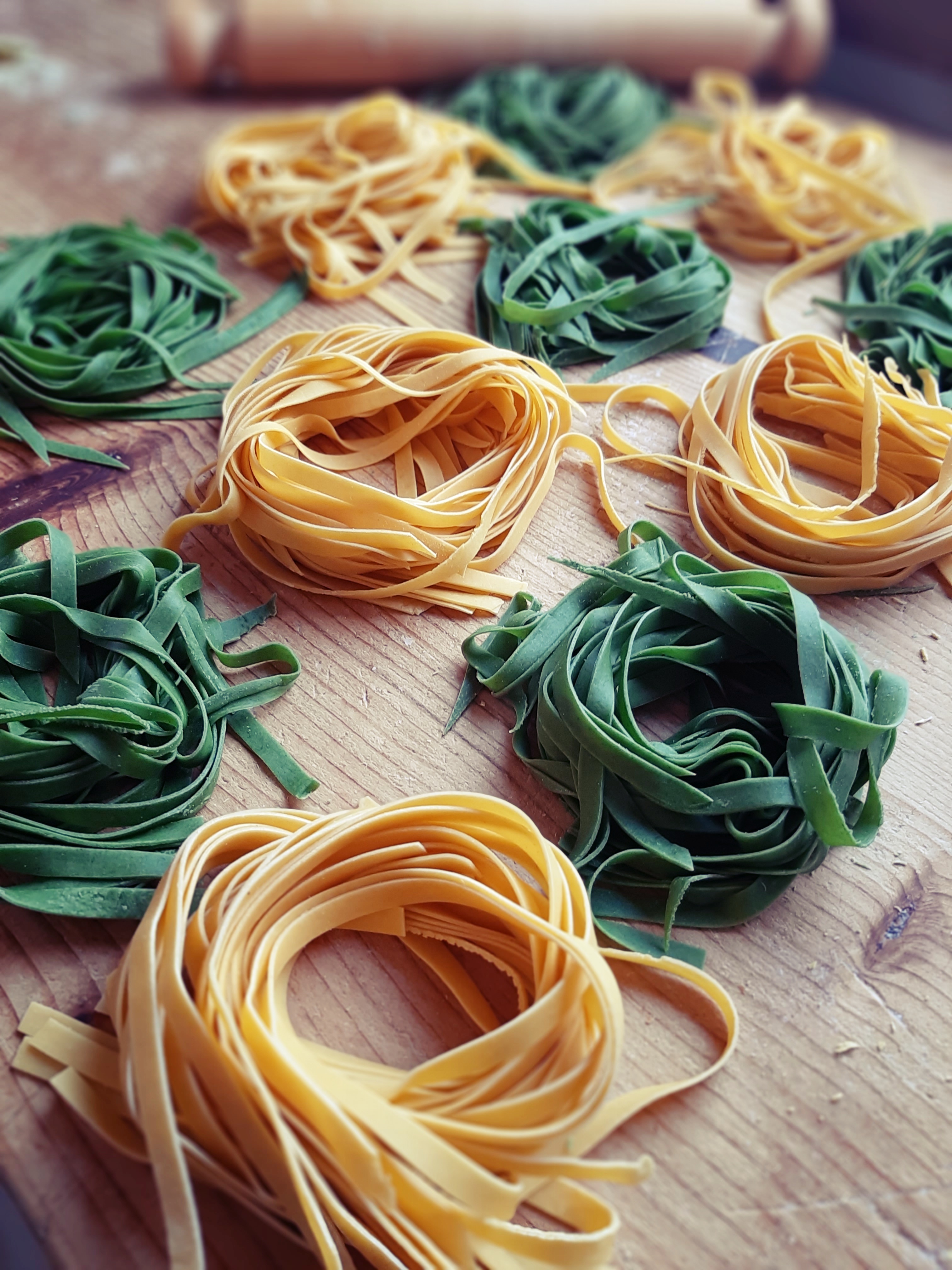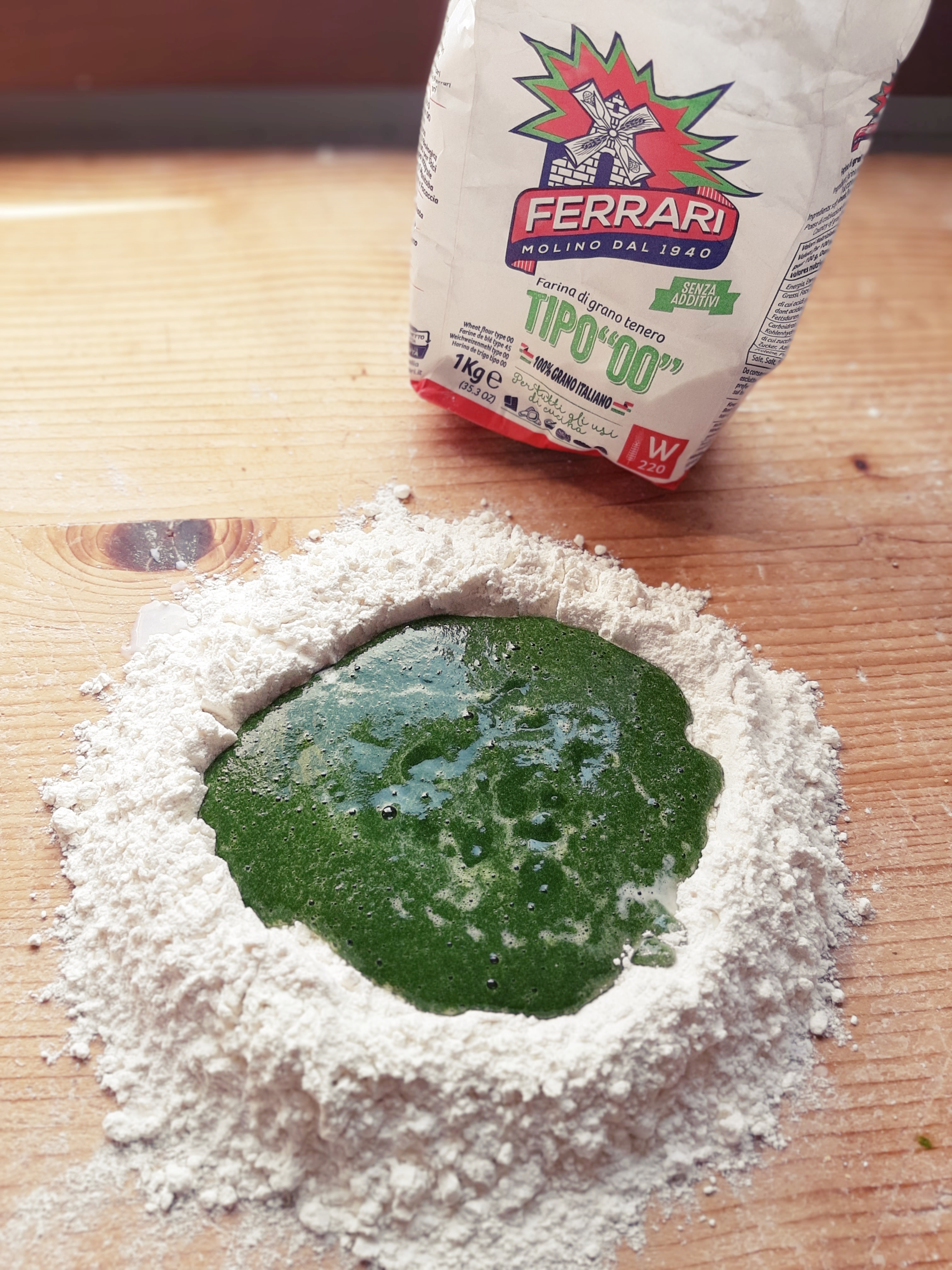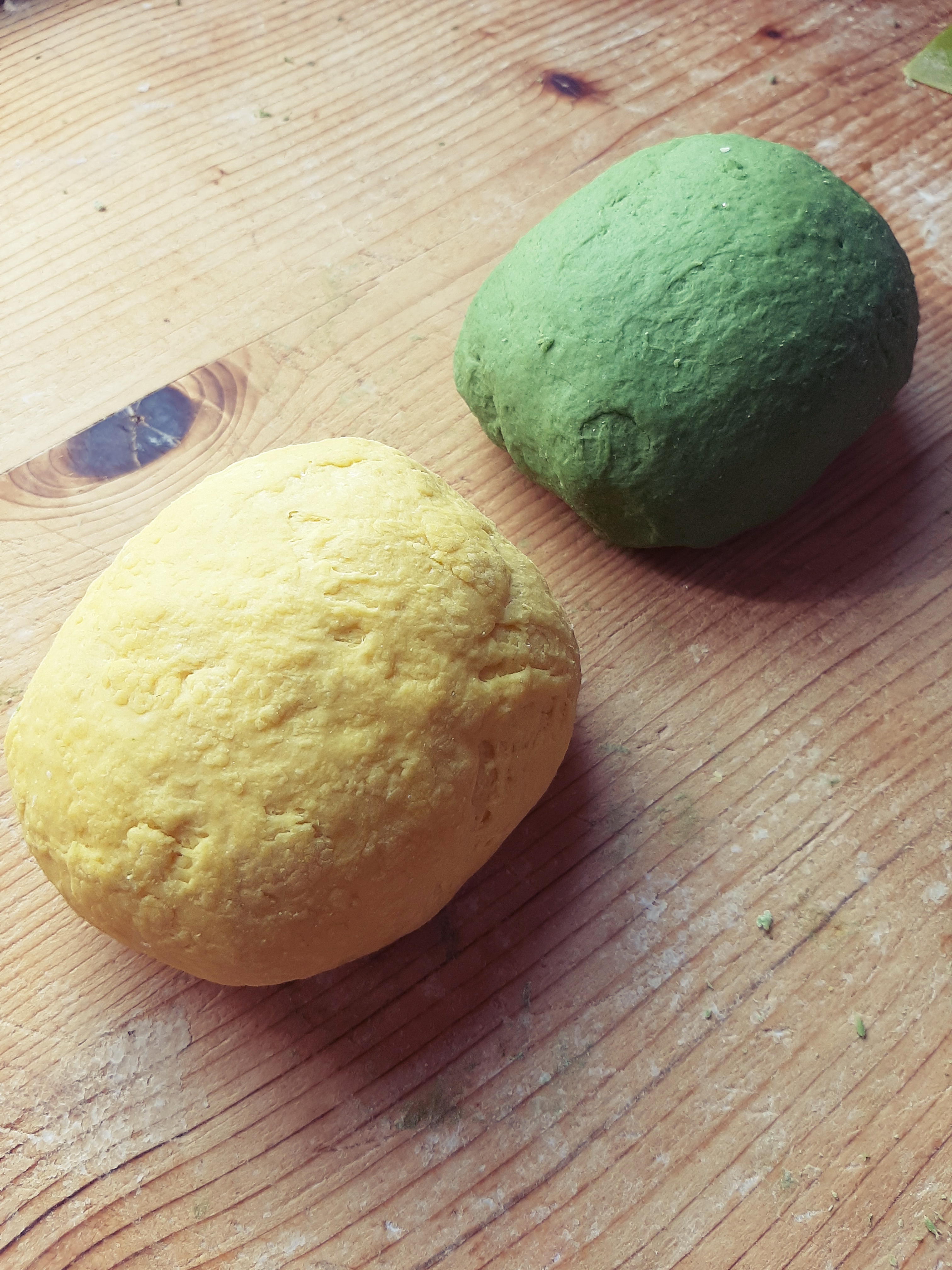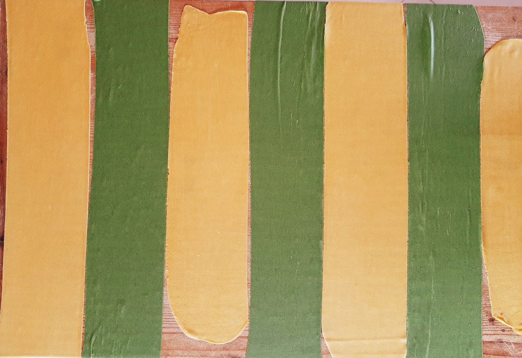 - Impasto verde:2 uova, 60 g spinaci strizzati, 300 g farina, sale