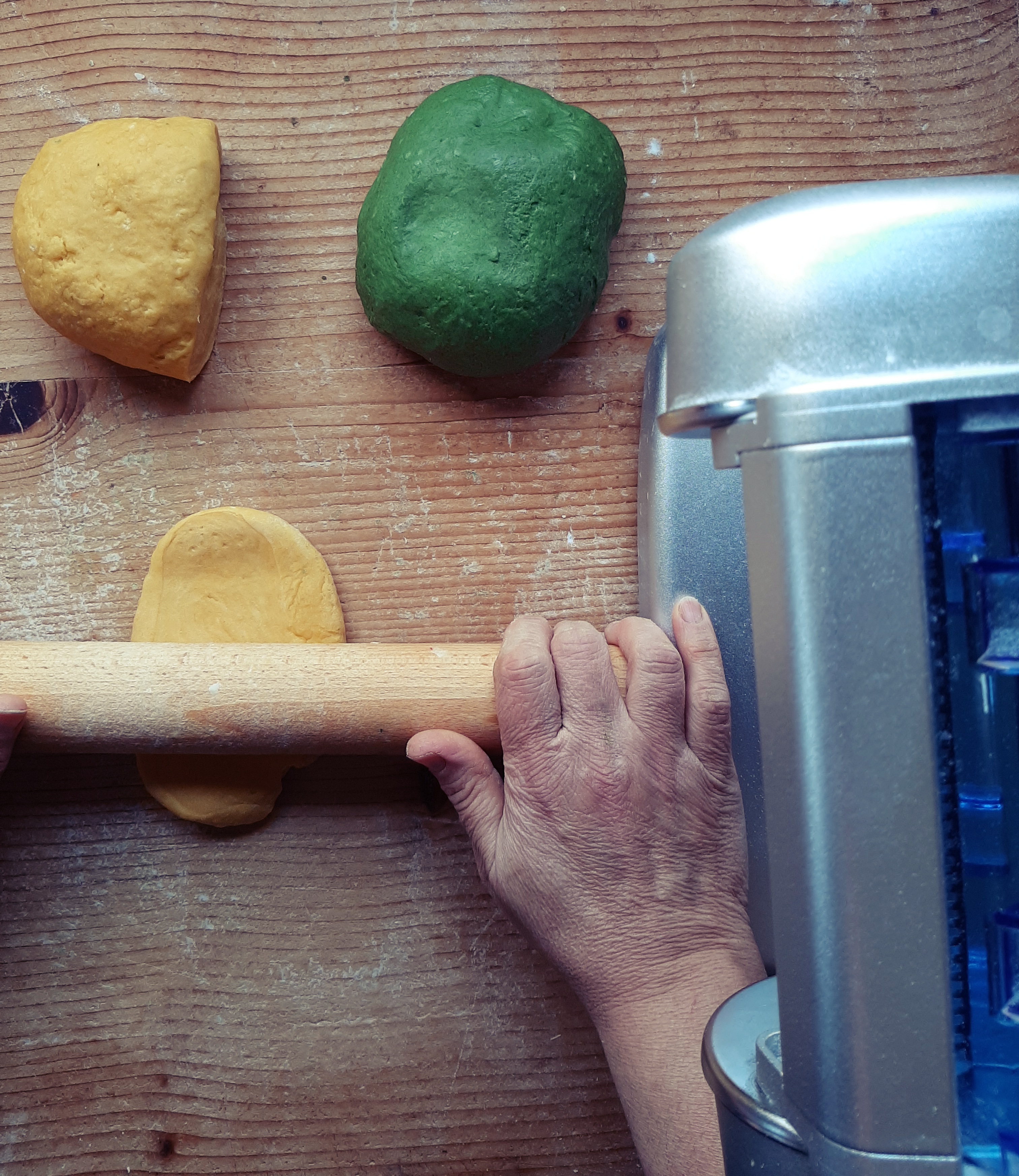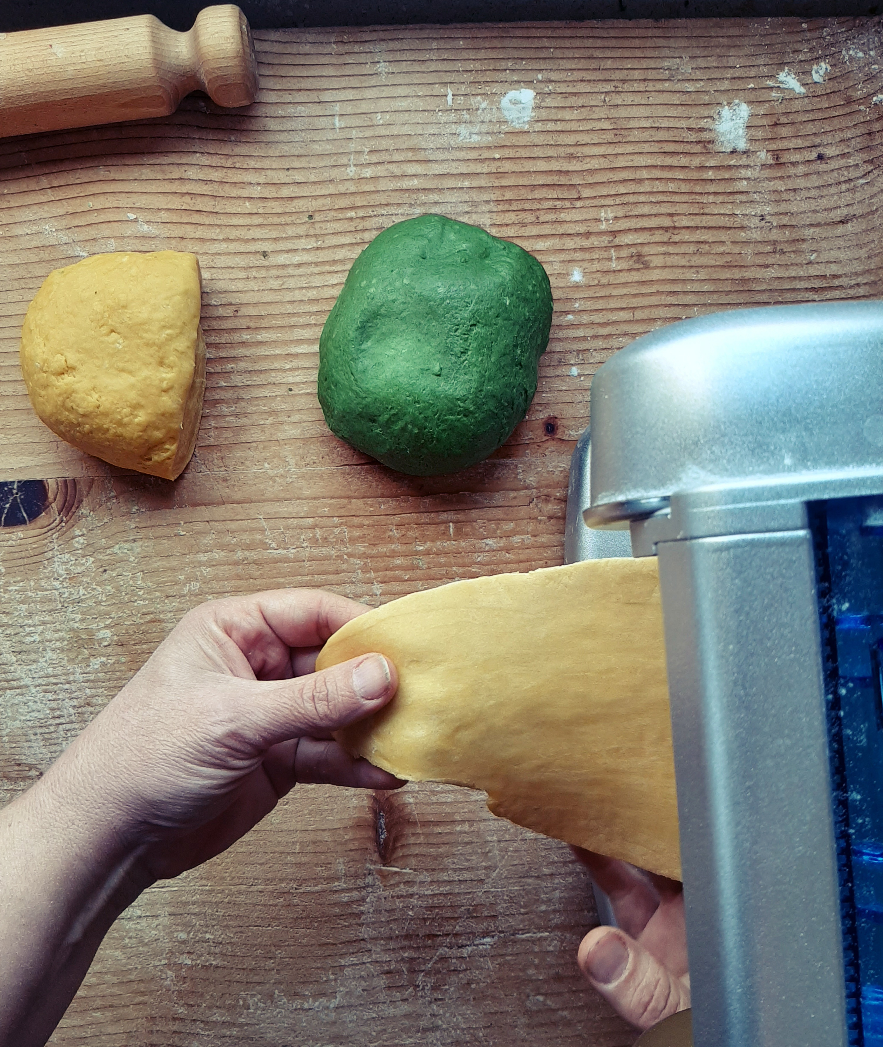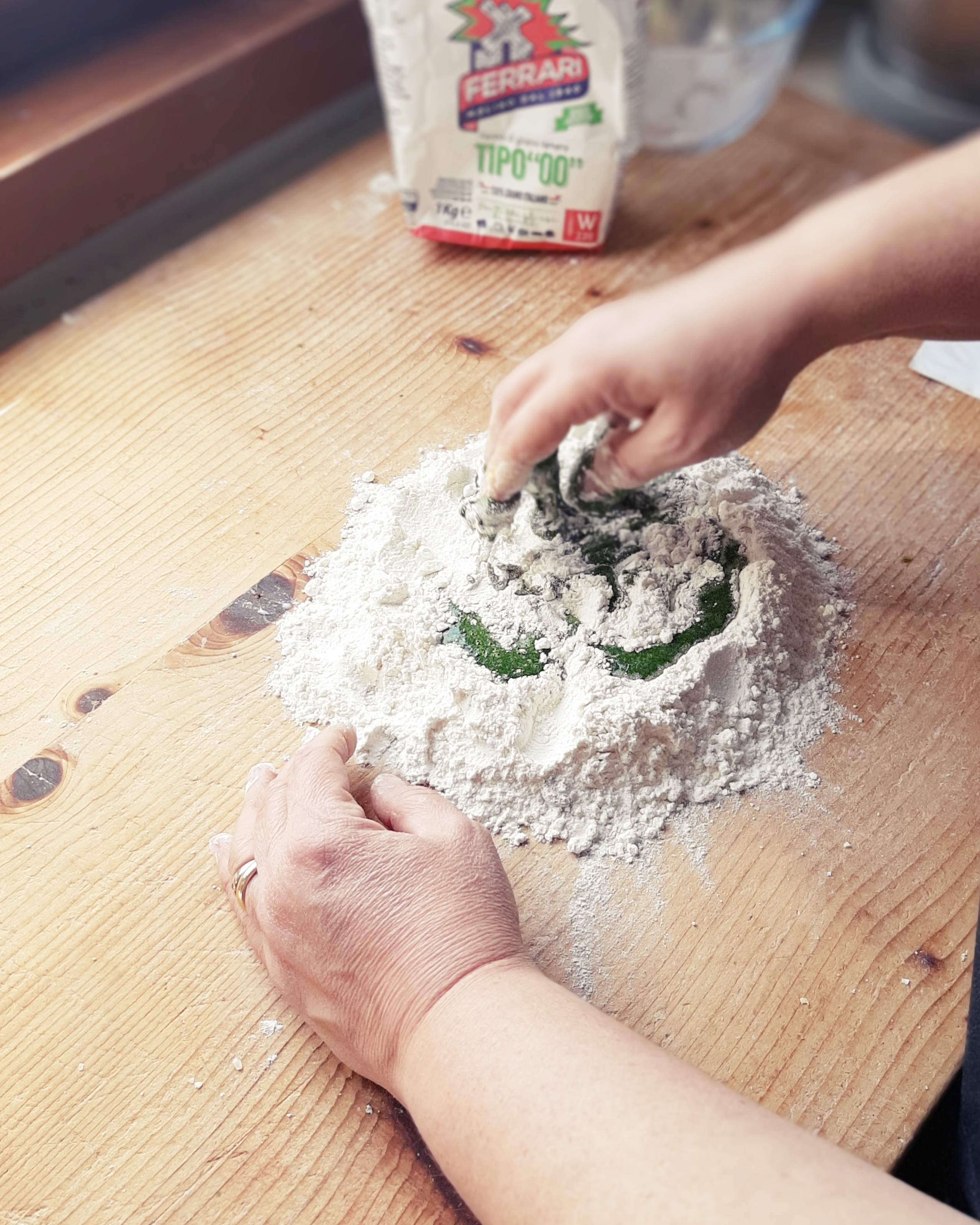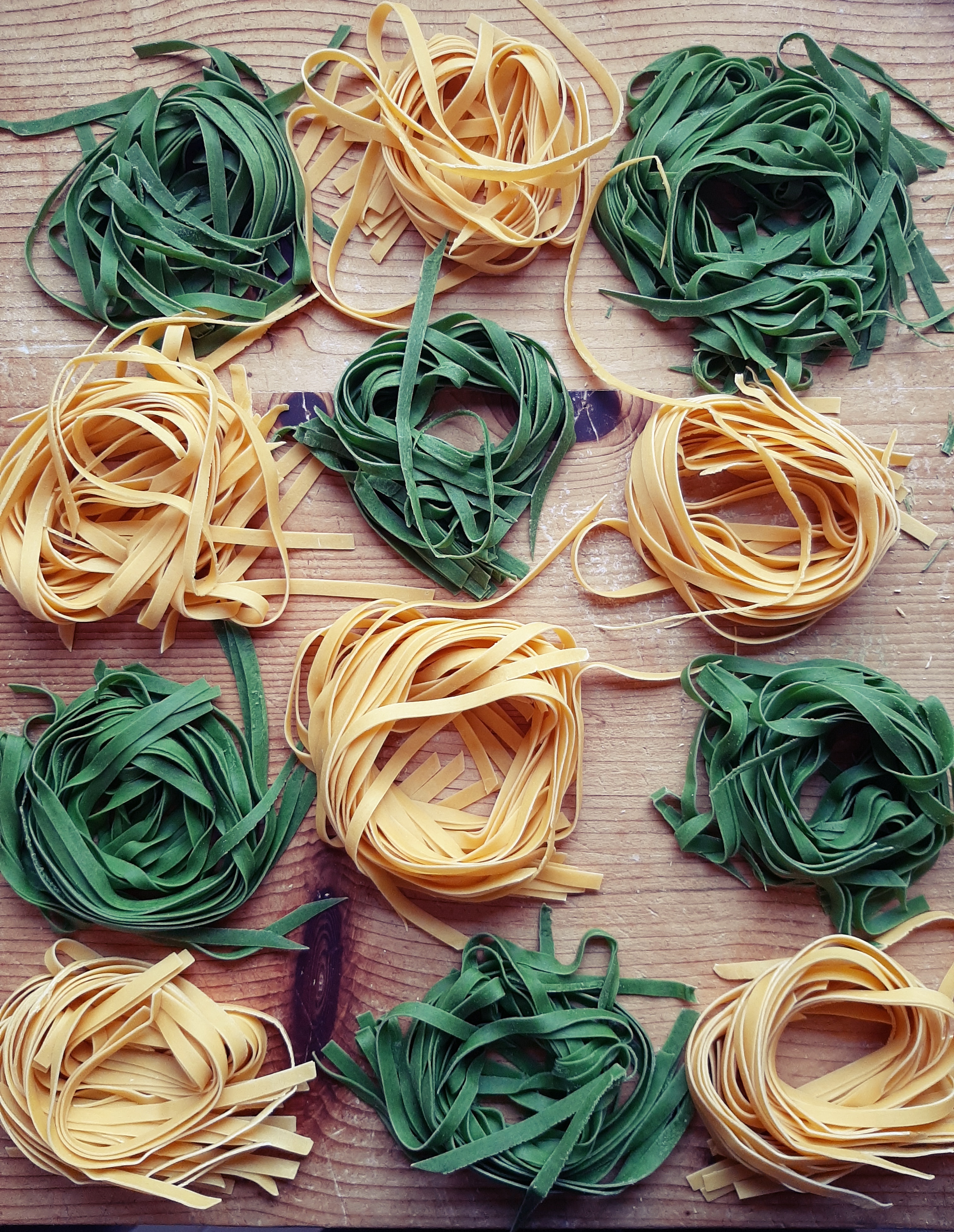 - Impasto verde:2 uova, 60 g spinaci strizzati, 300 g farina, sale