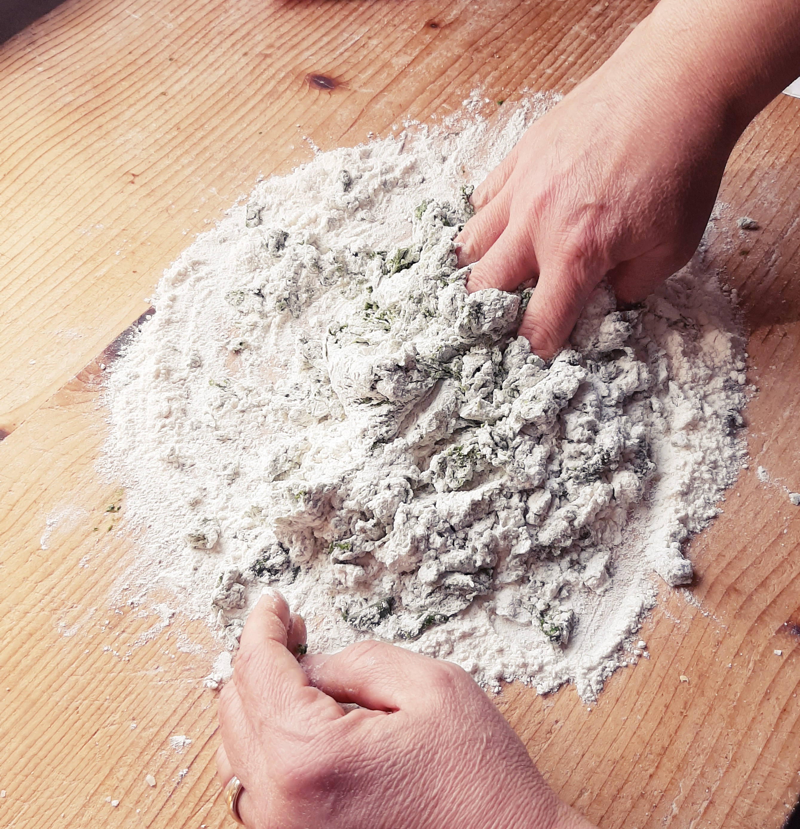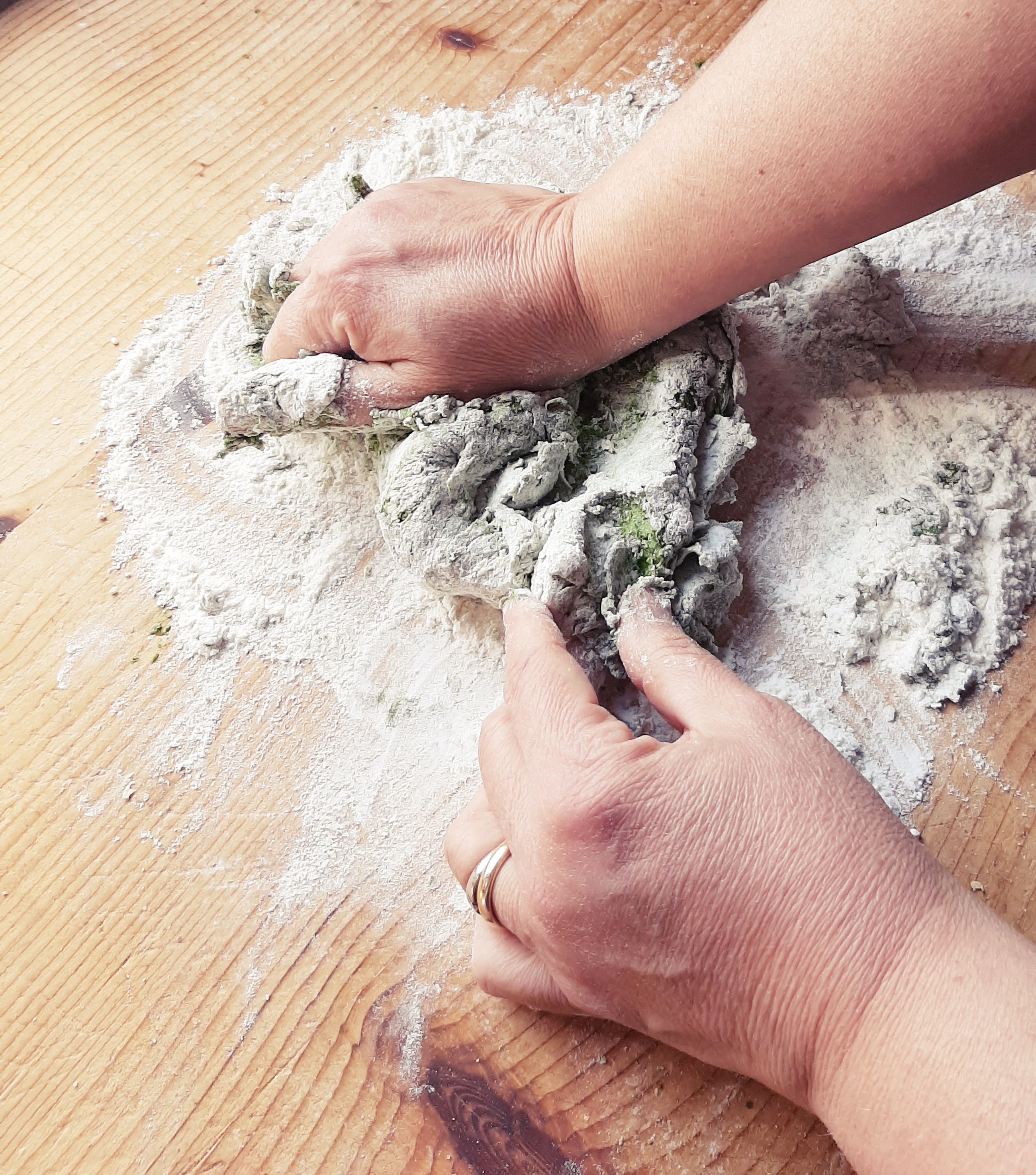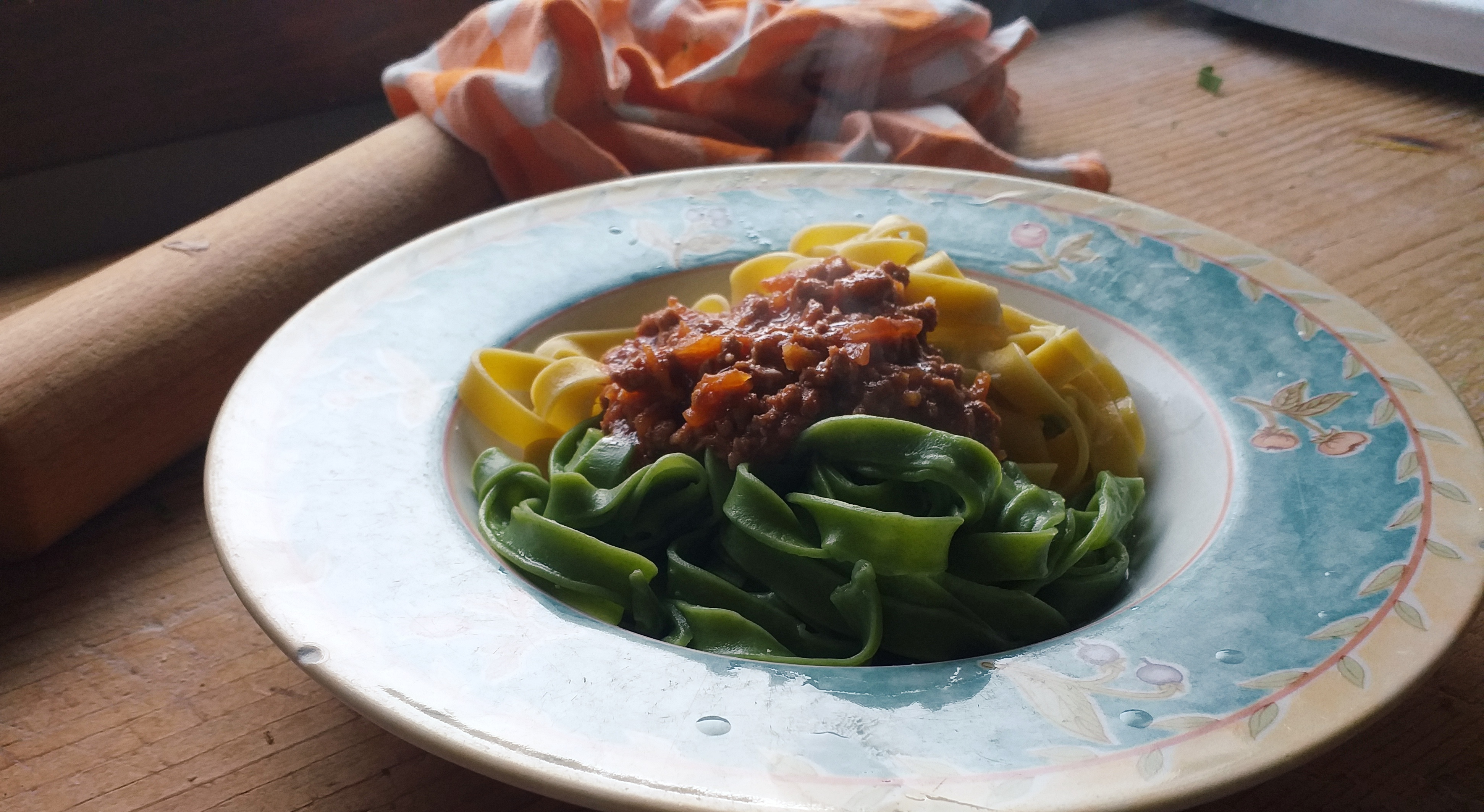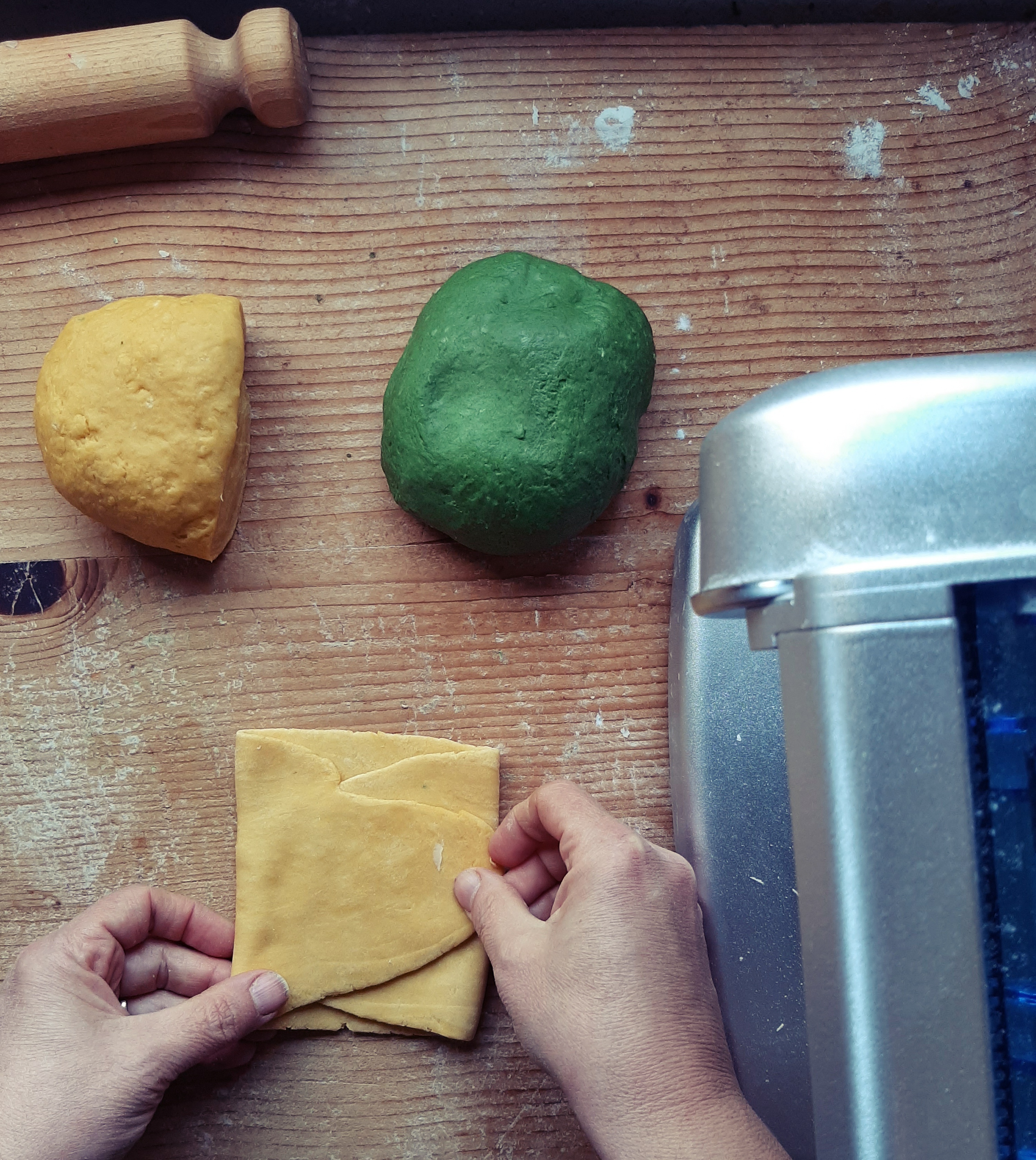 - Impasto verde:2 uova, 60 g spinaci strizzati, 300 g farina, sale