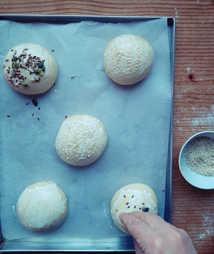 Questo non vuol dire che la goduria di un bell’hamburger con salsine varie e patatine fritte ci lasci completamente indifferenti…. ma, invece di consumarli in fretta e furia, ce li godiamo con calma dall’inizio alla fine, dall’impasto per il pane fino alla scarpetta finale della salsa barbeque nel piatto.