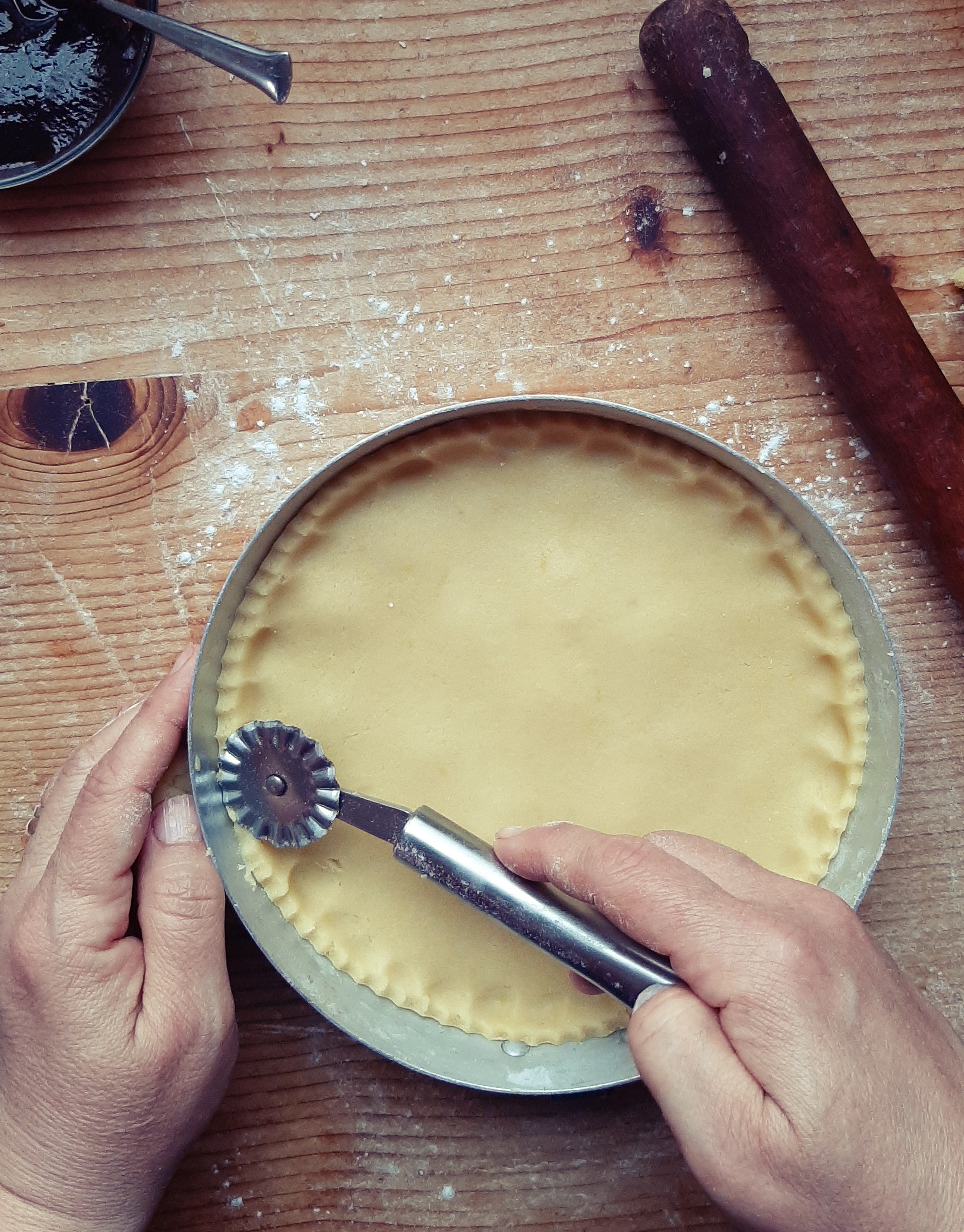 - Chiudere con uno strato di frolla che andremo a sigillare bene sui lati, bucherellare leggermente la superficie e mettere in forno già caldo, a 180°C per circa 35 minuti (o comunque fino a colorazione).