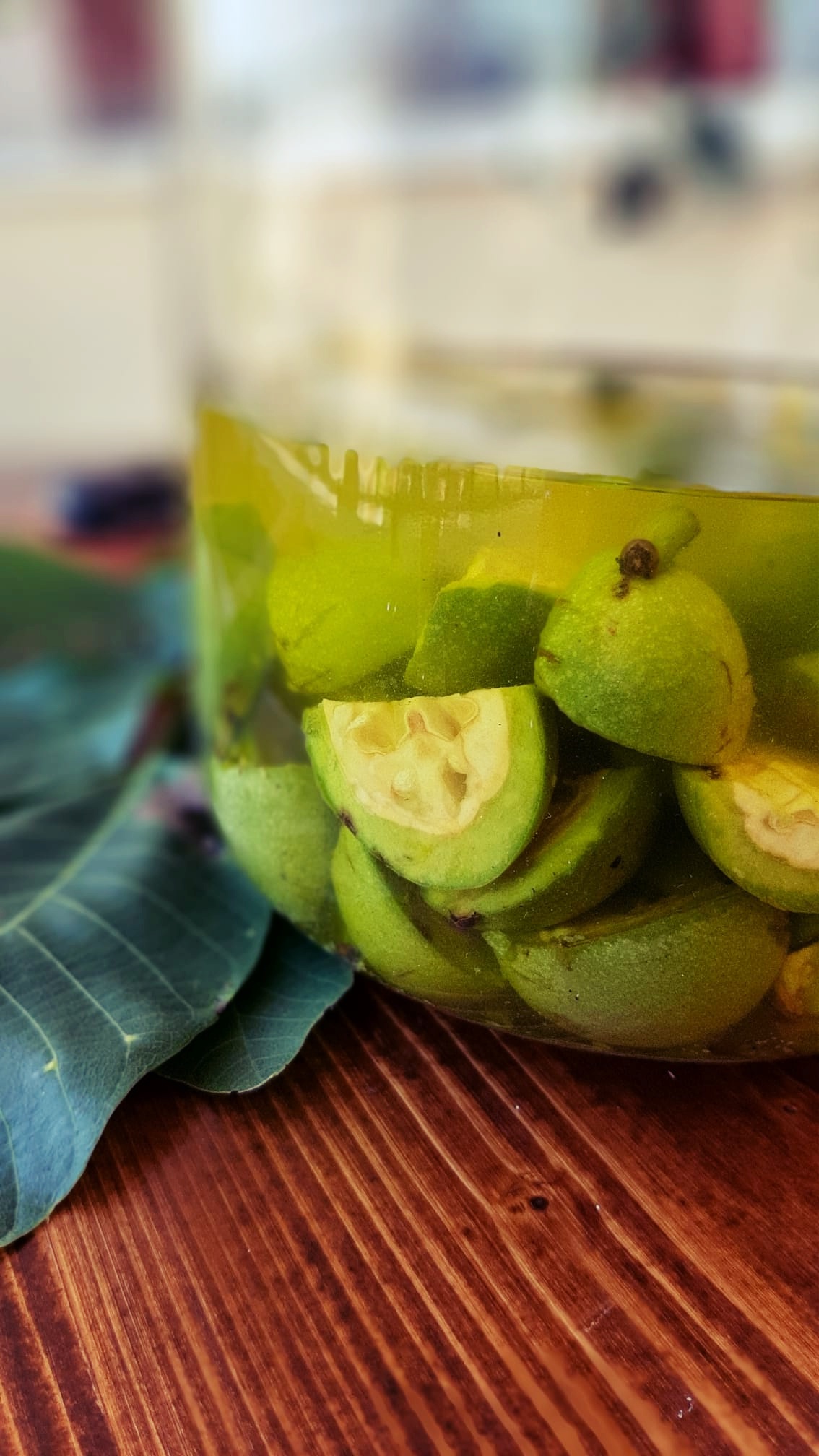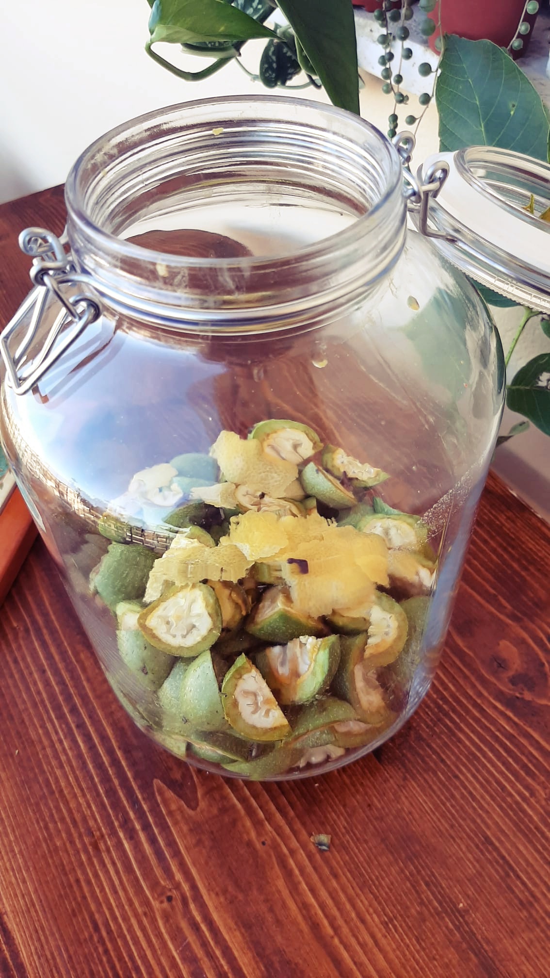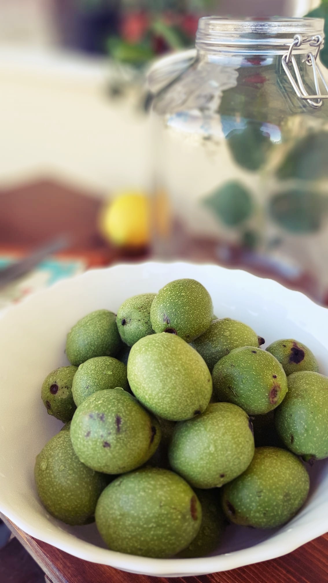 - Lavare, asciugare e tagliare in 4 le noci (fatelo con i guanti perché macchiano le mani) e mettetele in un vaso capiente con la chiusura ermetica. Aggiungere la buccia del limone, i chiodi di garofano e infine tutto l’alcol.