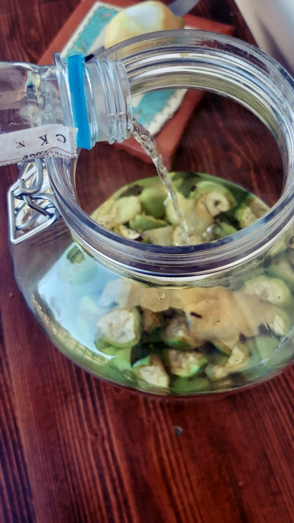 - Fare bollire il vino (o l’acqua) con lo zucchero e una volta raffreddato unire a questo l’infuso delle noci, filtrato molto bene; mescolare e far riposare il tutto ancora qualche giorno nel vaso mescolandolo ogni tanto, in modo che la parte alcolica si mescoli bene al resto . Dopodiché imbottigliare ma per degustarlo dovremo pazientare ancora qualche mese.