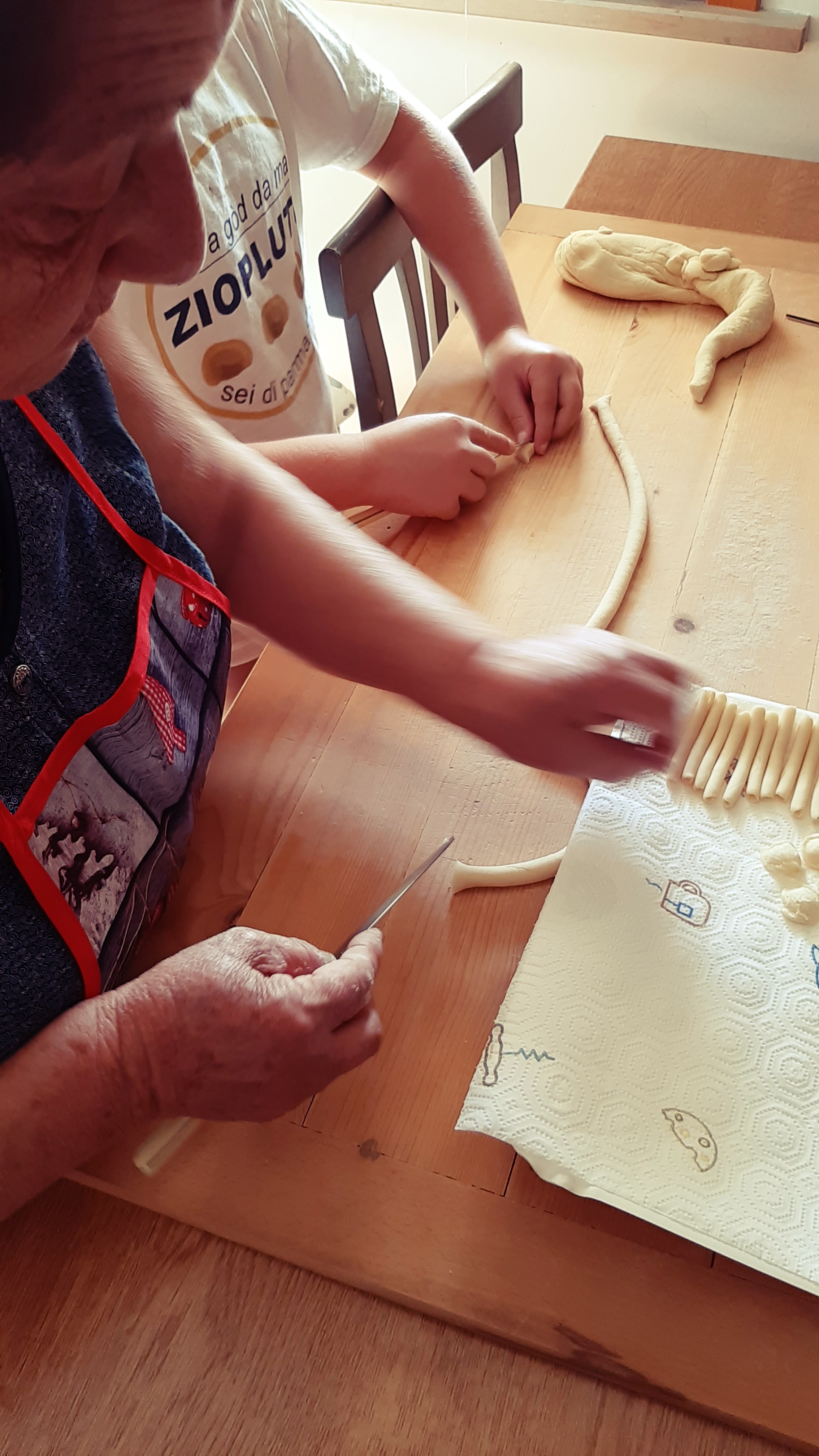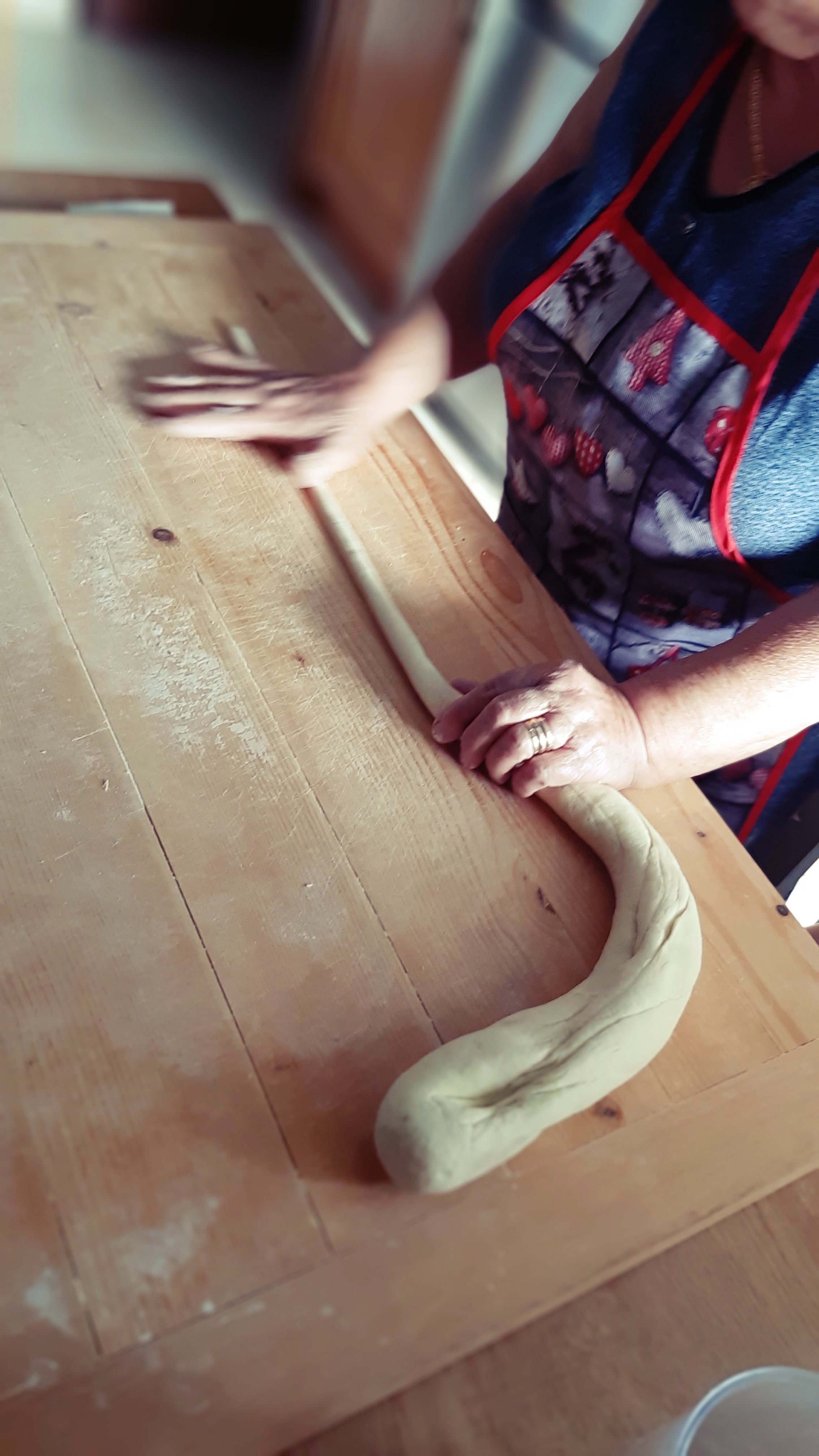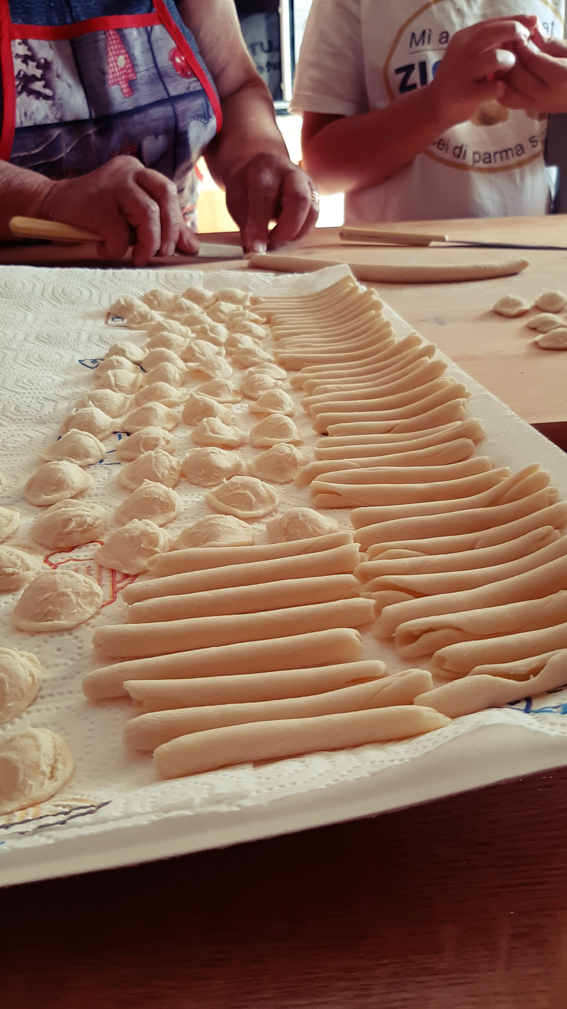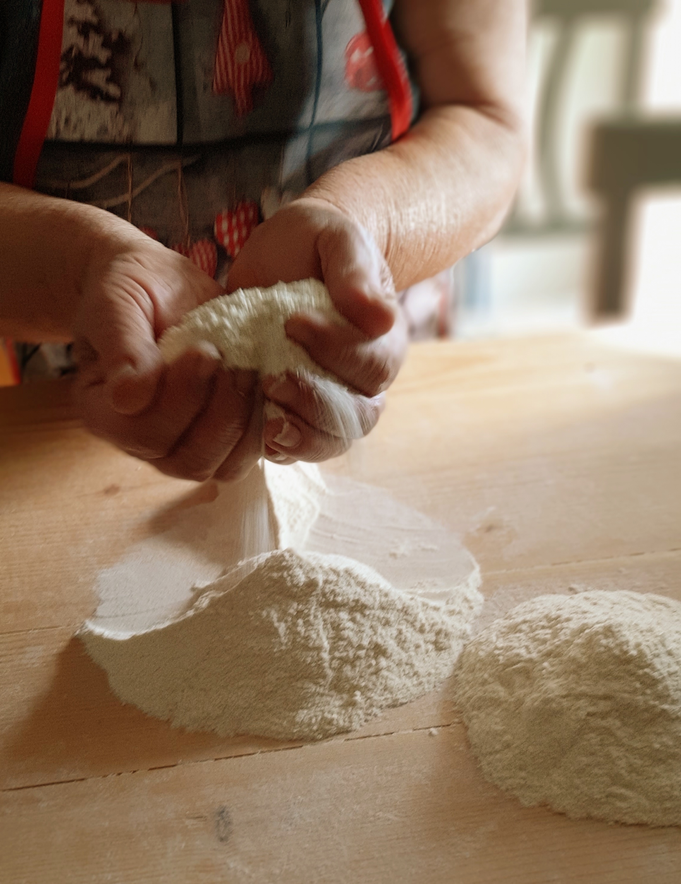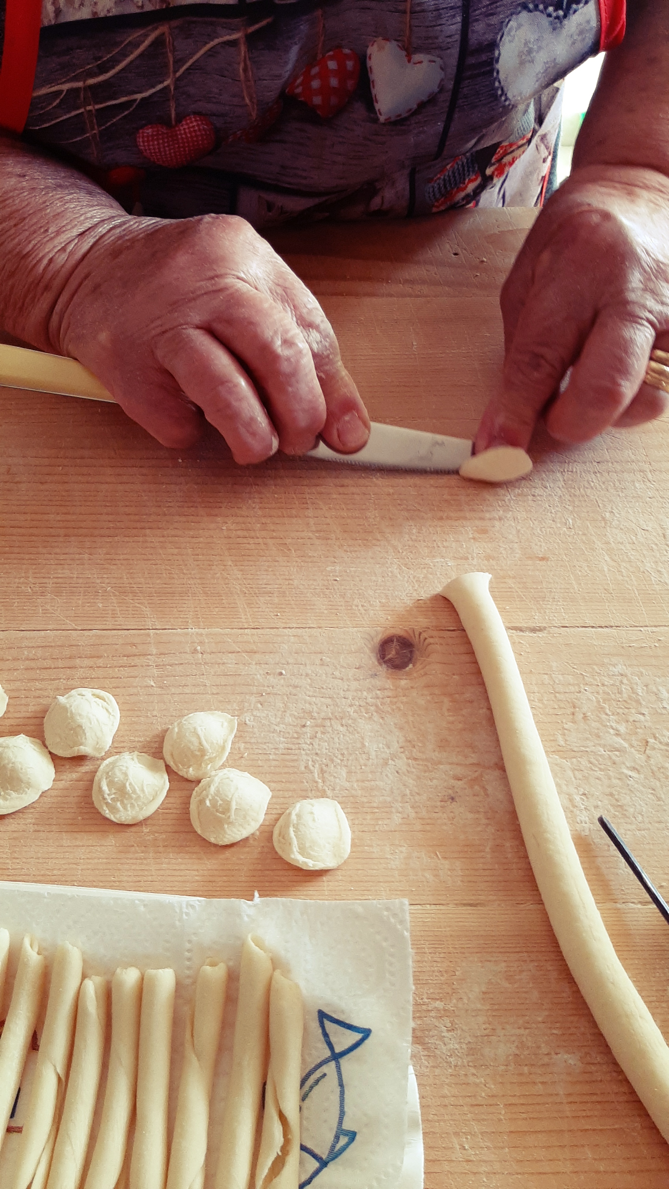 La magia dei gesti è difficile da spiegare a parole e speriamo che le foto e i video, che potete trovare qui e sulla nostra pagina Facebook, possano guidarvi e aiutarvi. Ci vuole moltissima pratica e magari le prime volte (ma anche le seconde e le terze!) le vostre orecchiette non saranno tutte uguali e precise come quelle della Signora Lucia, ma volete mettere a soddisfazione di un bel piatto di pasta fatto da voi??!!