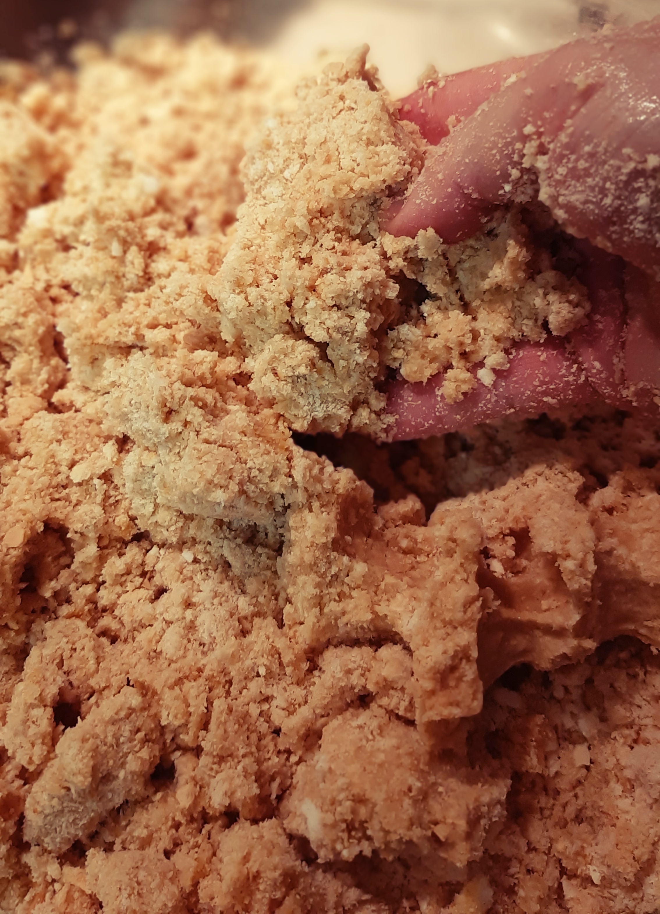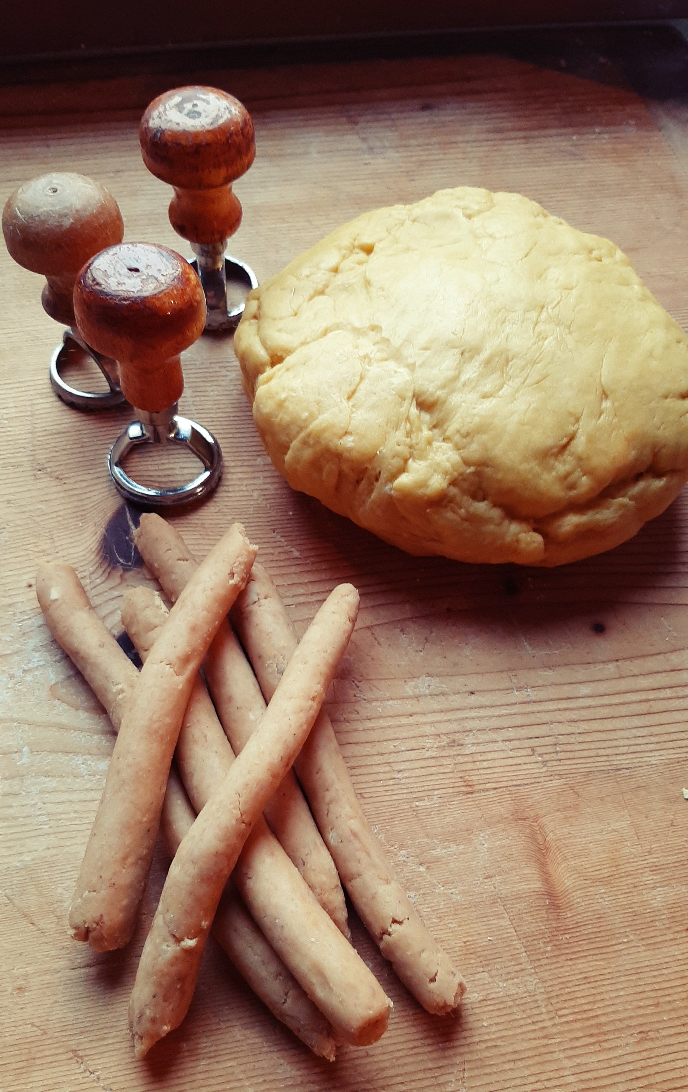 Una volta impastato il tutto fino ad ottenere una pasta belle liscia, lasciamo riposare una mezz’oretta a temperatura ambiente coperto con cellophane.