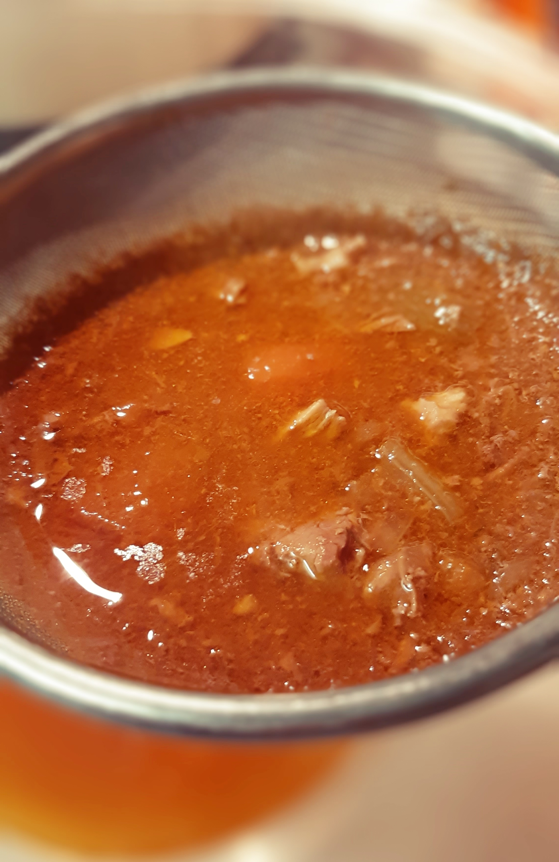 Trascorso questo tempo, cominciamo a passare al setaccio il sugo, schiacciando bene la carne in modo che escano tutti i succhi; con questo sugo caldo, “scottiamo” il pane grattugiato, cioè lo versiamo sul pane e cominciamo a farlo assorbire. Se vedere che il sugo abbonda, tenetene da parte un po’ nel caso servisse successivamente. Qui le scuole di pensiero sono molte e diverse; a casa mia si predilige un pane non troppo umido e bagnato, in modo che il ripieno risulti ben sodo