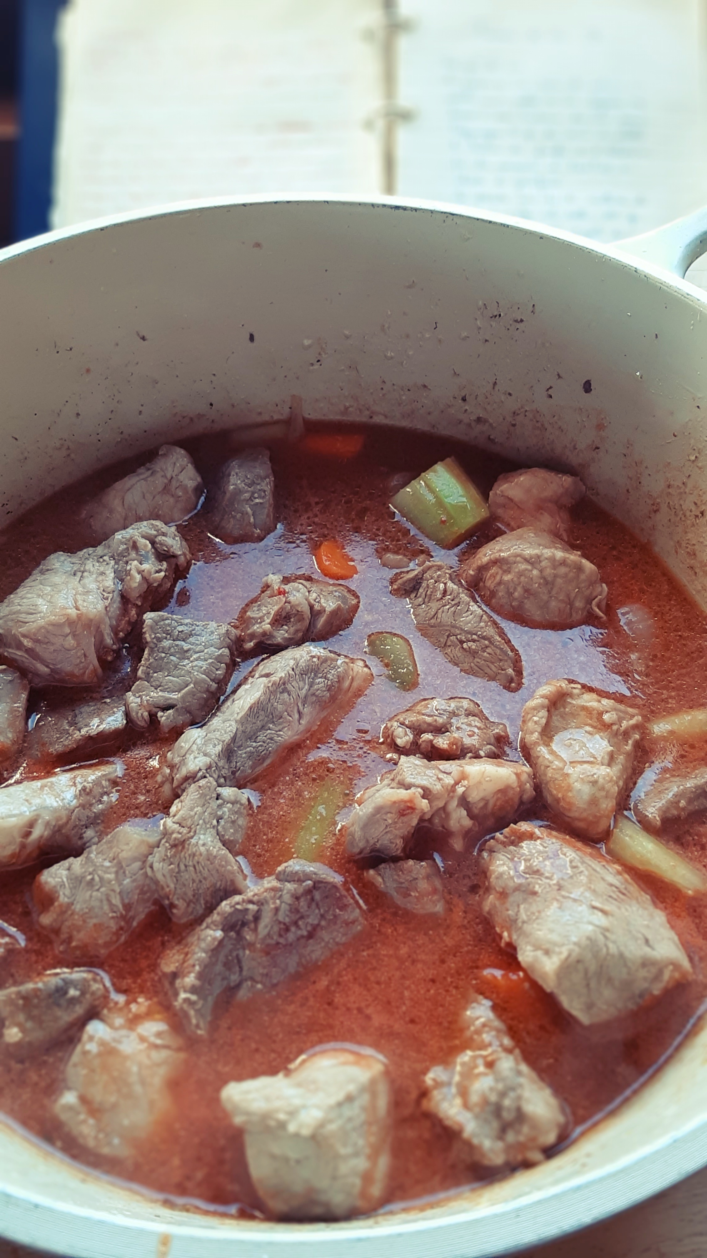 Abbassare la fiamma di modo da fare solo sobbollire lo stracotto e cuocerlo per 5/6 ore.
