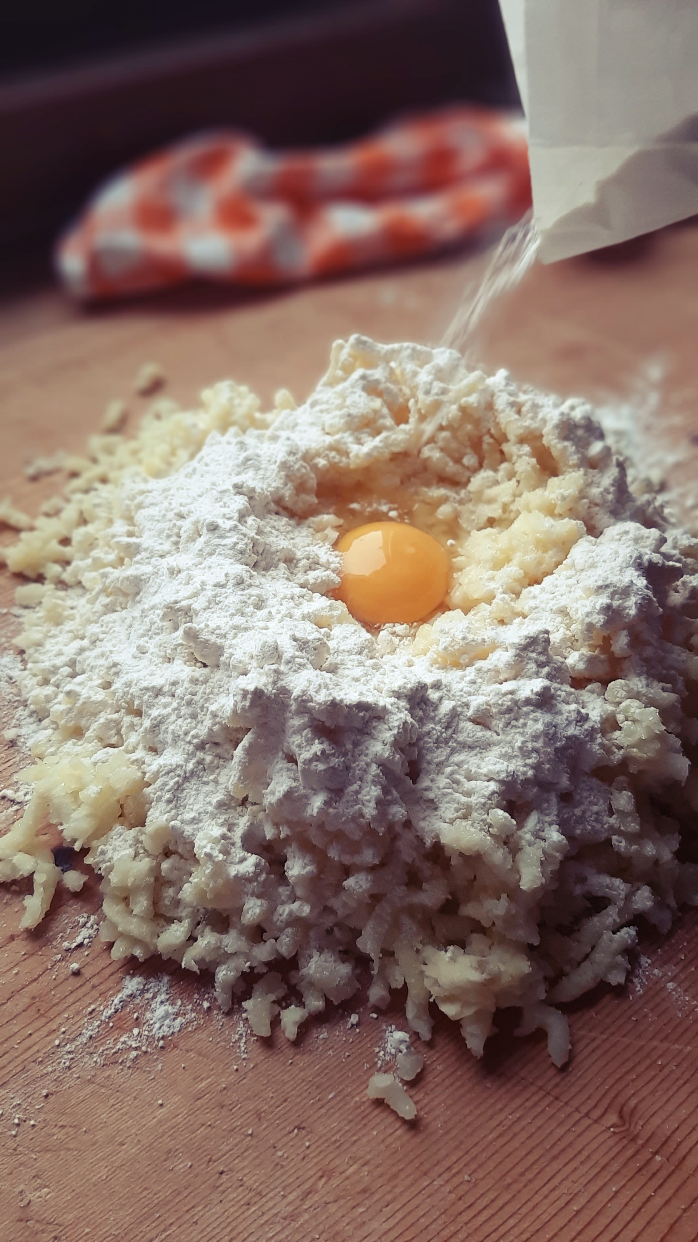- 120/160 g farina + quella per lo spolvero