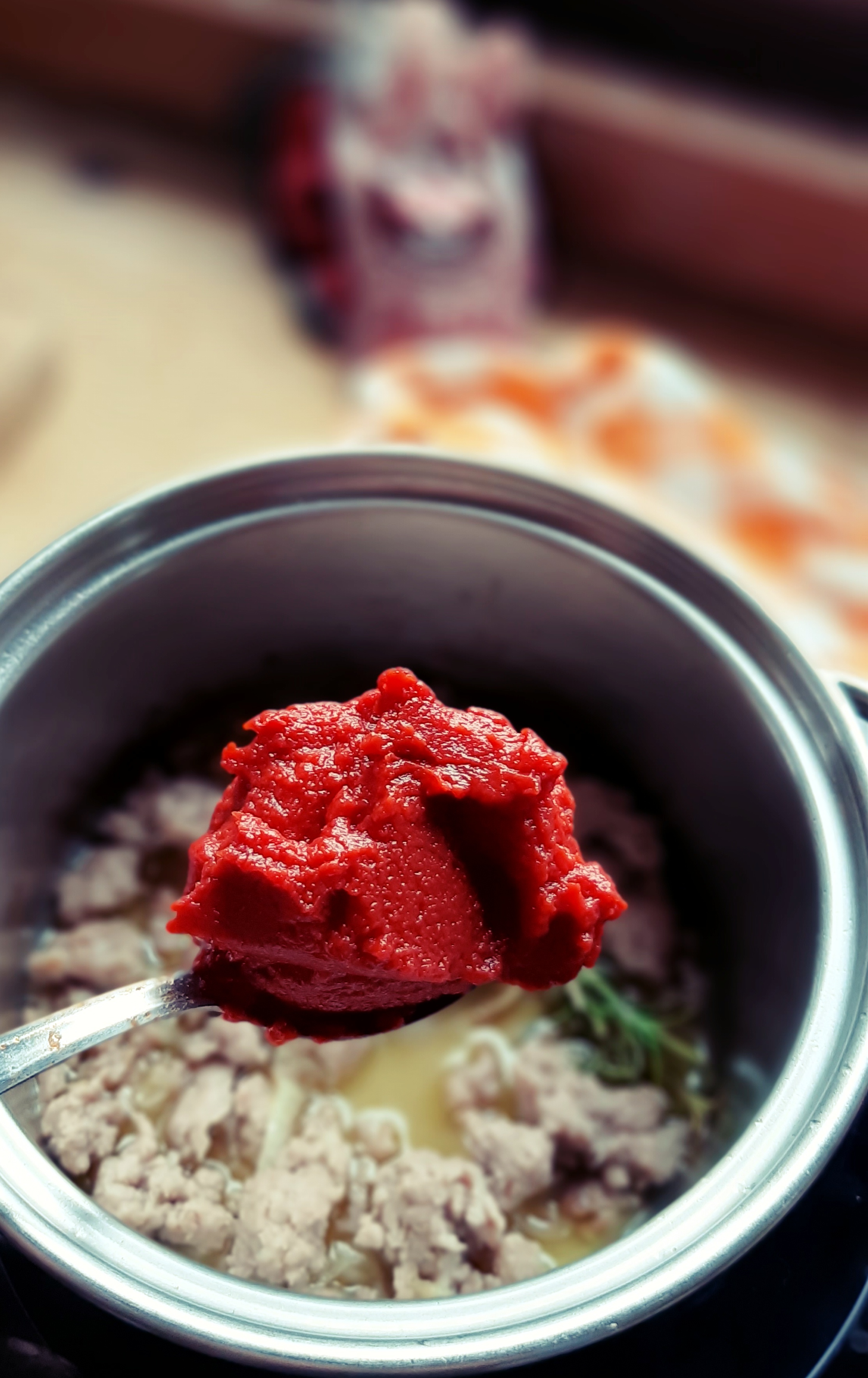 - Portiamo a cottura, con fuoco medio basso per 15/20 minuti, assaggiamo e regoliamo di sale se dovesse servire (attenzione che sia la carne da salame che il doppio concentrato sono già saporiti).