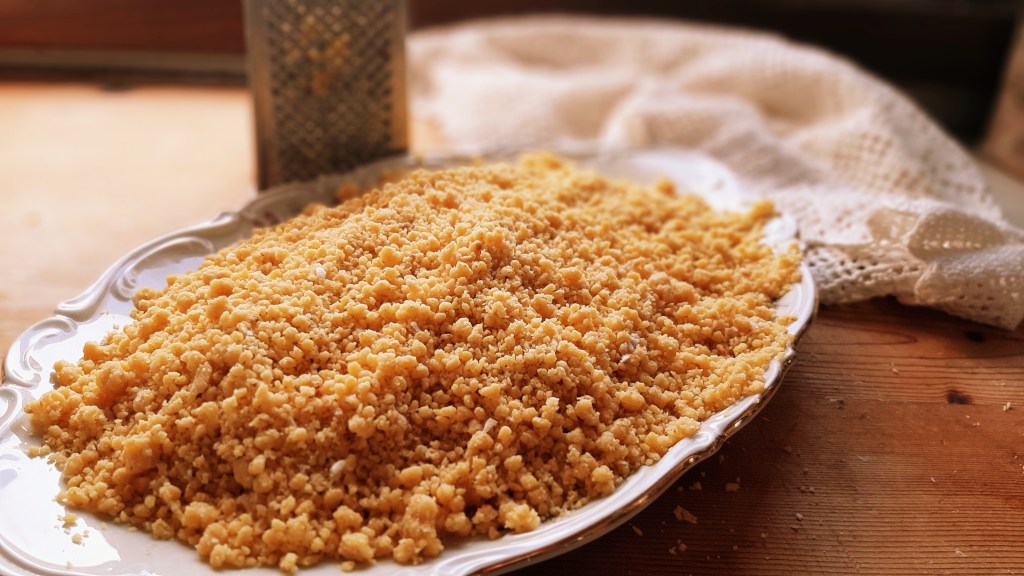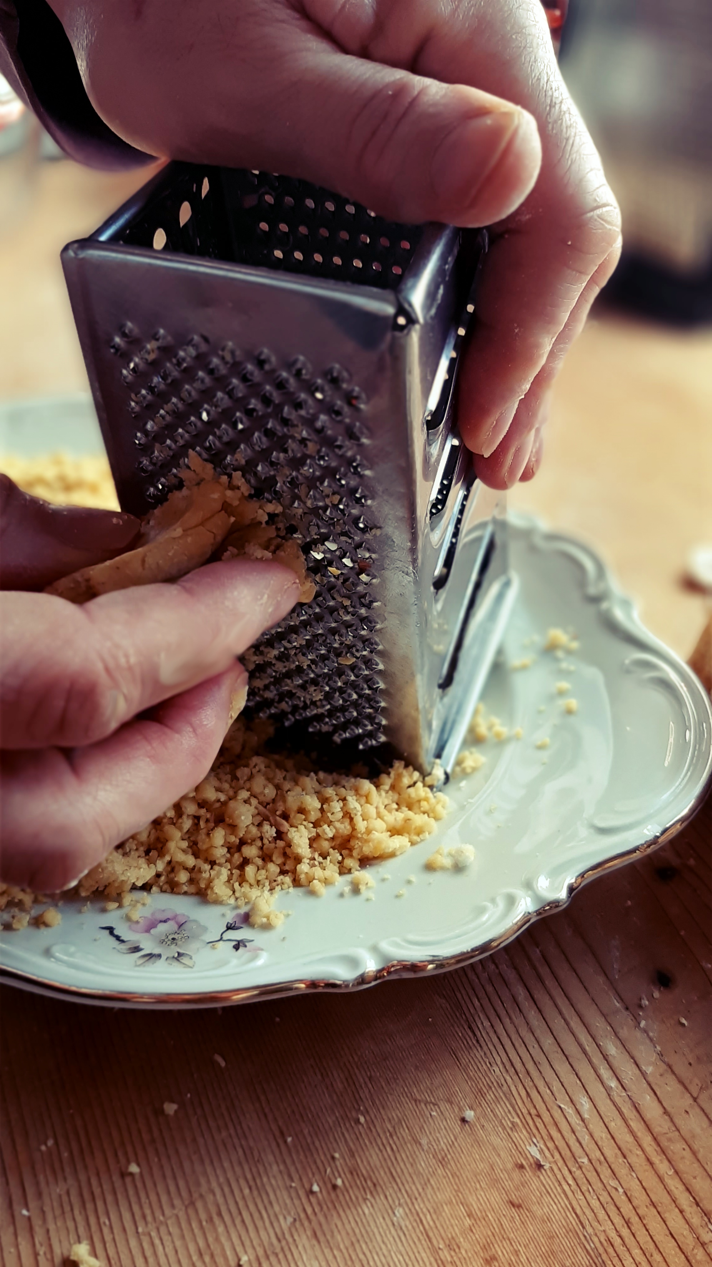 - Questa pasta prende il nome di “Rasa” proprio perché viene formata grattugiando l’impasto sui forellini che di solito usiamo per grattugiare il formaggio; in dialetto parmigiano “Rasa o rasuda” vuol dire grattugiata.
