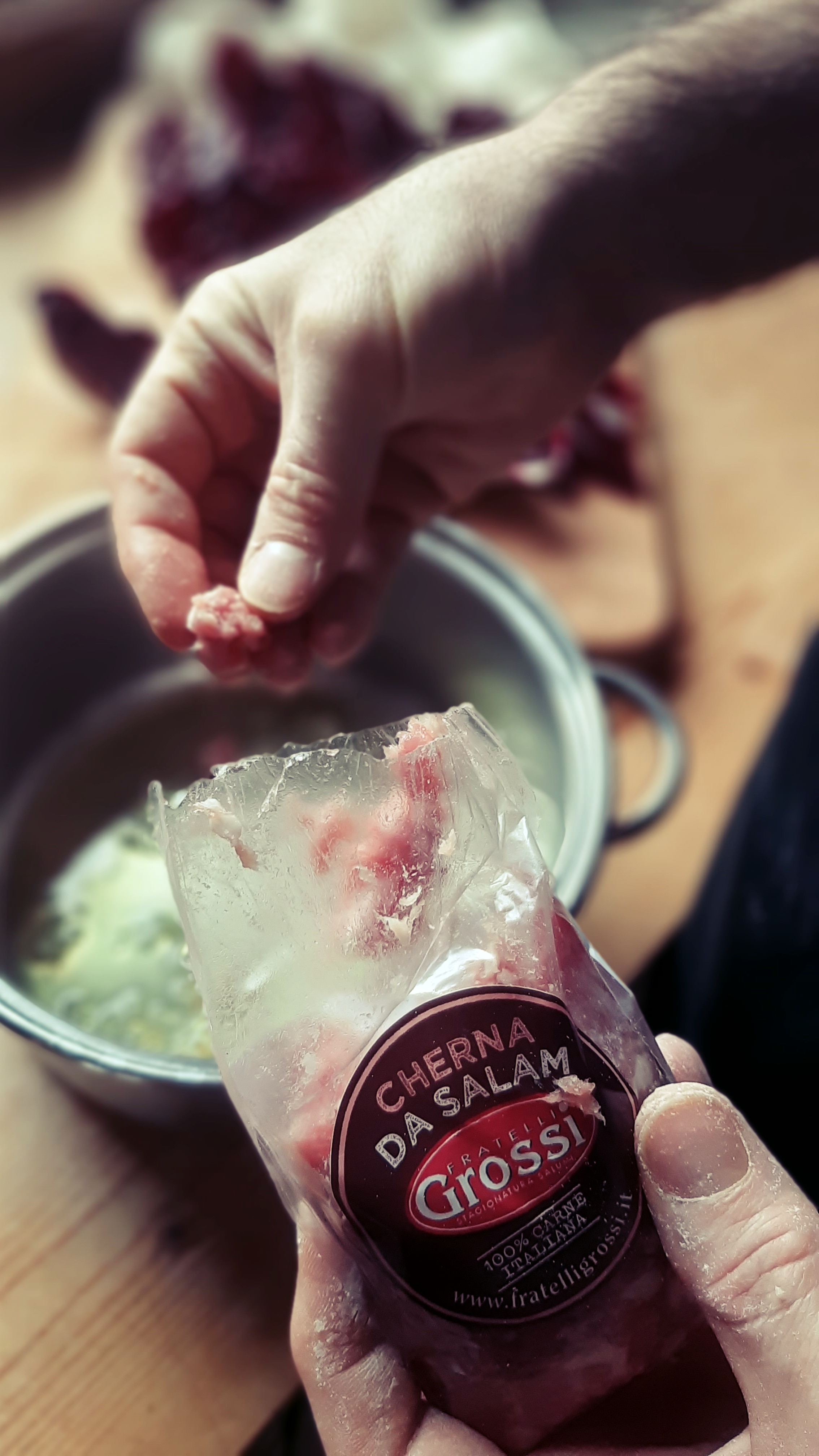 Premessa: come il solito la qualità degli ingredienti fa la differenza e quindi scegliete un radicchio fresco (magari da un contadino della zona), un vino rosso di qualità, un’ottima carne da salame, come quella dei Fratelli Grossi, un buon brodo di carne o vegetale preparato ad hoc e il risultato sarà assicurato.