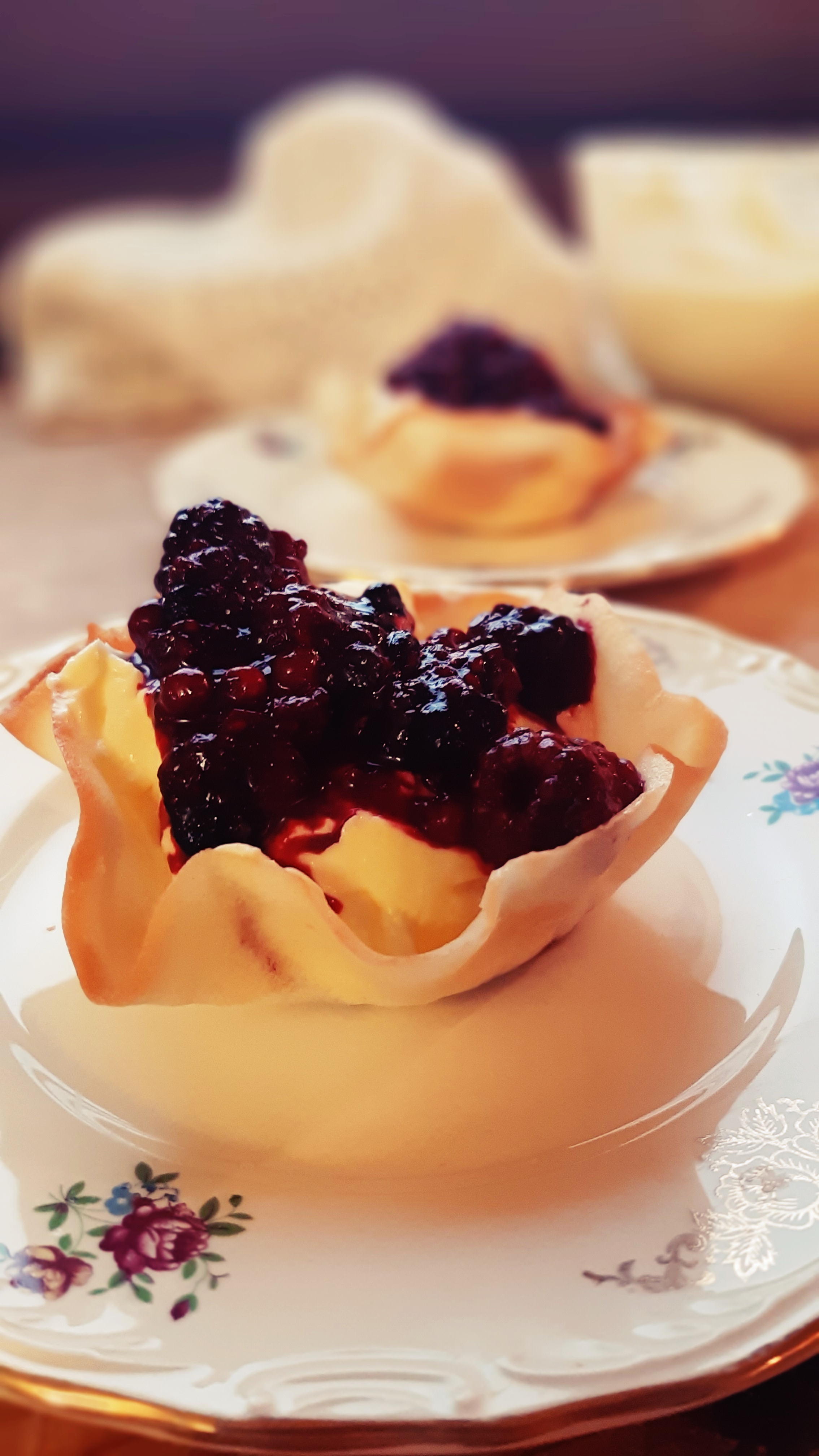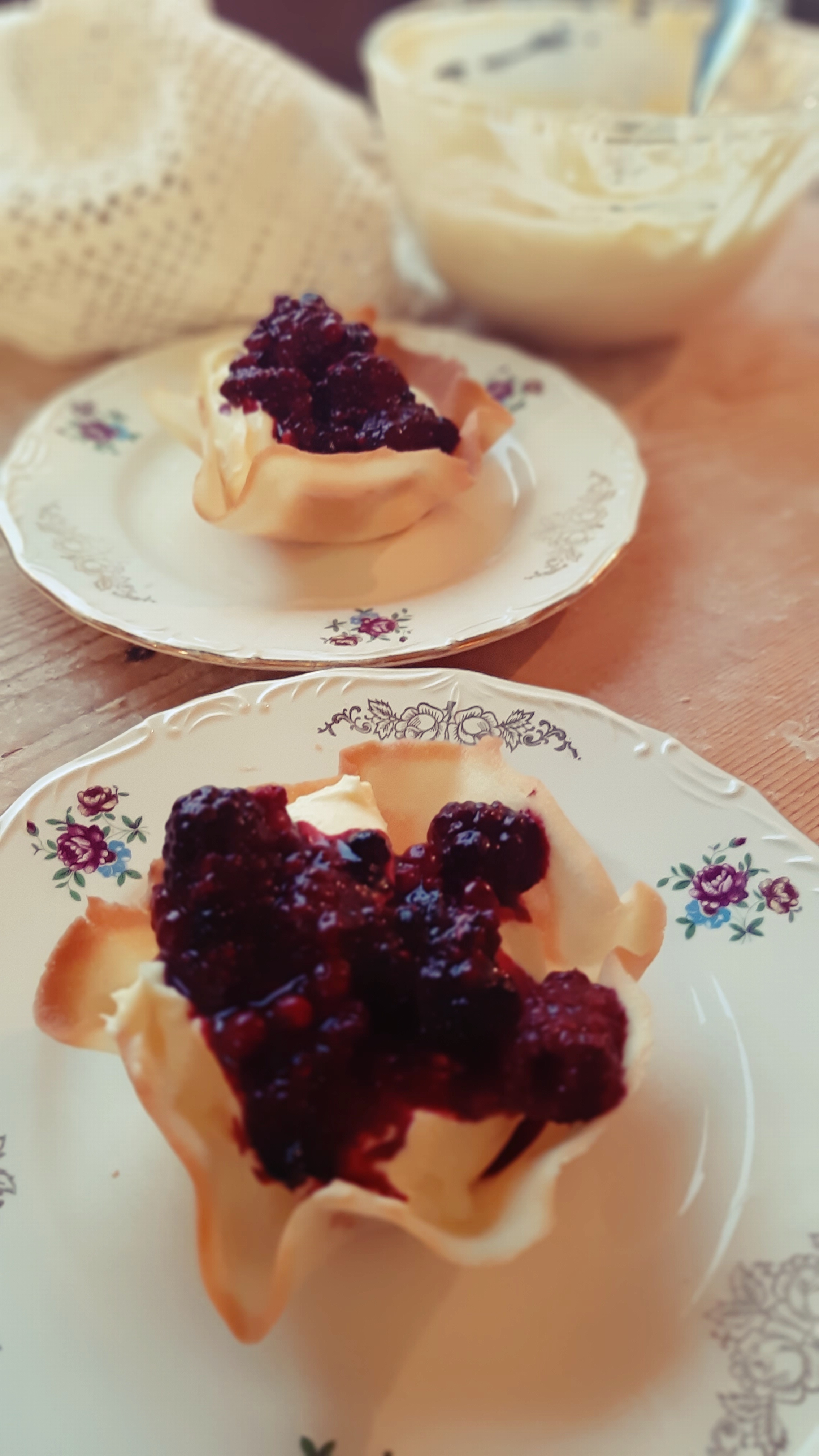 - Per la farcitura potete optare per la frutta fresca oppure, come abbiamo fatto noi, frutti di bosco spadellati qualche minuto, giusto per creare quella salsina buonissima che con la crema ci sta benissimo.