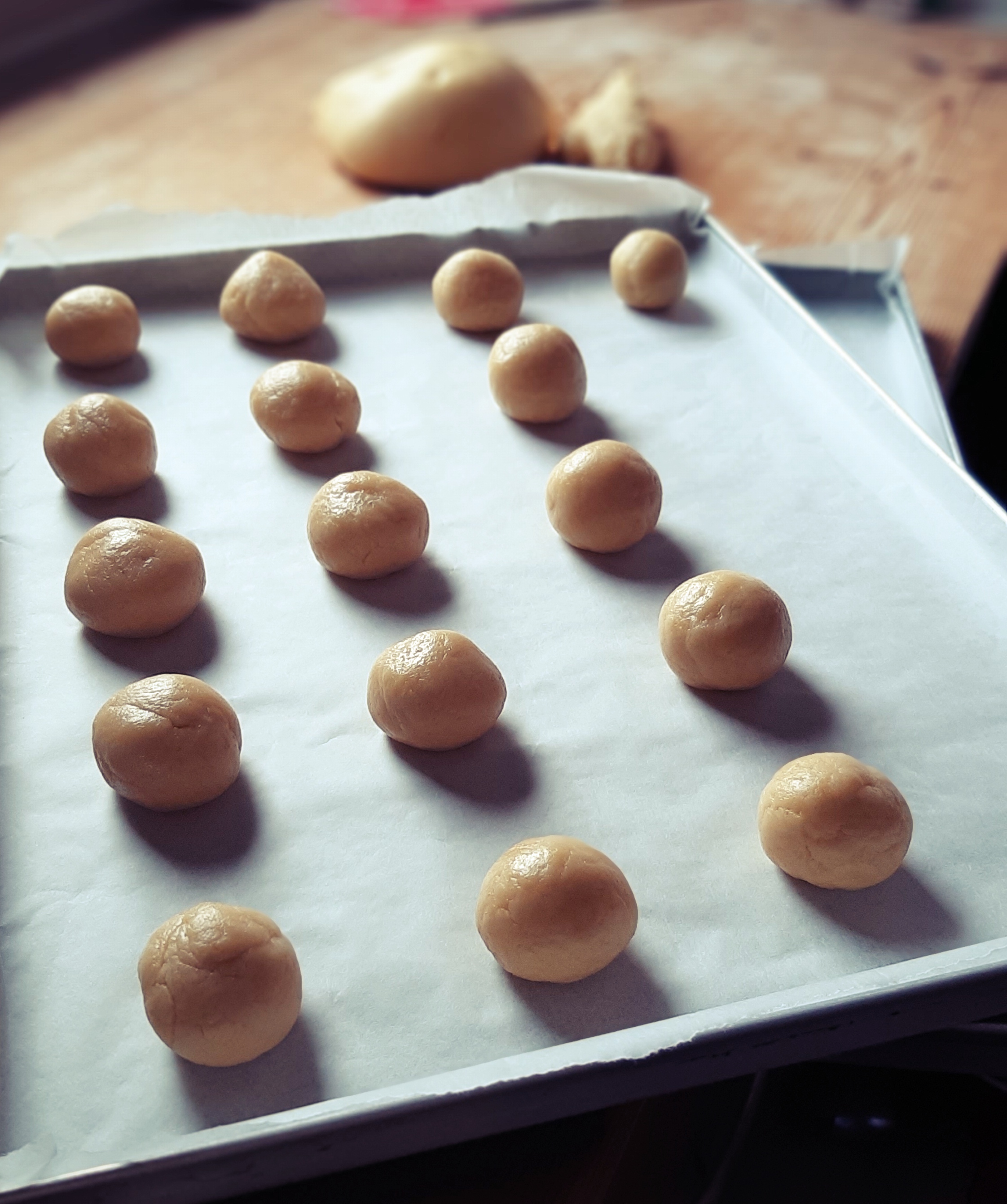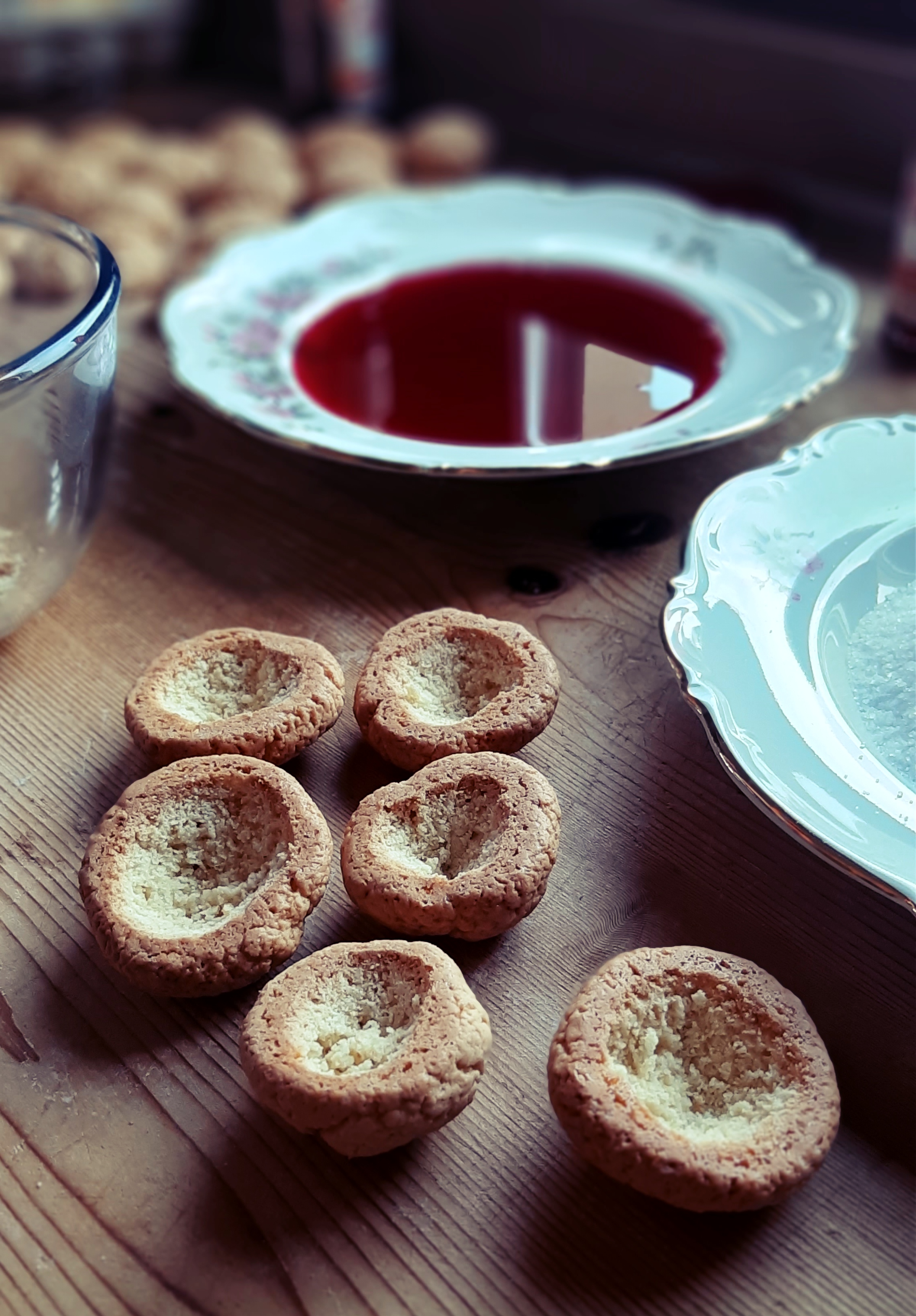 Con queste dosi, otteniamo circa 38 gusci, che disponiamo su due teglie e cuociamo a 180°C per circa 25/30 minuti (non dovranno risultare troppo colorate).