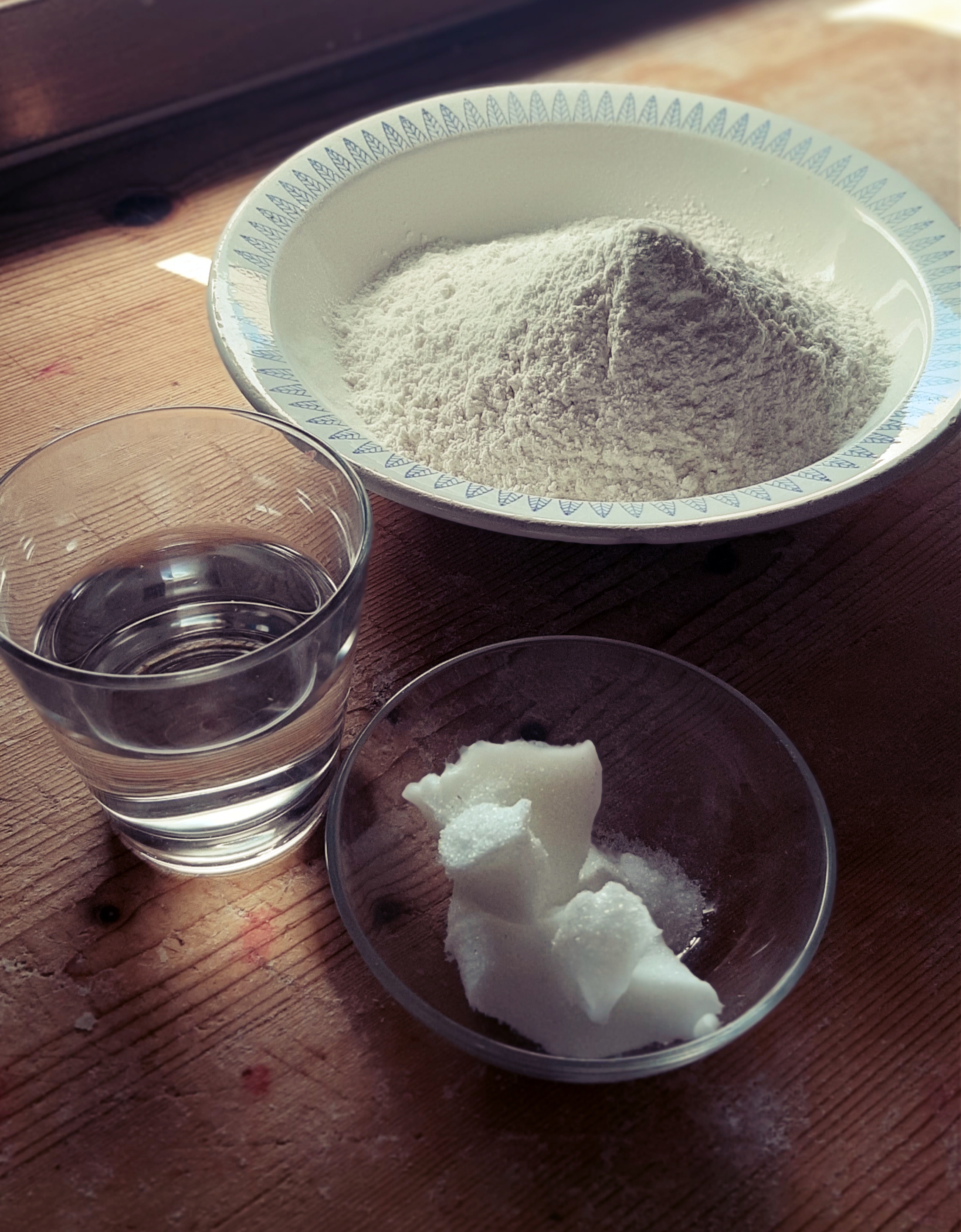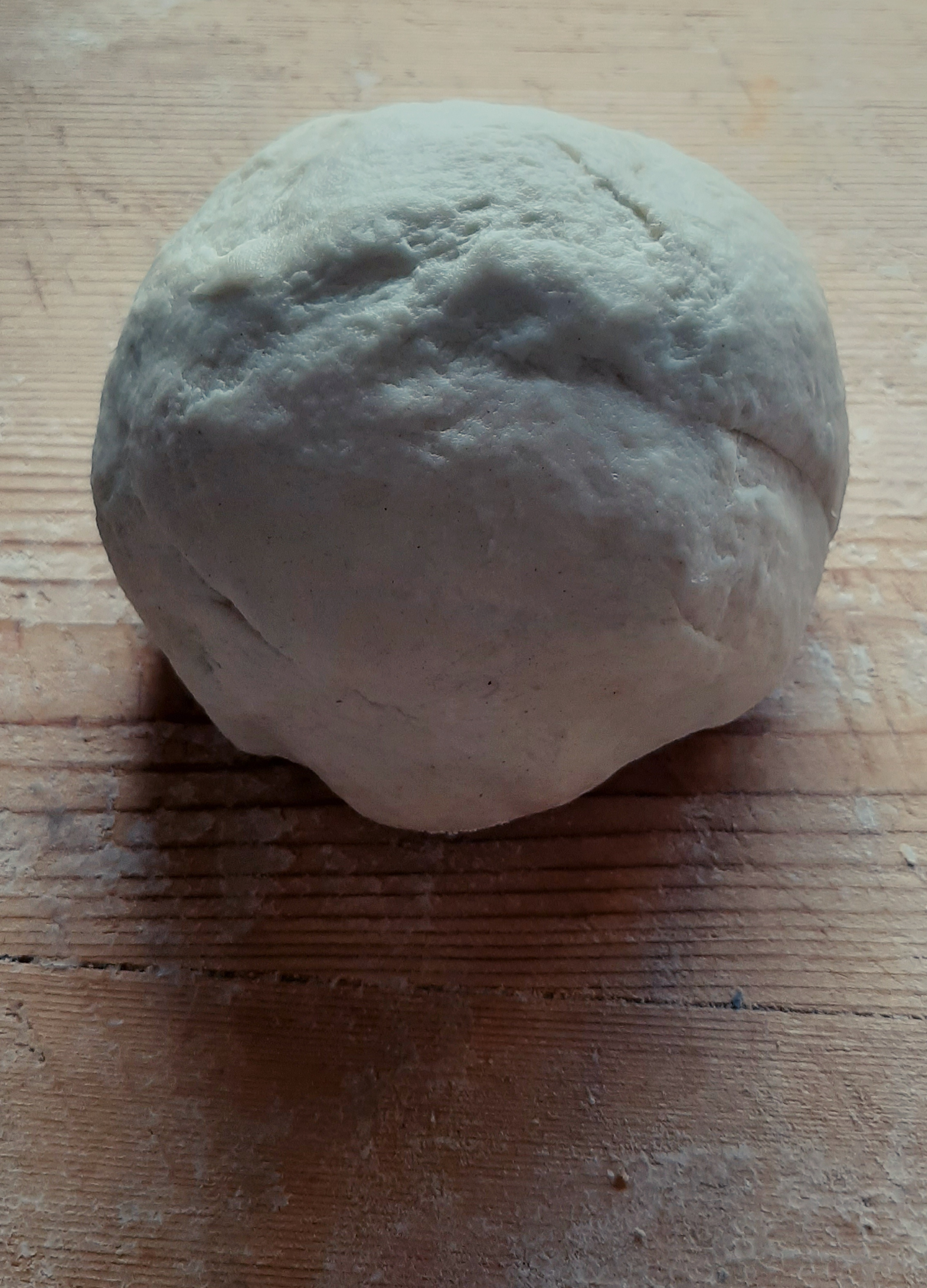 Prepariamo quindi la In una ciotola uniamo farina, strutto, sale e l’acqua. Poi impastiamo, a mano o in planetaria, formando una sfera liscia; poniamola in una ciotola, copriamo e attendiamo 30 minuti circa.