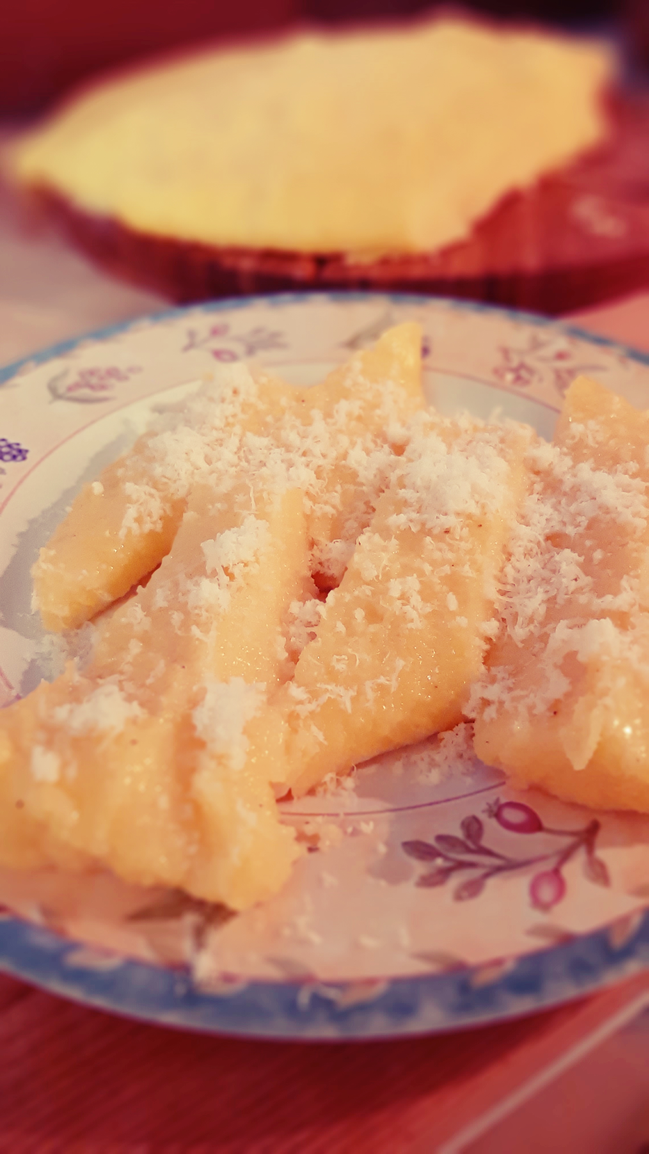 Dopo aver mescolato per un’ora abbondante di continuo per non “farla attaccare”, si rovesciava quella colata di oro giallo su un tagliere di legno rotondo, compattando con il dorso del cucchiaio i bordi, per evitare che tracimassero fuori dal tagliere.