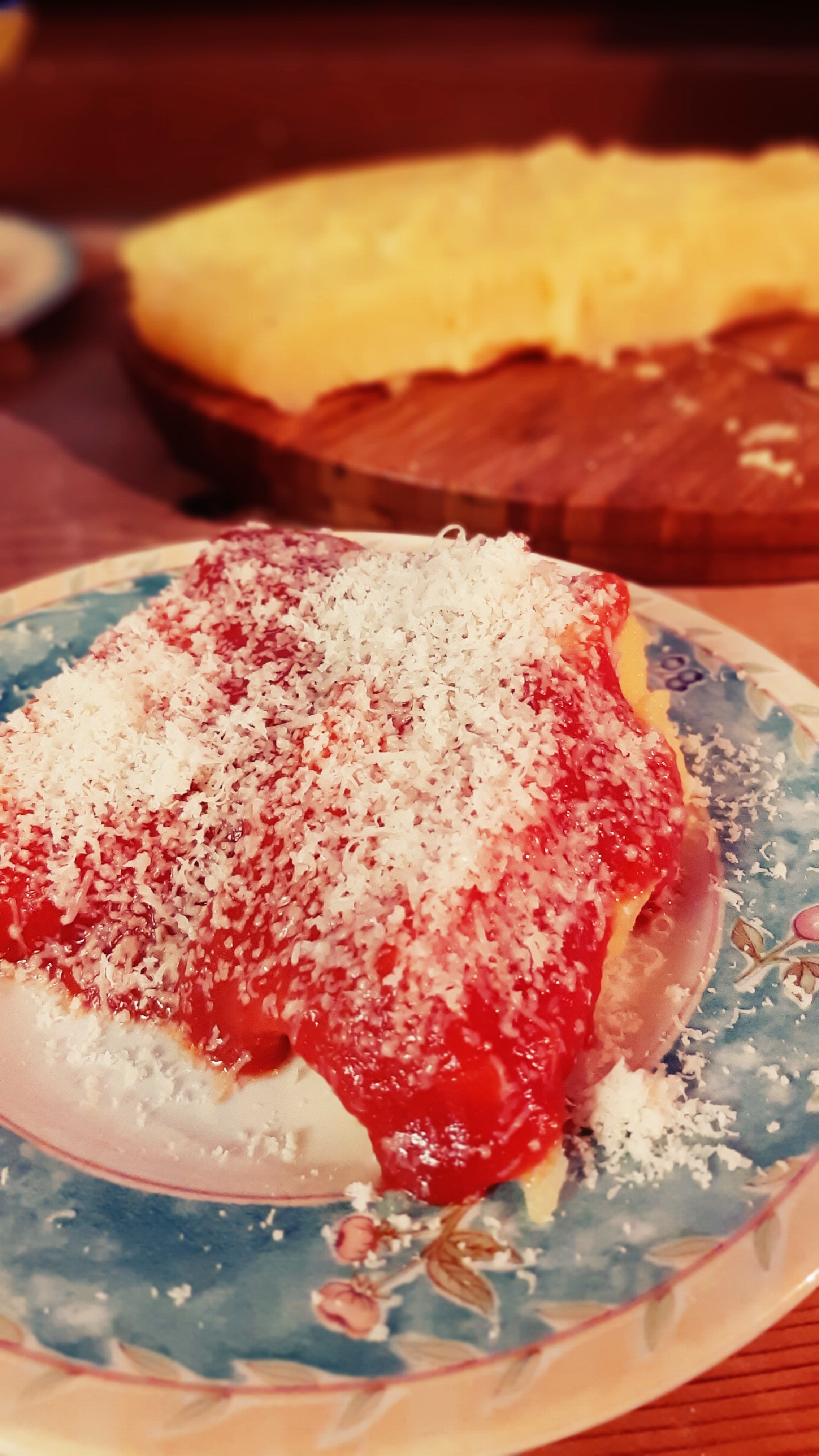 Noi abbiamo scelto due condimenti classici: burro e Parmigiano e sugo di pomodoro e Parmigiano, ma ovviamente ci sono altre mille varianti (gorgonzola, sugo al salamino, lardo….)