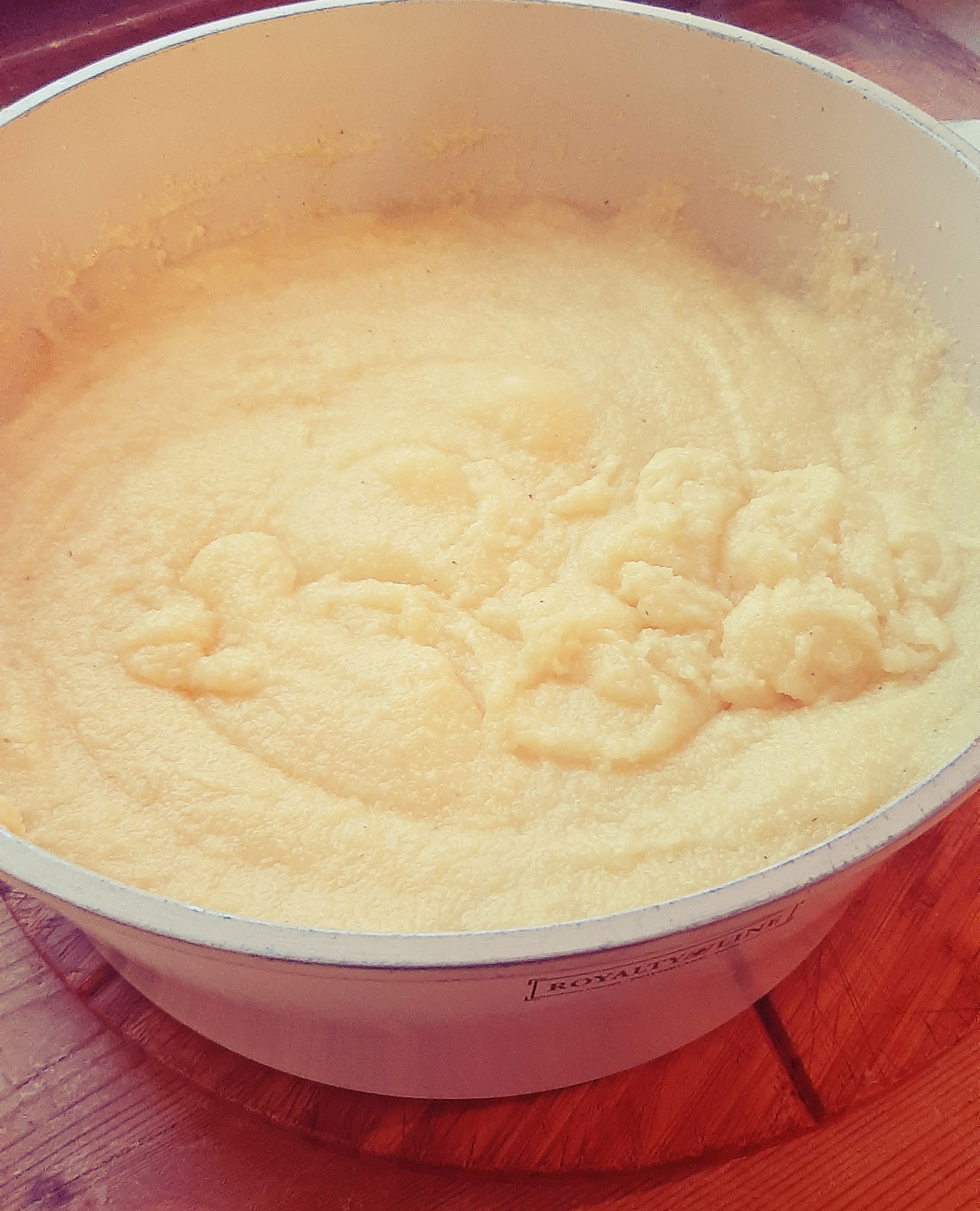 - nb. ogni farina ha il suo grado di assorbimento quindi sempre meglio tenere un po’ di acqua pronta da aggiungere nel caso la polenta risultasse troppo densa oppure nel caso volessimo una polenta dall’aspetto finale più liquido.