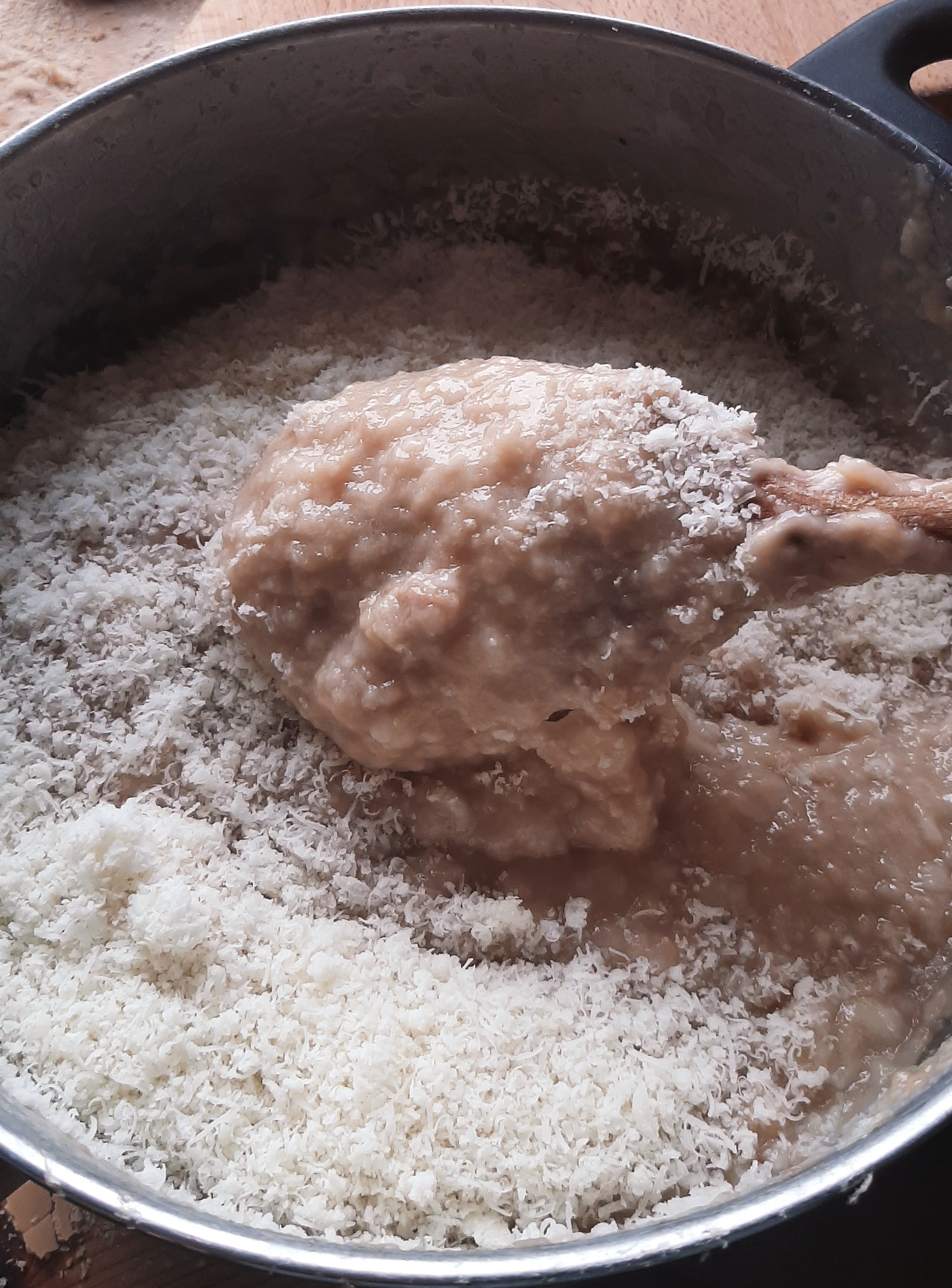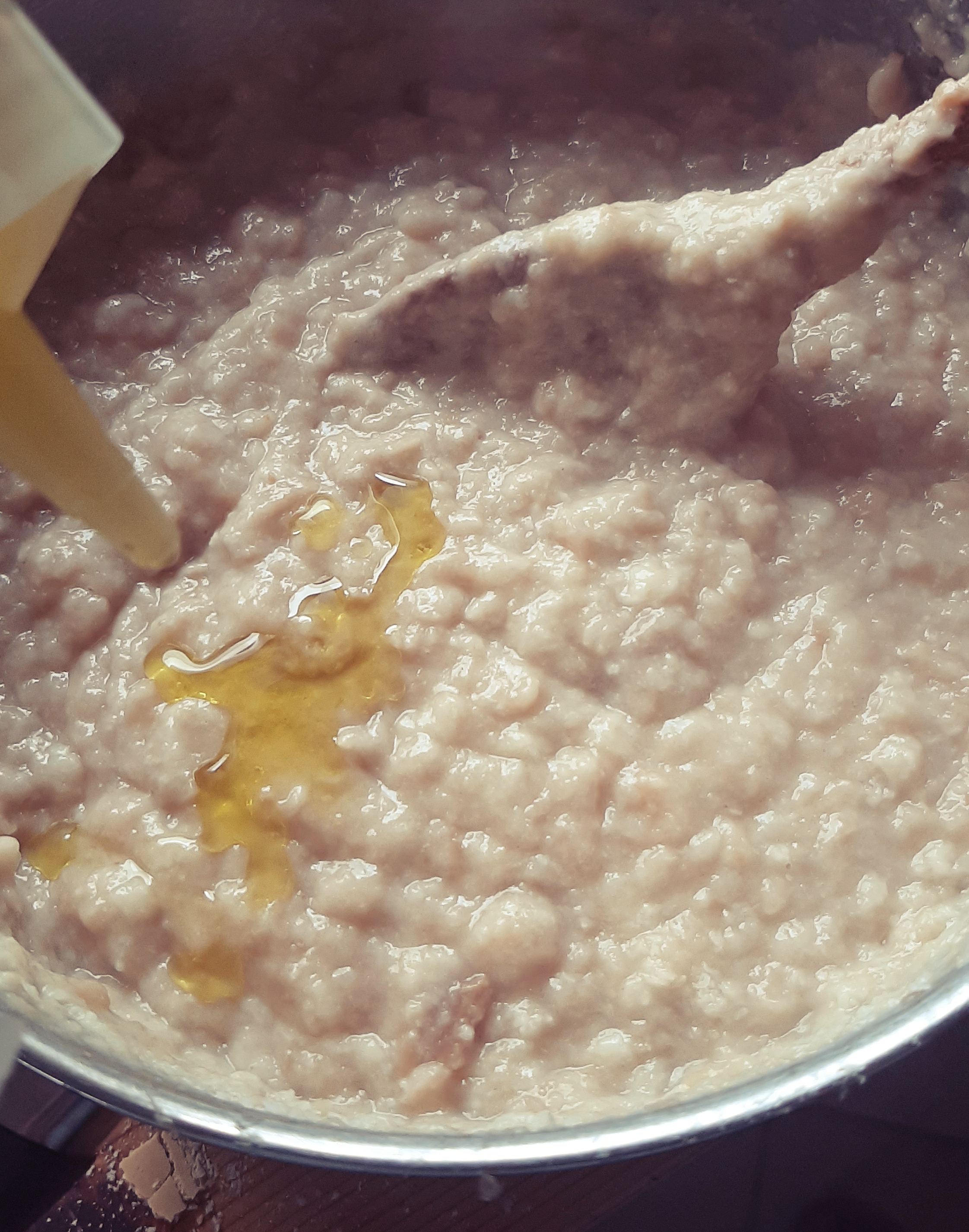 A fine cottura aggiustiamo di sale, anche in base al tipo di pane che avremo utilizzato e condiamo con olio e tanto Parmigiano Reggiano.