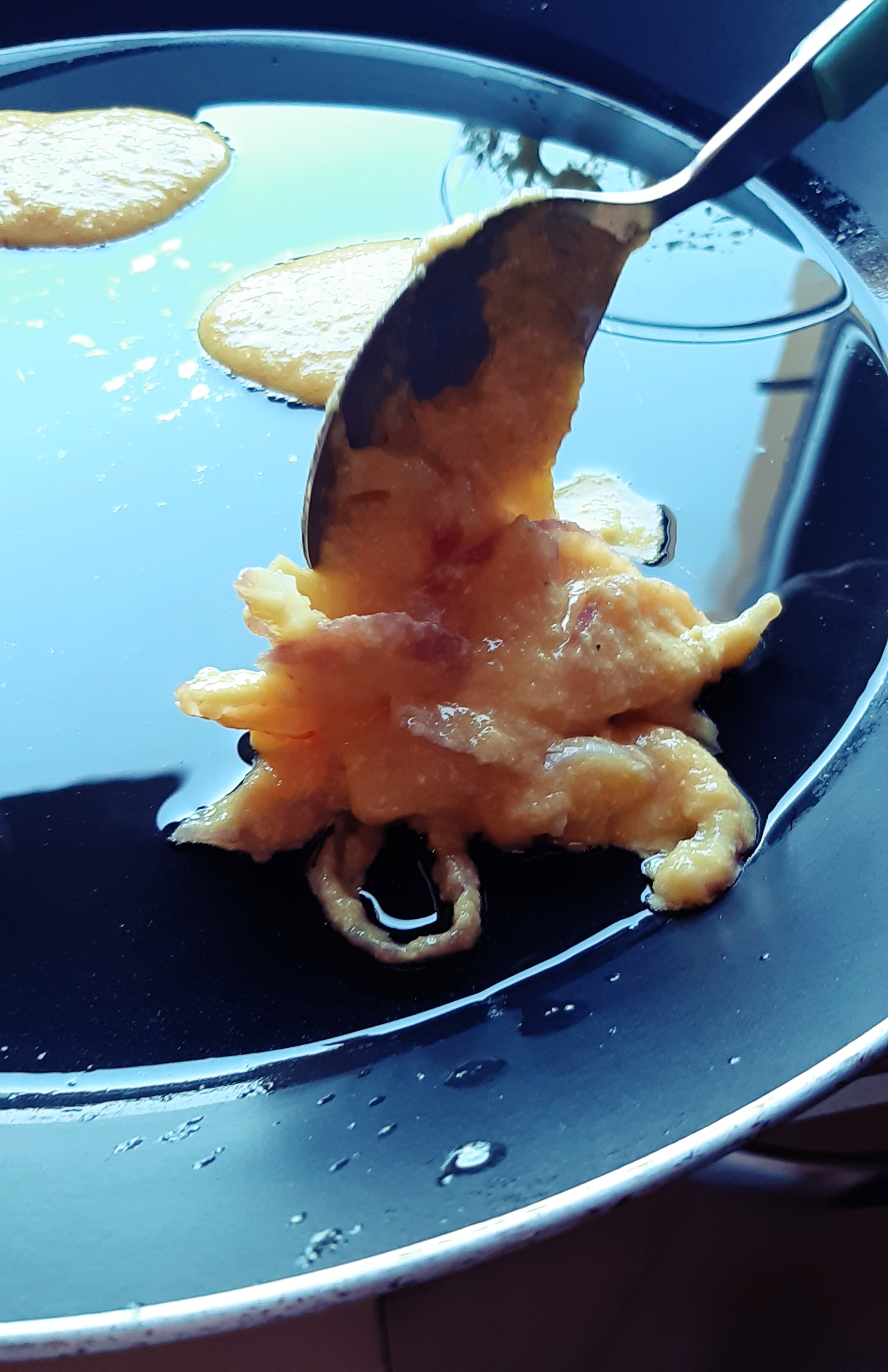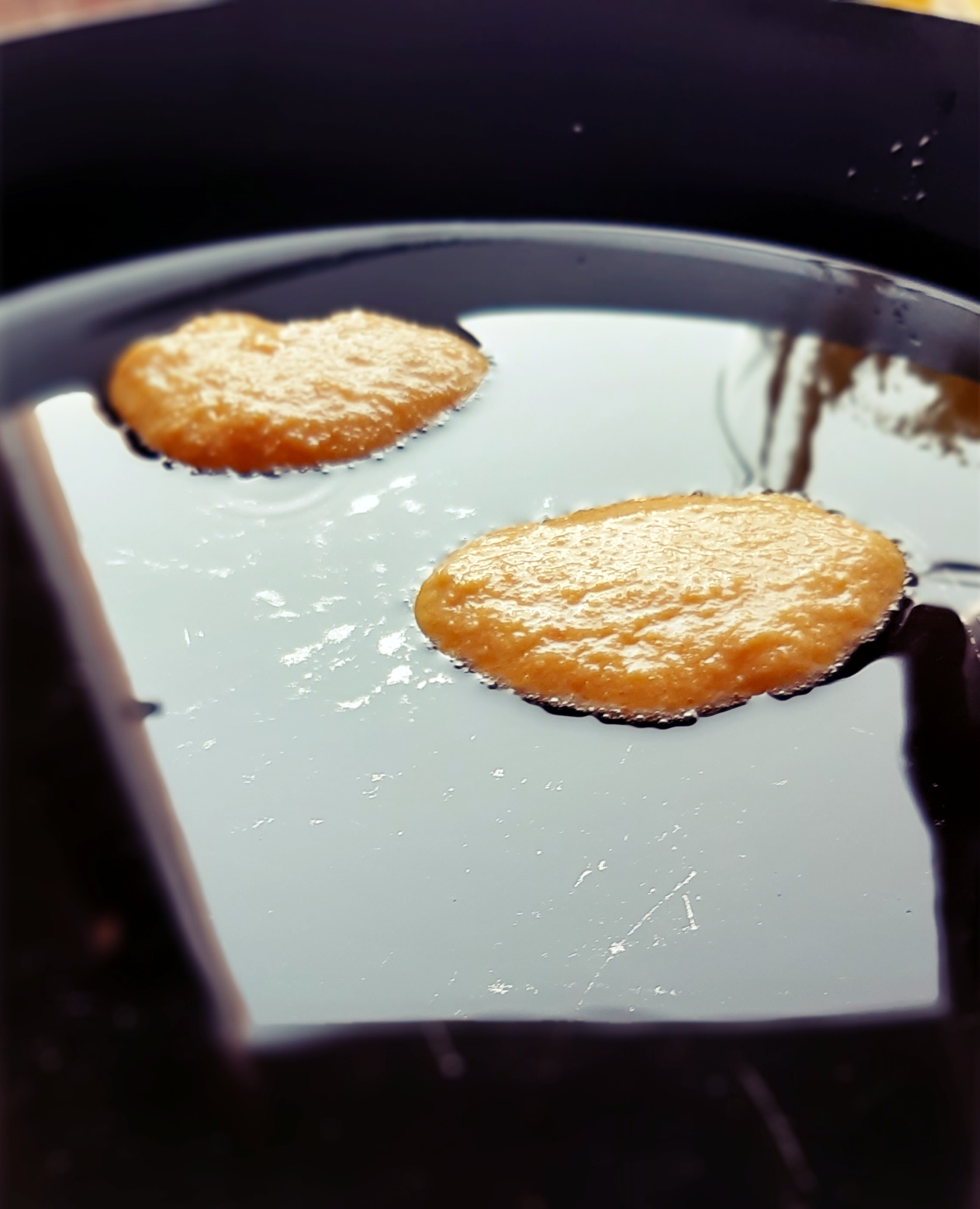Scaldiamo l’olio di semi e quando questo sarà pronto, adagiamo delle generose cucchiaiate di composto perché così tenderanno a gonfiarsi.