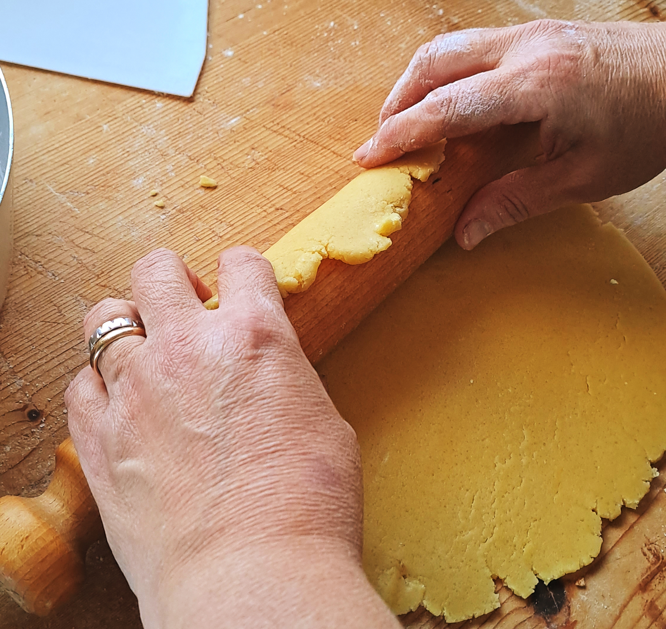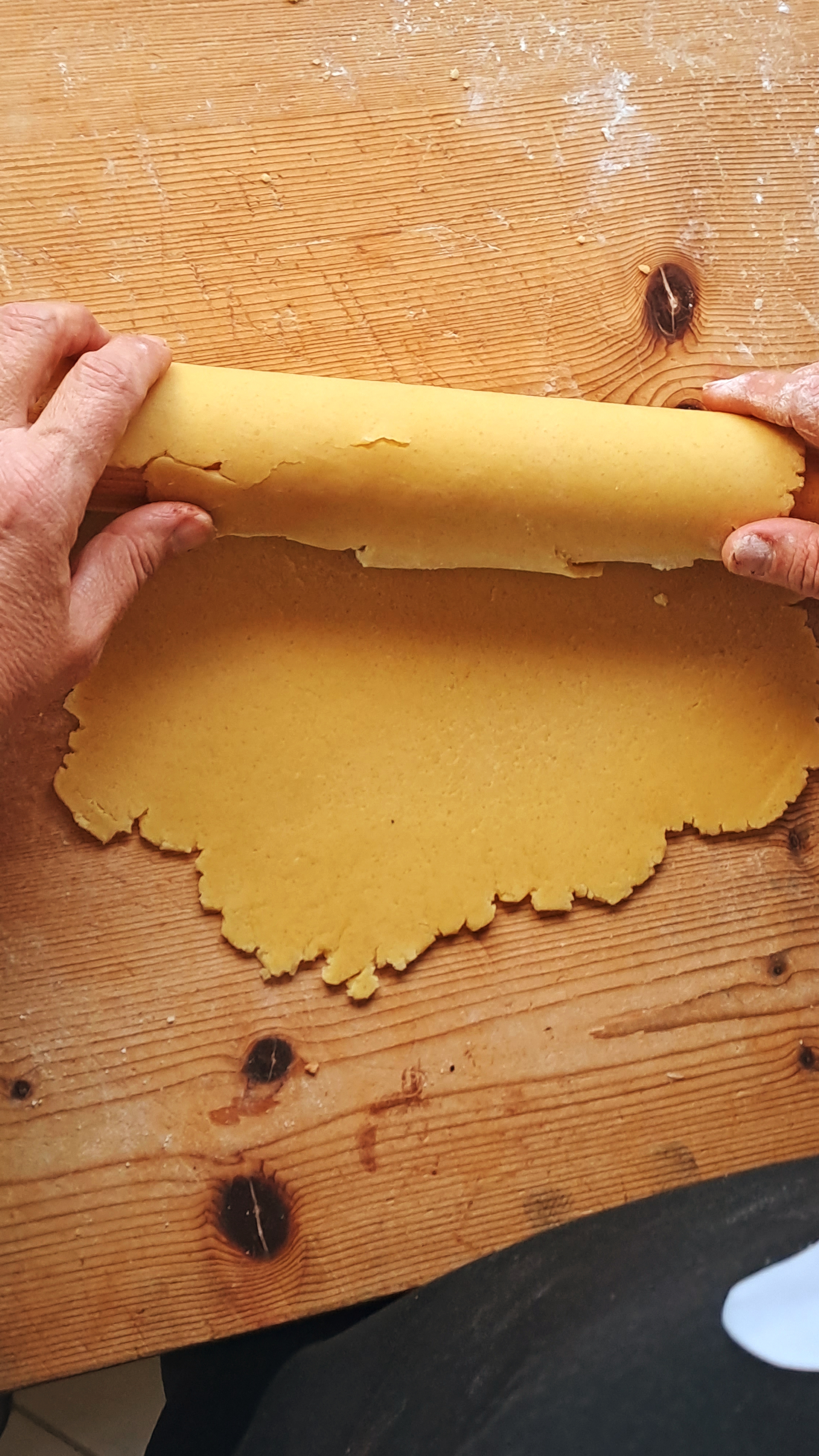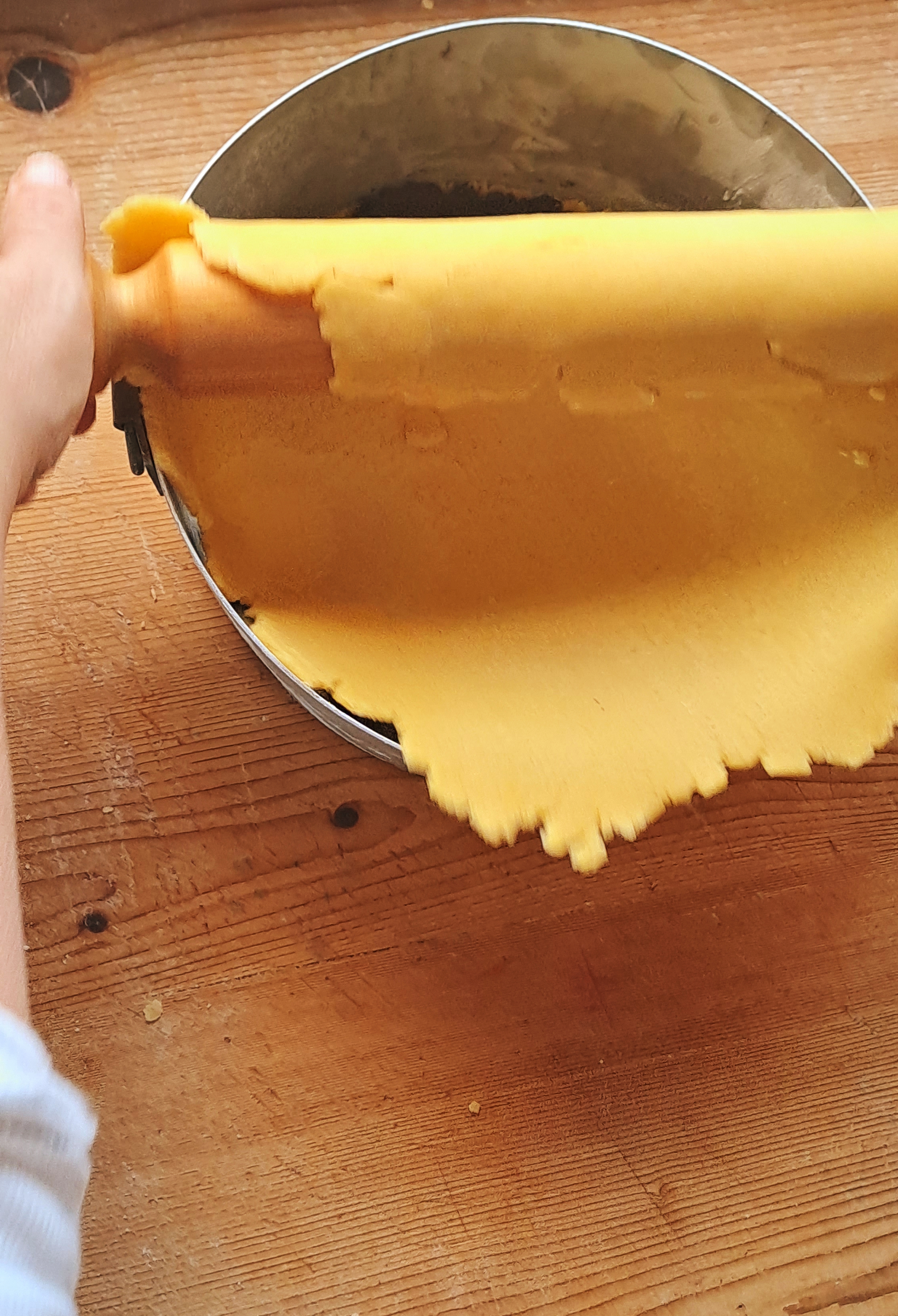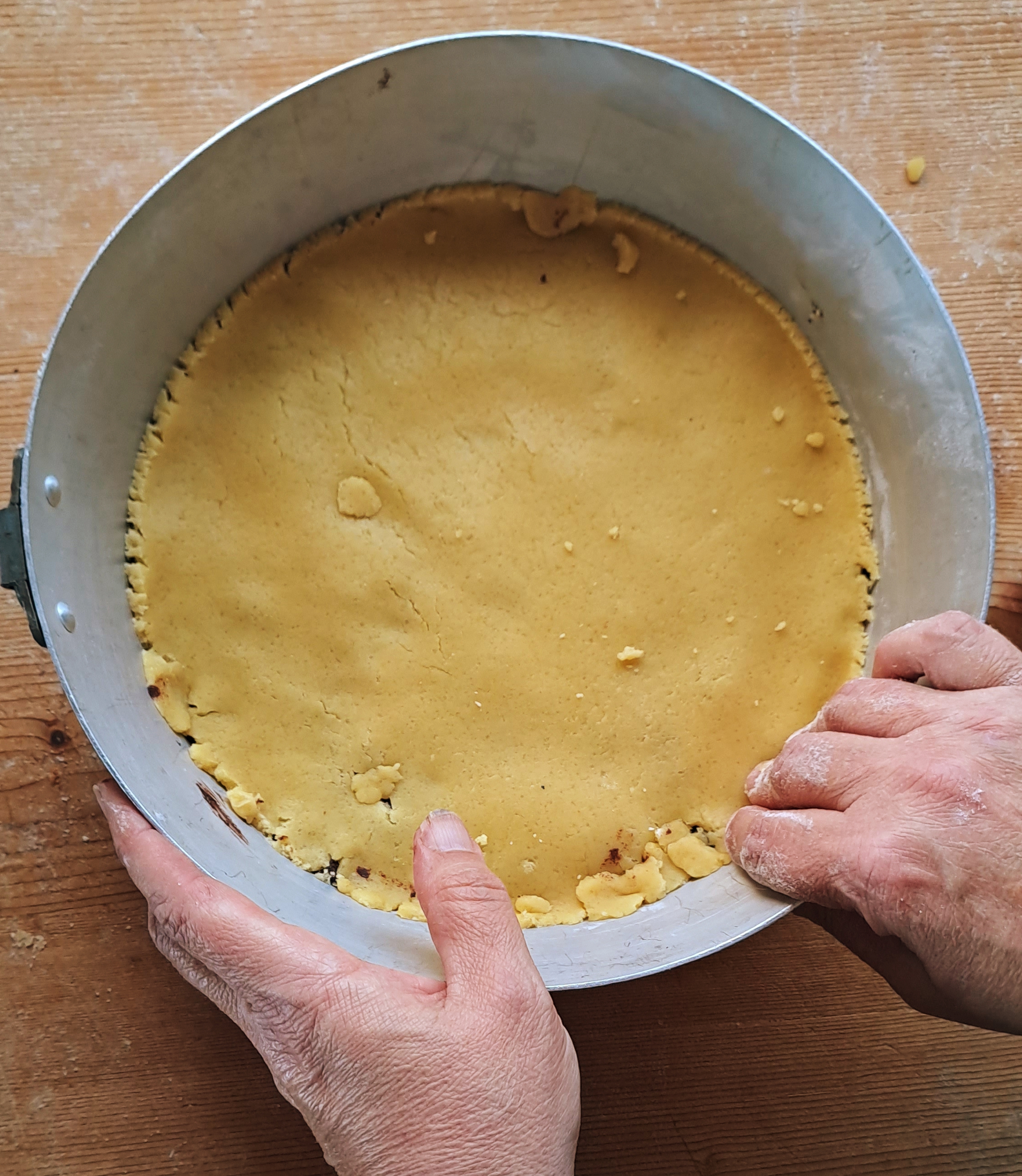 Non preoccupatevi se in questi passaggi la frolla si rompe e magari dovete fare alcune “toppe”, anche le nostre nonne facevano così… tanto poi si copre tutto con lo strato finale, che andiamo a preparare adesso.