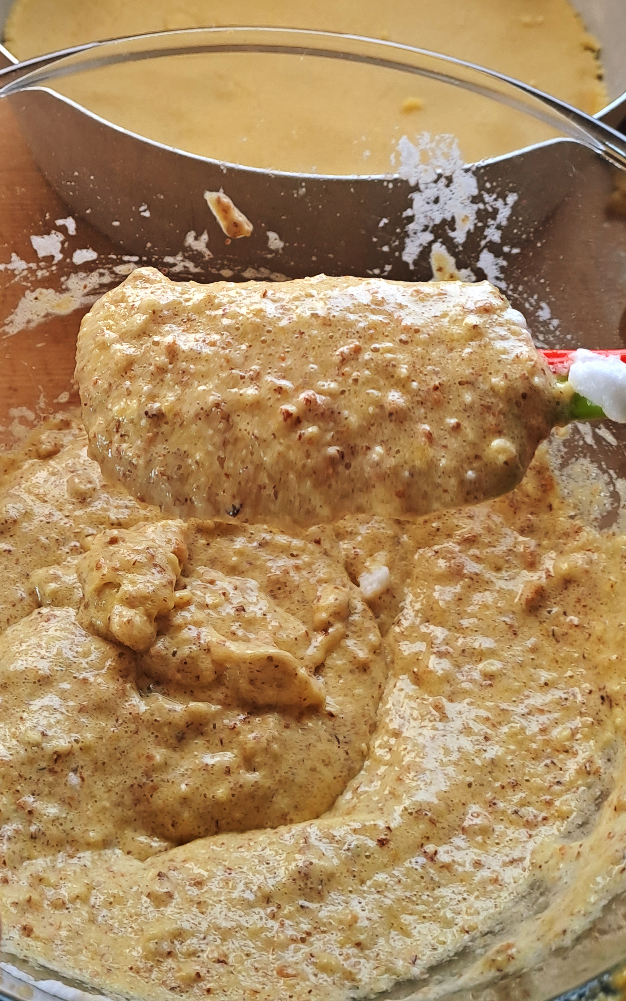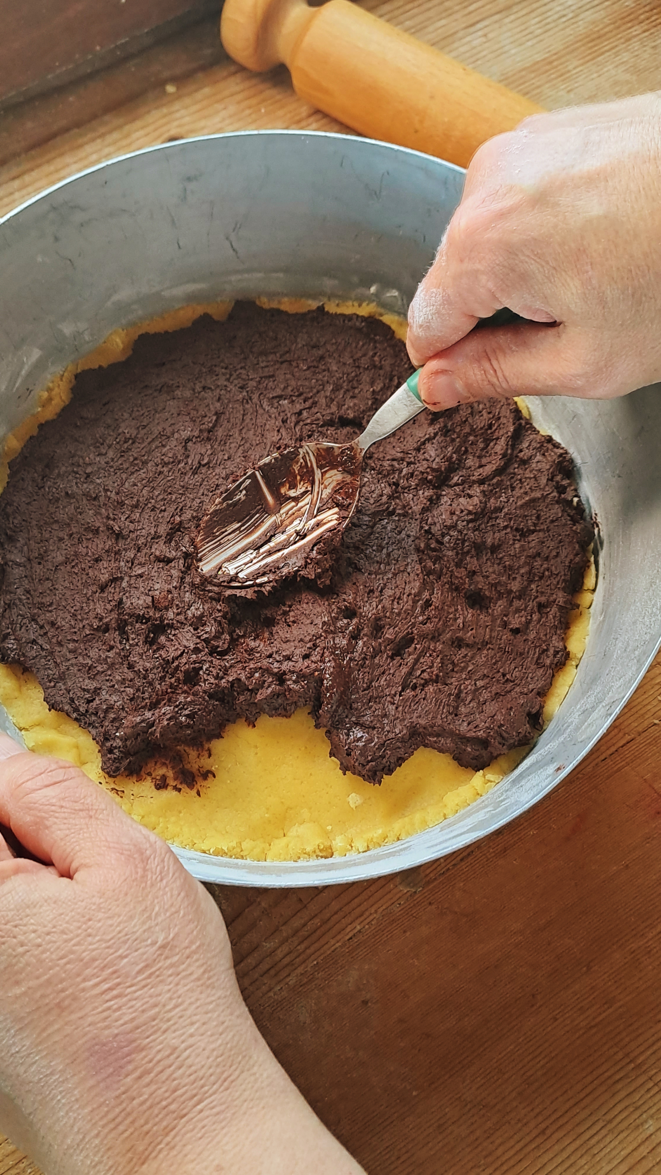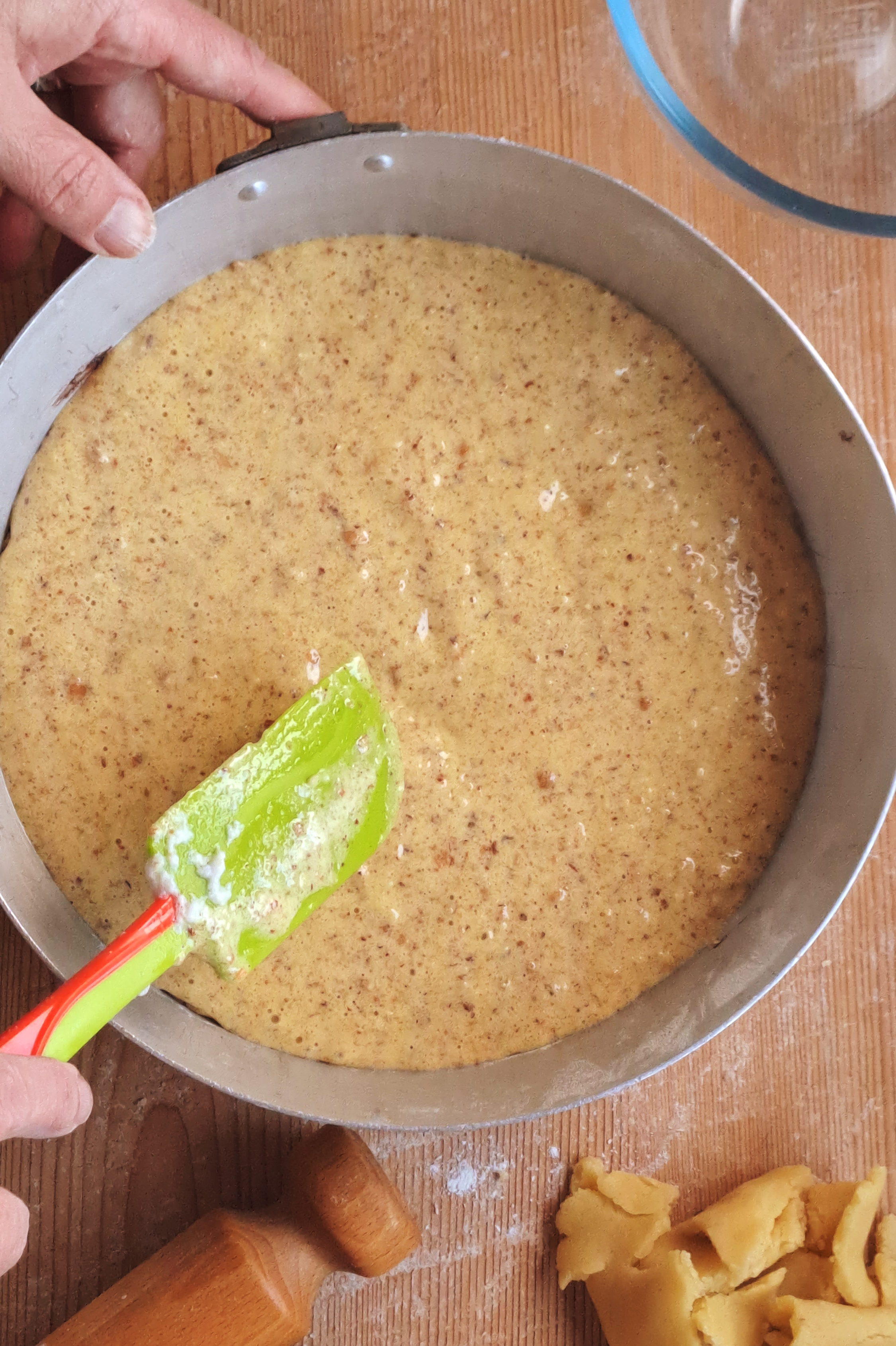 Facciamo colare l’impasto sul secondo strato di frolla.