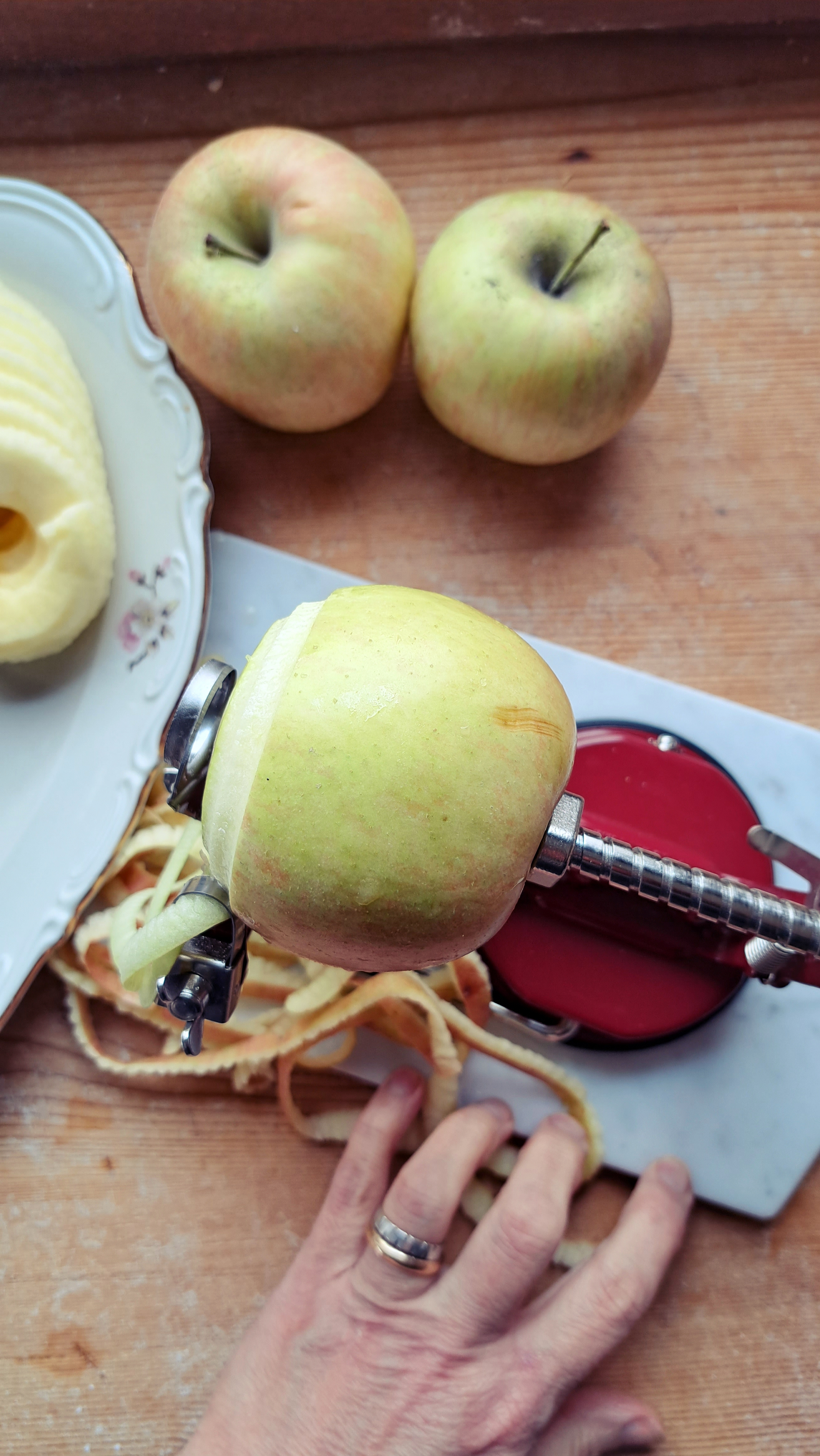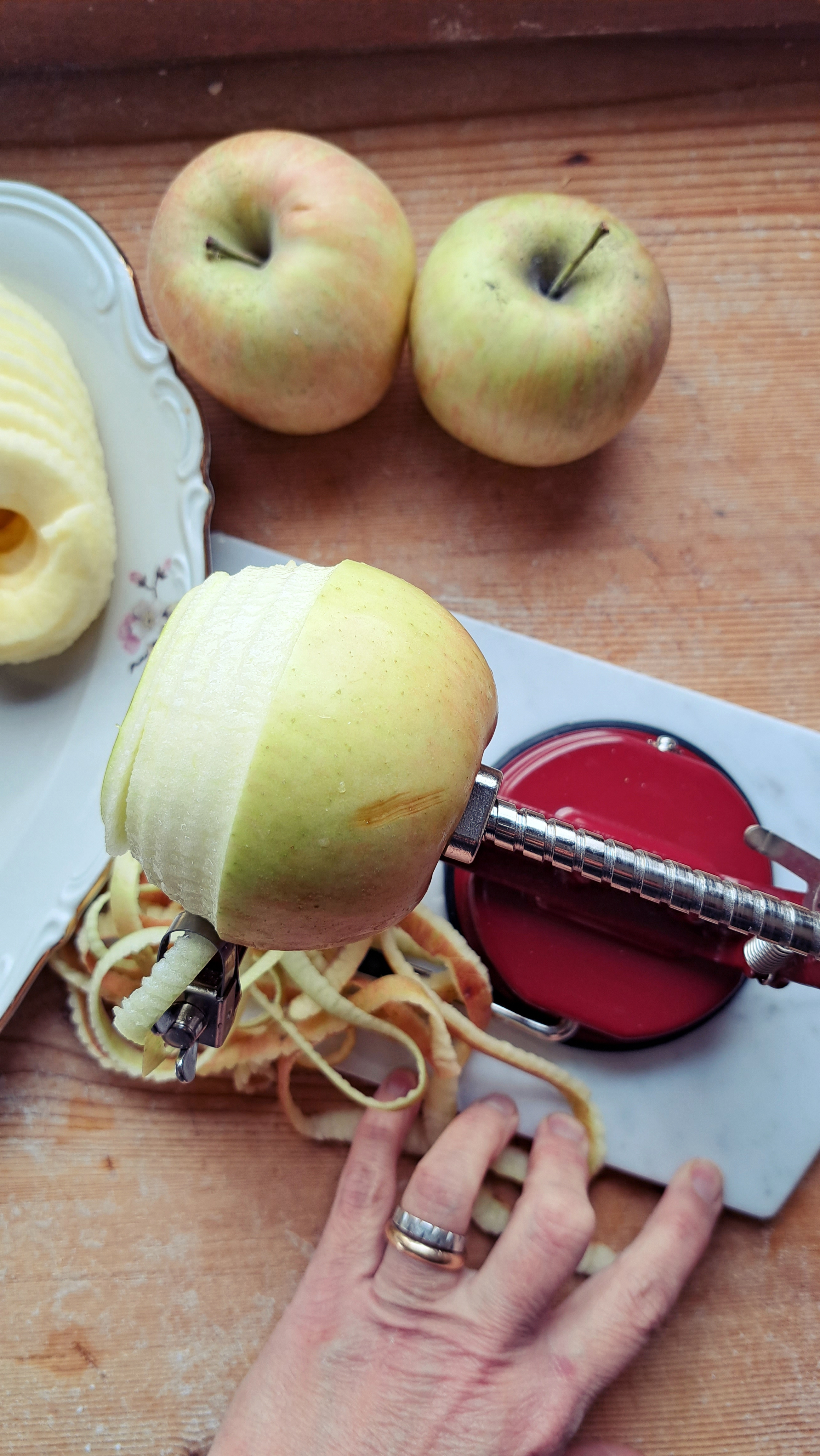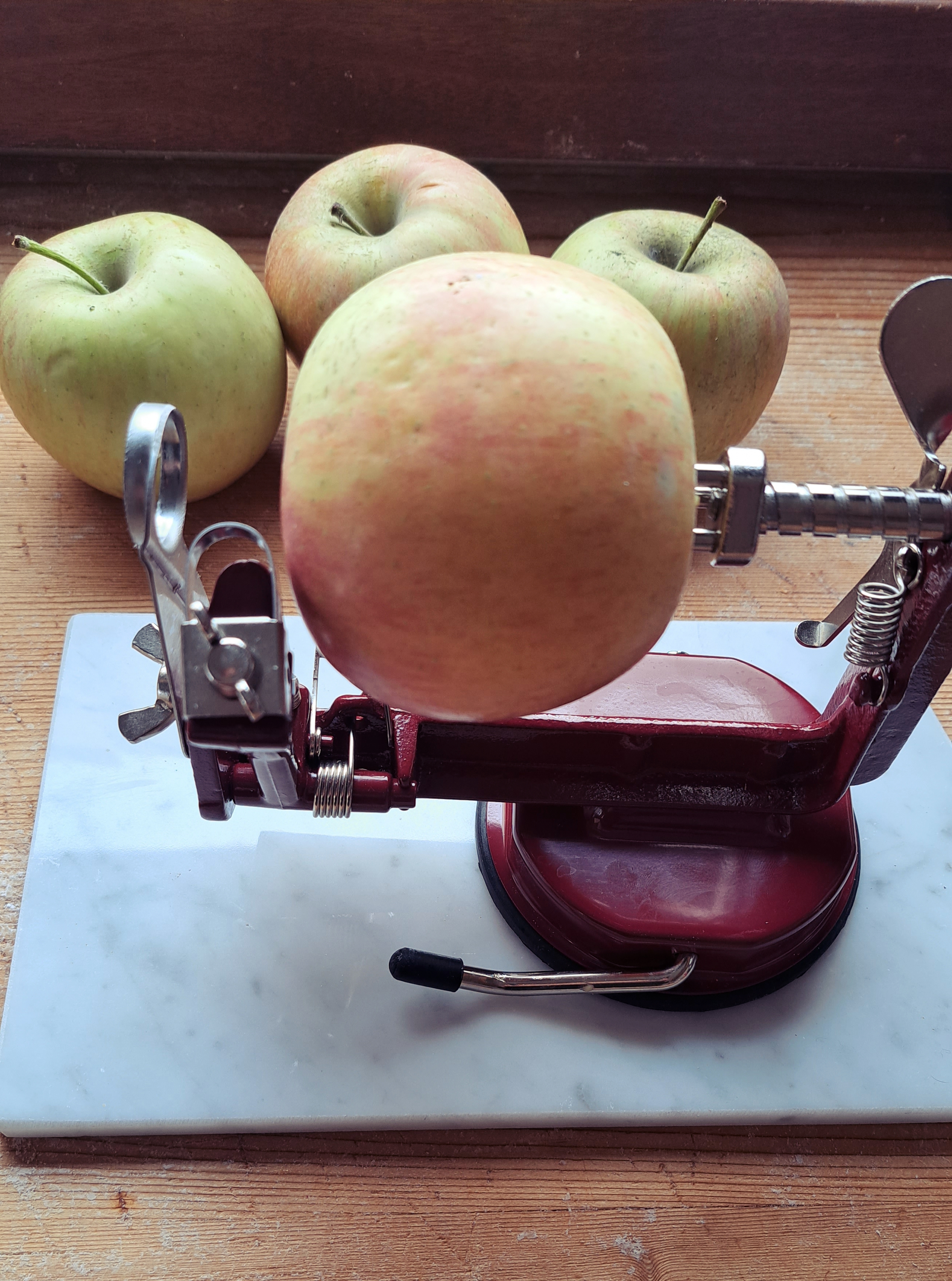 Se nella vostra attrezzeria non c’è nulla di simile, optate per il caro vecchio buon metodo a mano… e lì potrete anche decidere lo spessore della mela. che effettivamente nel nostro caso, forse, è leggermente sottile…. ma davanti a cotanto attrezzo ci siamo adeguati.