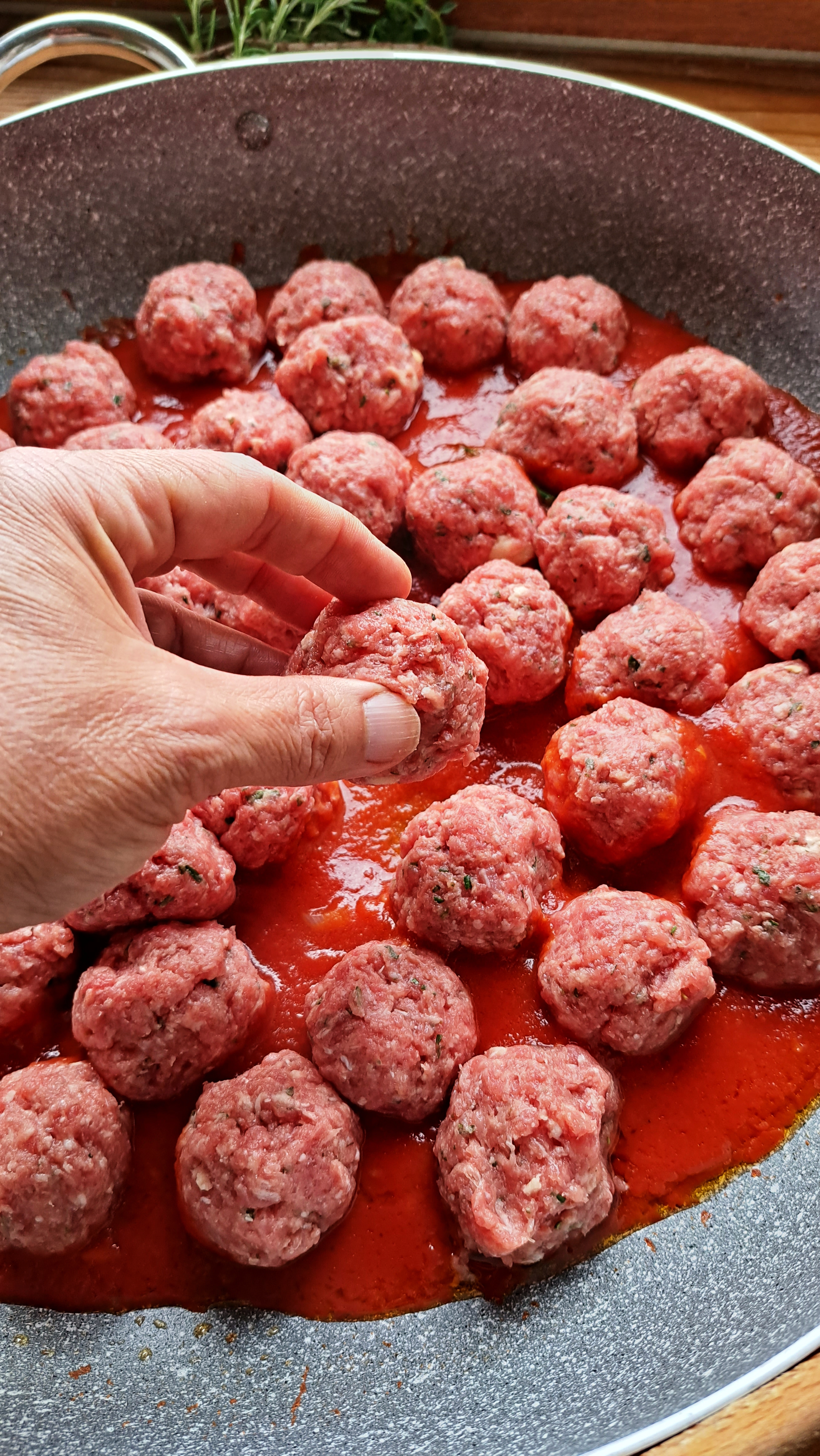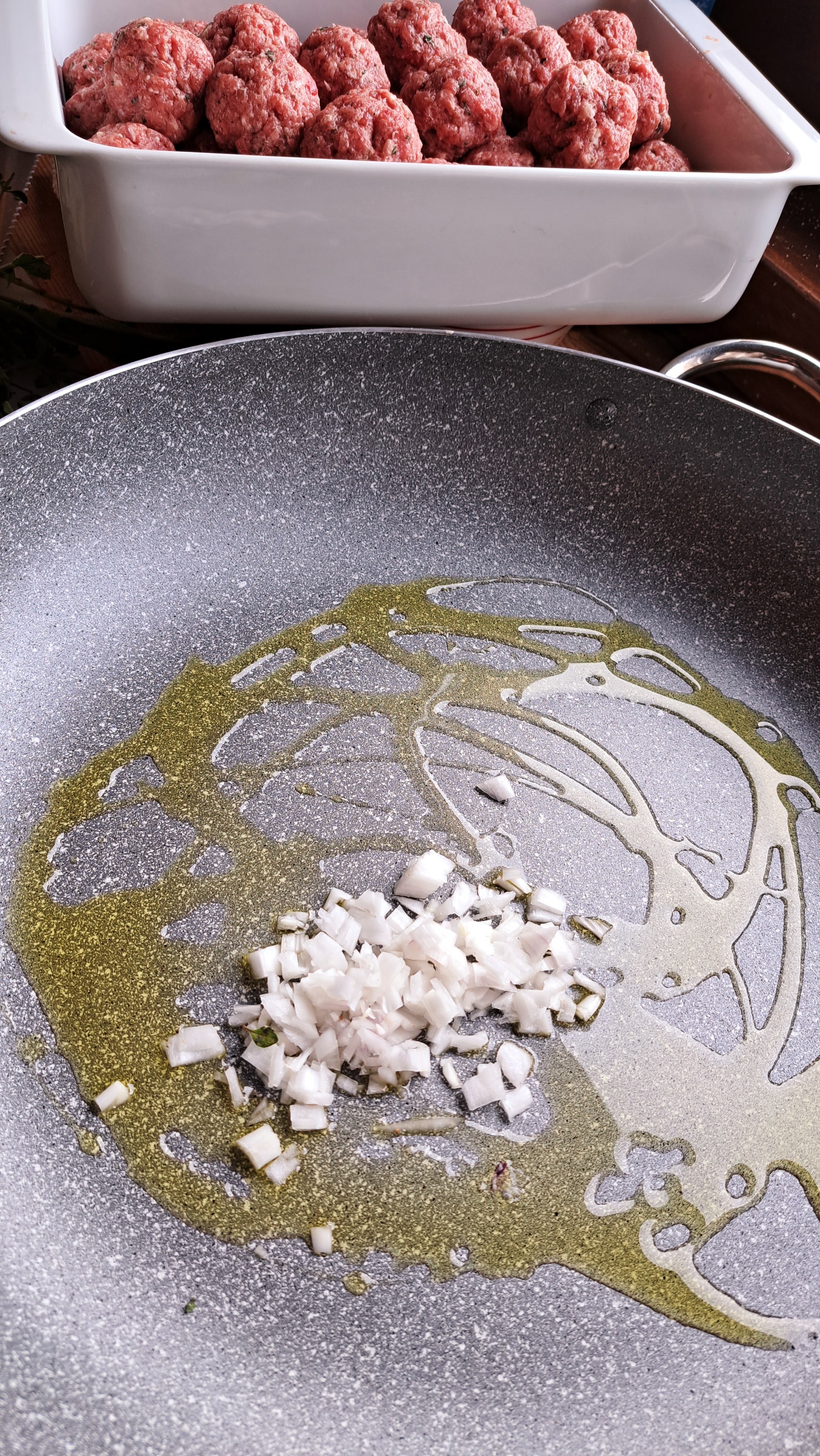 Cominciamo a confezionare le polpette a seconda della dimensione che avete scelto e le posizioniamo in una pirofila.