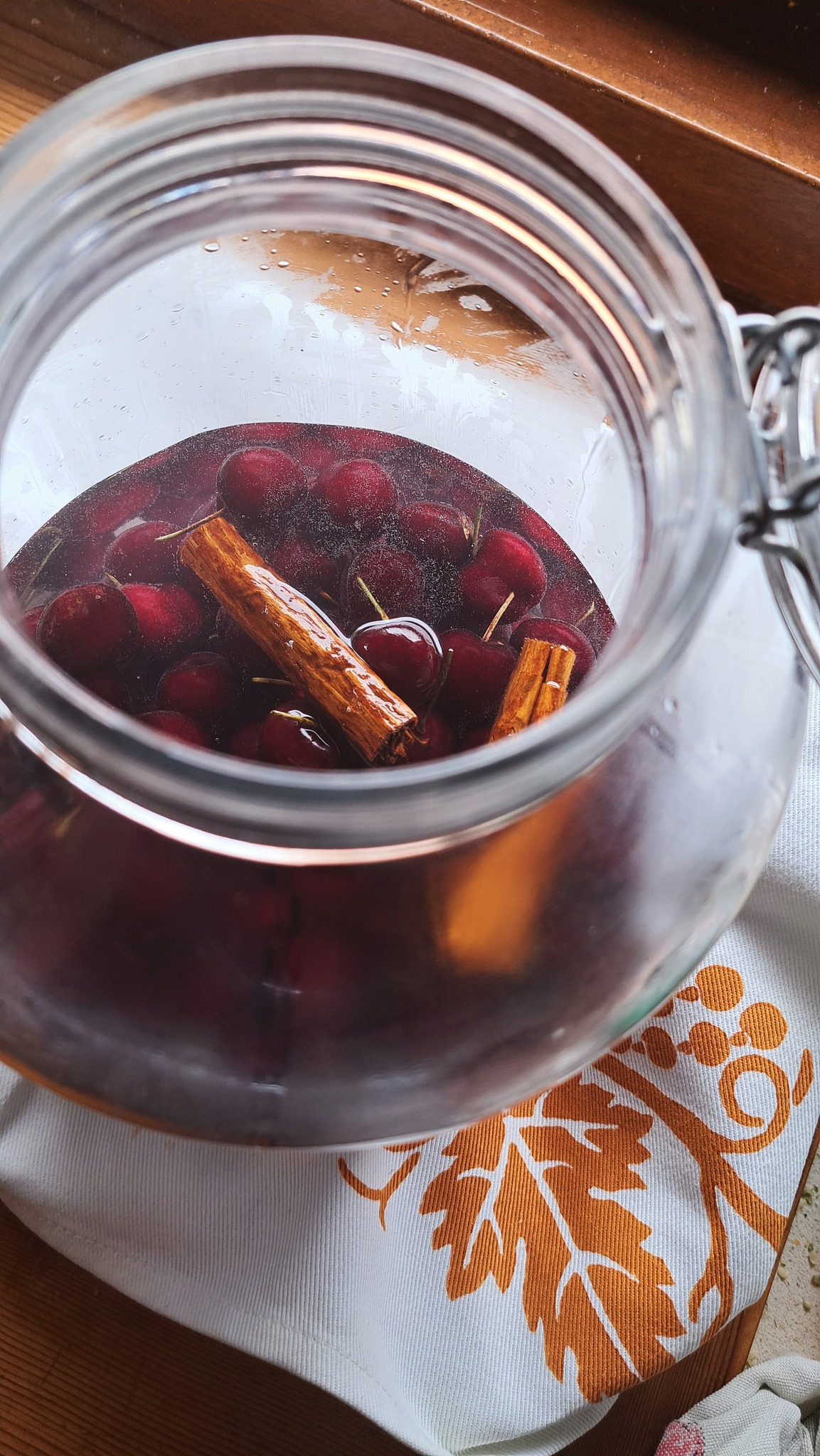 Noi abbiamo deciso di servire questo gelato (che in realtà è un semifreddo) con le visciole sotto spirito che avevamo preparato qualche mesetto fa; vi lasciamo il link anche per quelle: