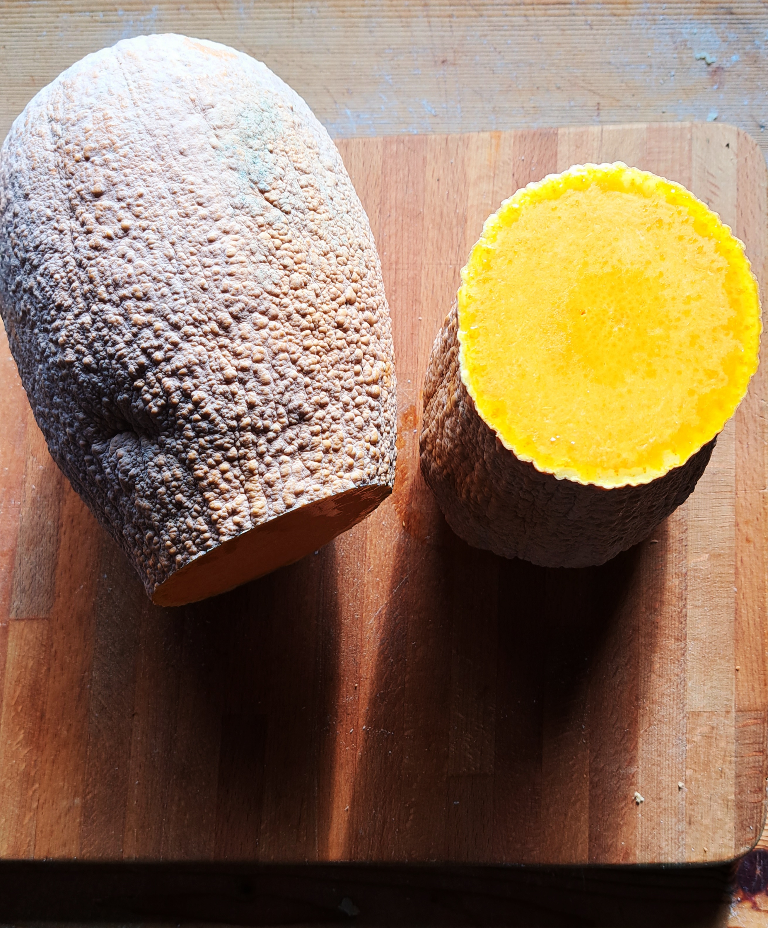Solitamente usiamo la varietà Delica ma in questo caso abbiamo optato per una splendida zucca violina del nostro amico contadino Michele di Rusticorto.