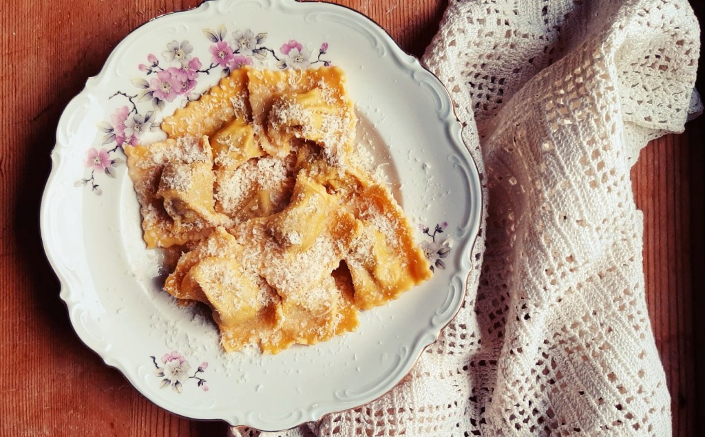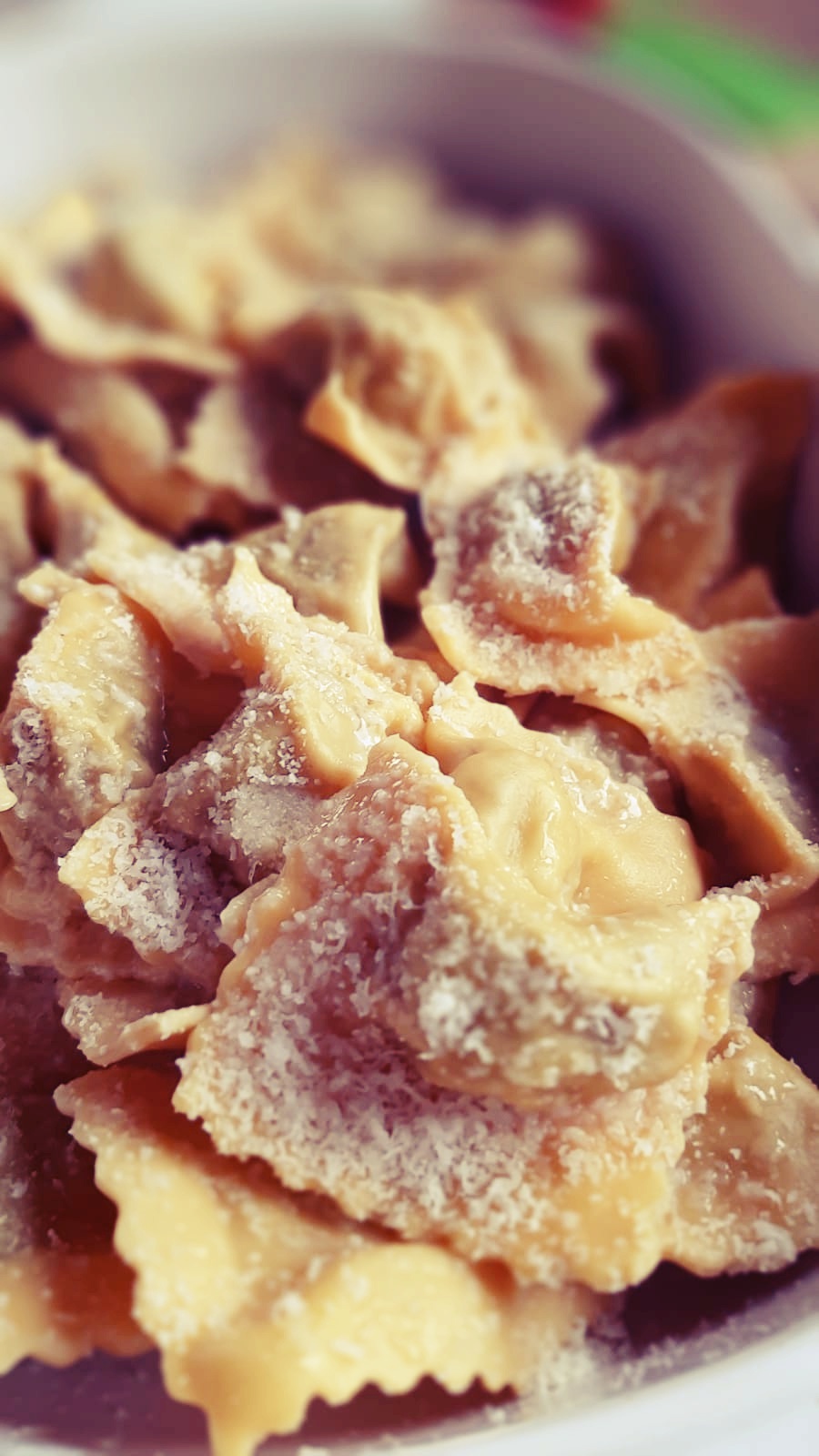 - Cook the tortelli in plenty of salted boiling water. Dress them with melted butter and a generous amount of Parmigiano Reggiano.