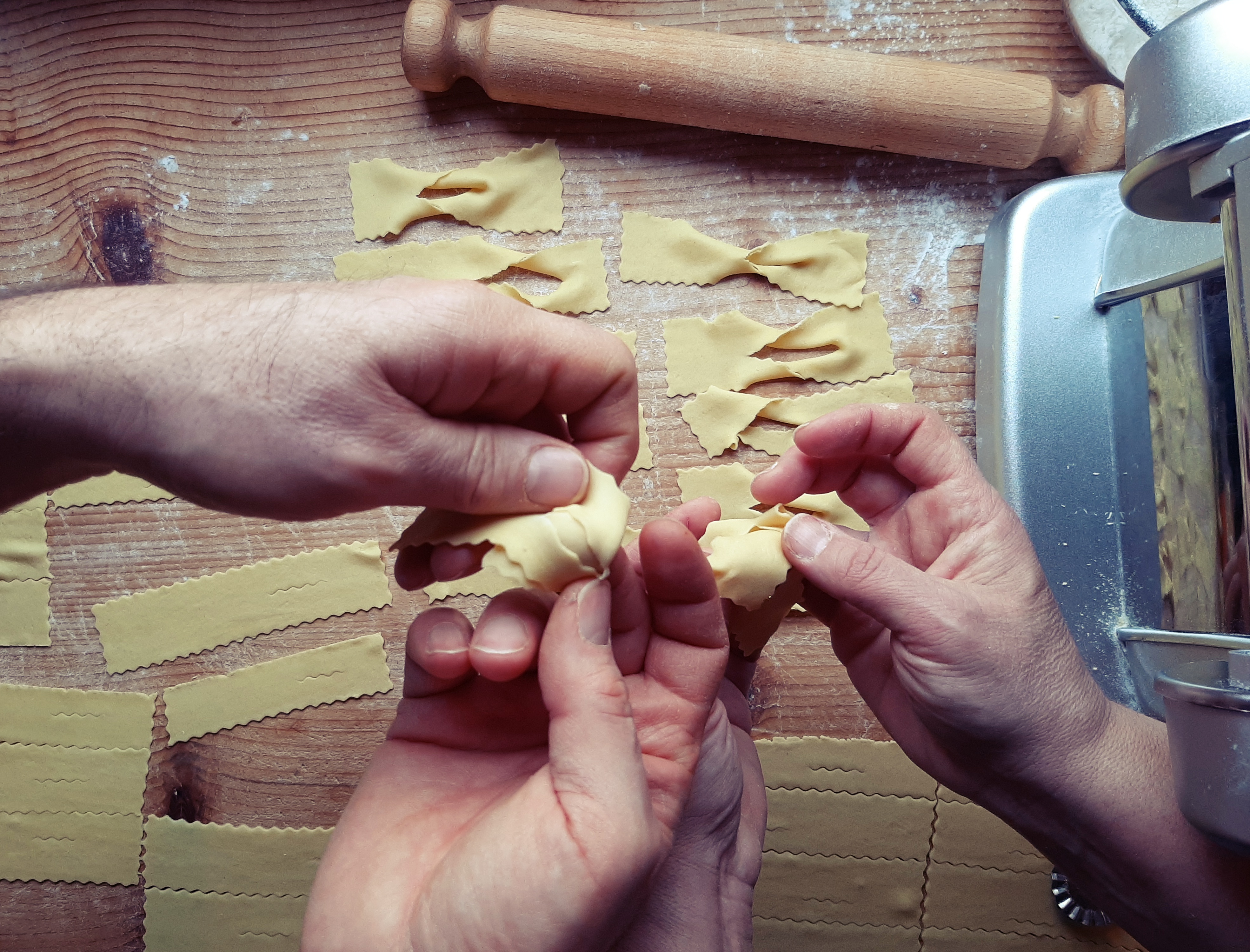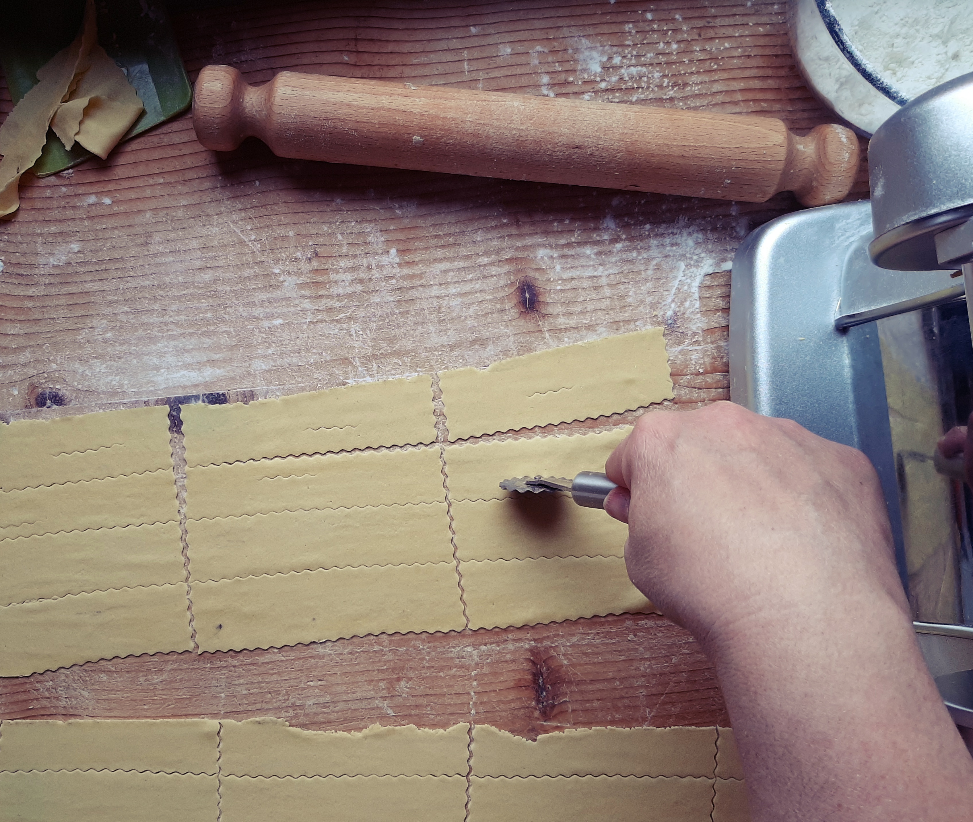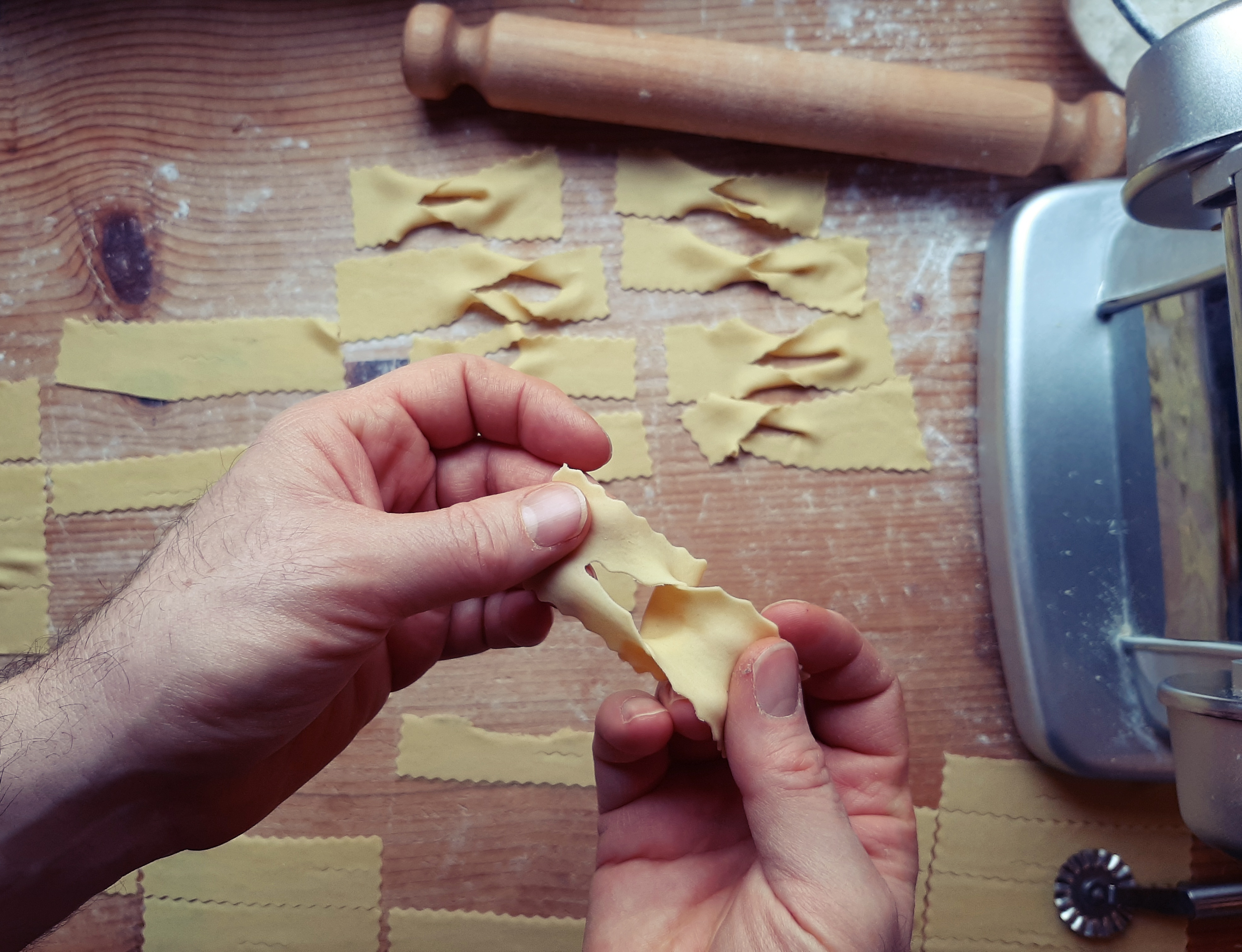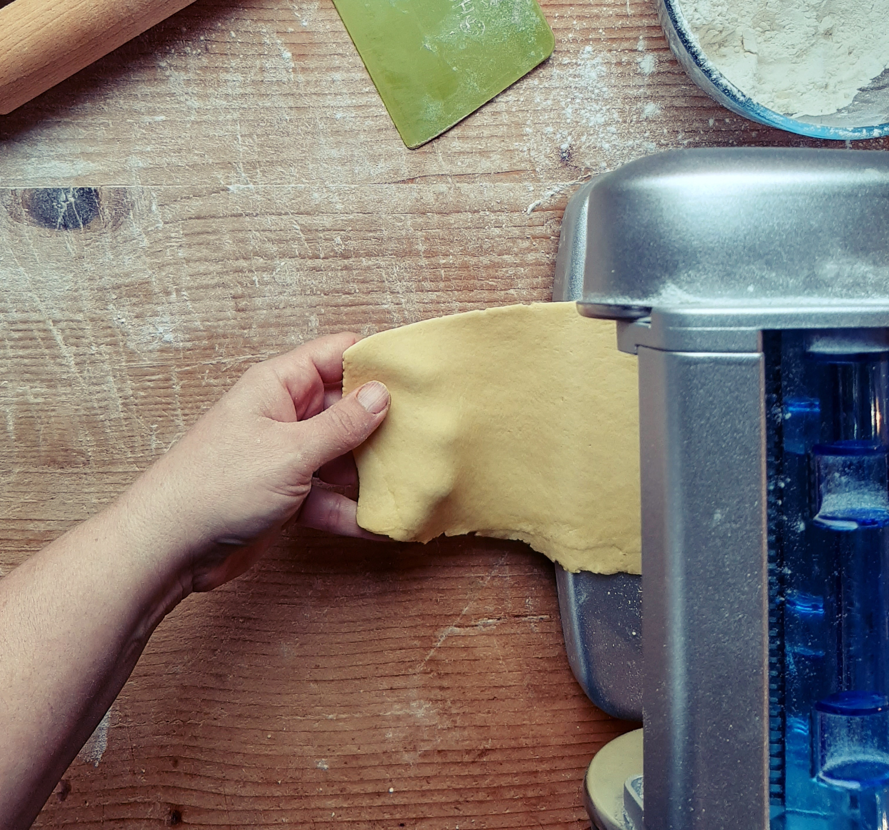 - To roll out the dough, using a pasta machine can be very helpful—whether an old-fashioned manual one or a more modern version like mine. If you don’t have a pasta machine, you can still roll it out by hand with a rolling pin. In that case, make the dough slightly softer (adding just a little more milk) and use some good old-fashioned elbow grease! The chiacchiere will turn out a bit thicker but just as delicious.