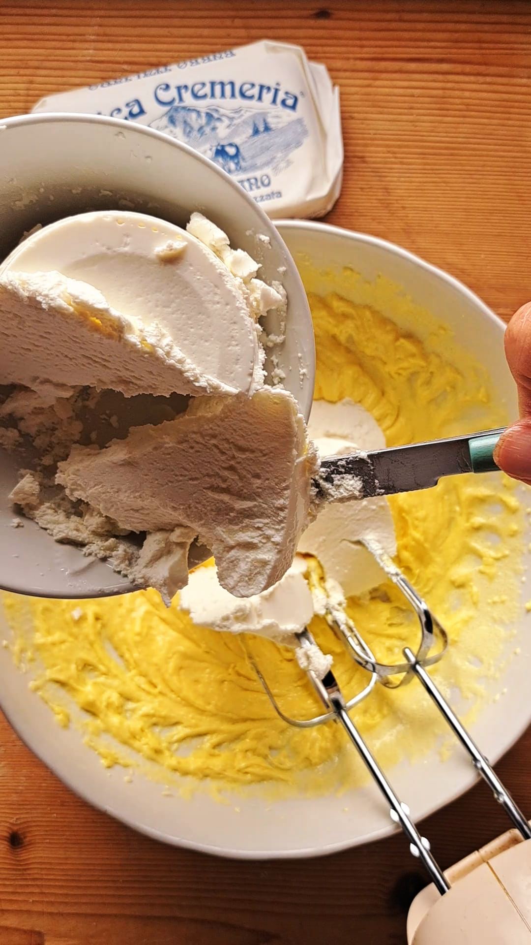 Alla fine incorporare sempre montando, la ricotta; se questa risultasse molto acquosa, meglio scolare il siero.